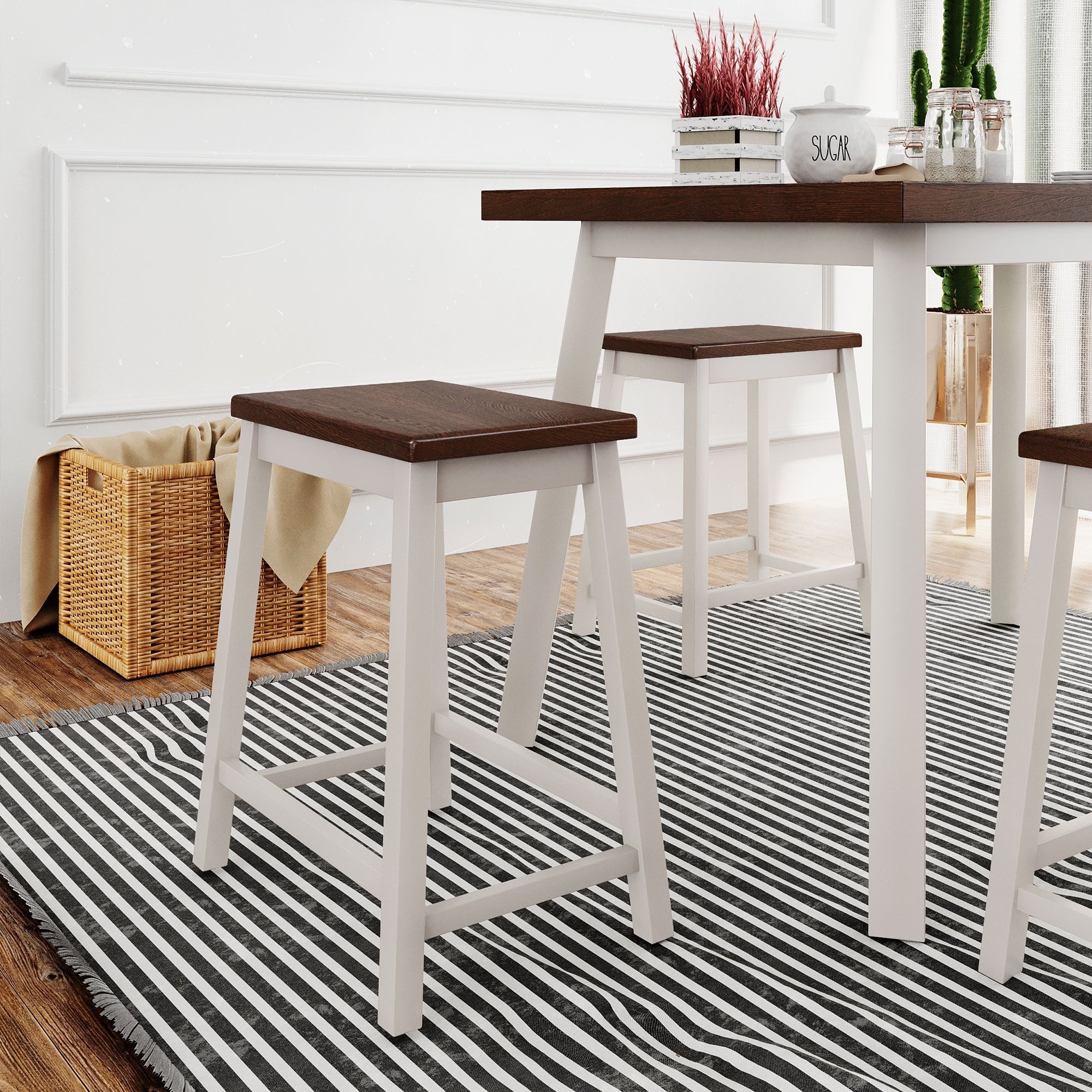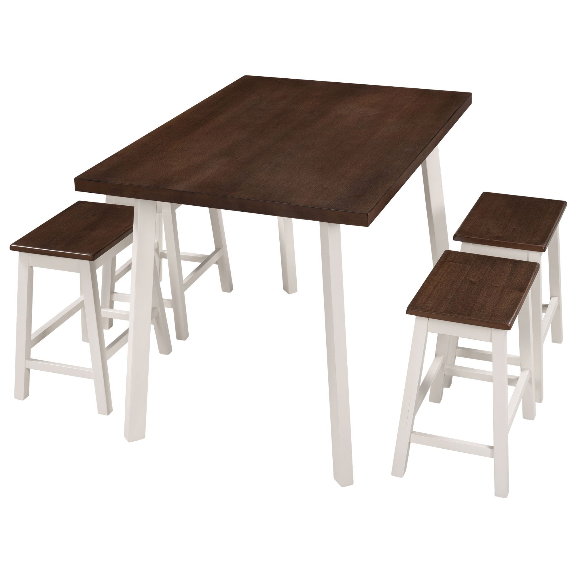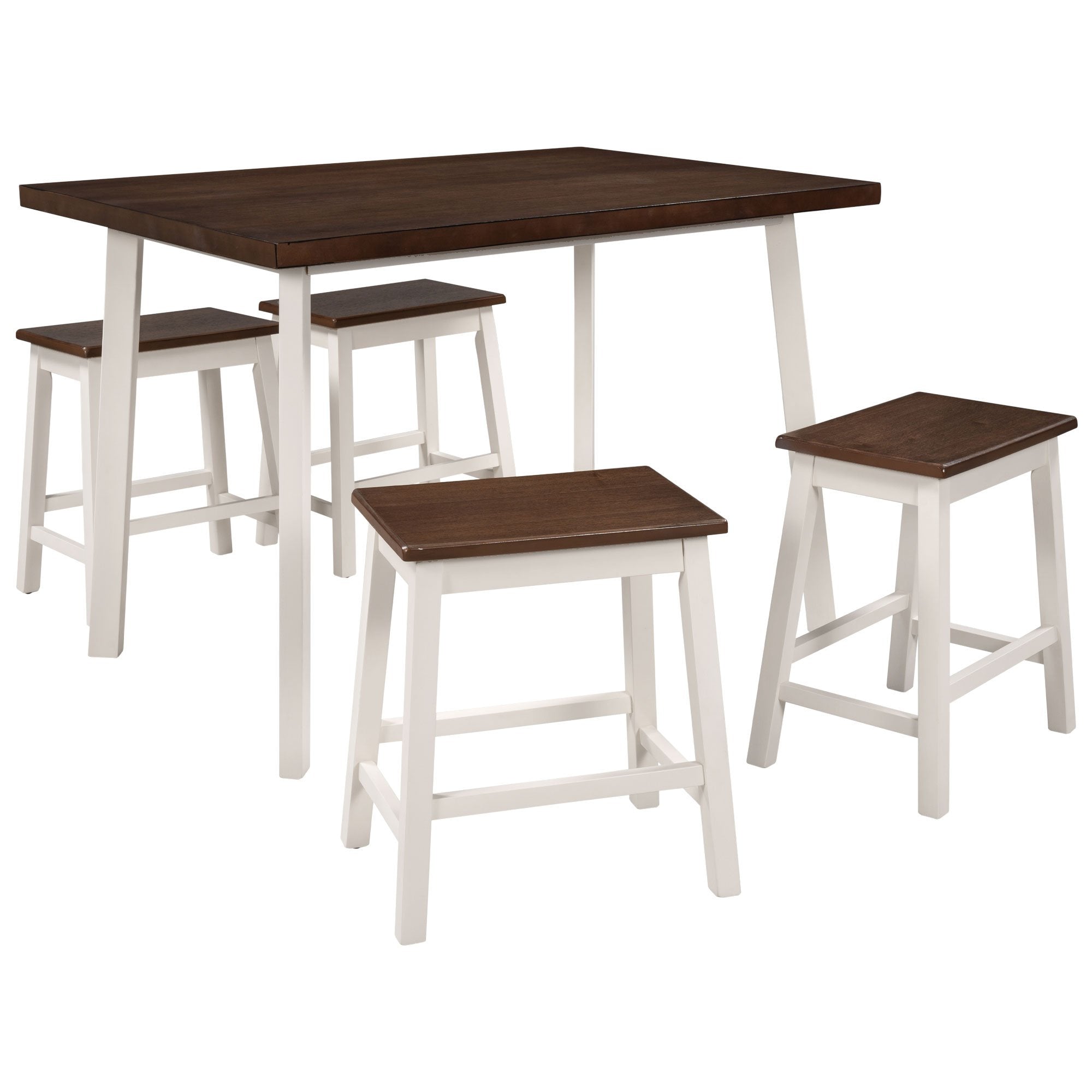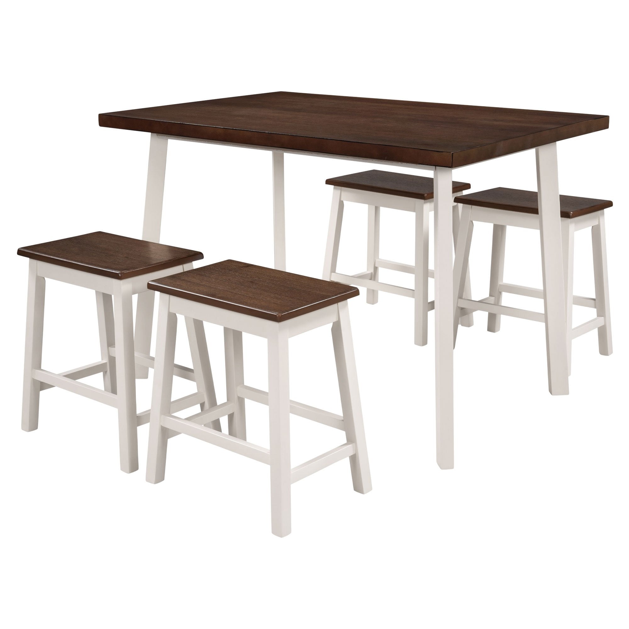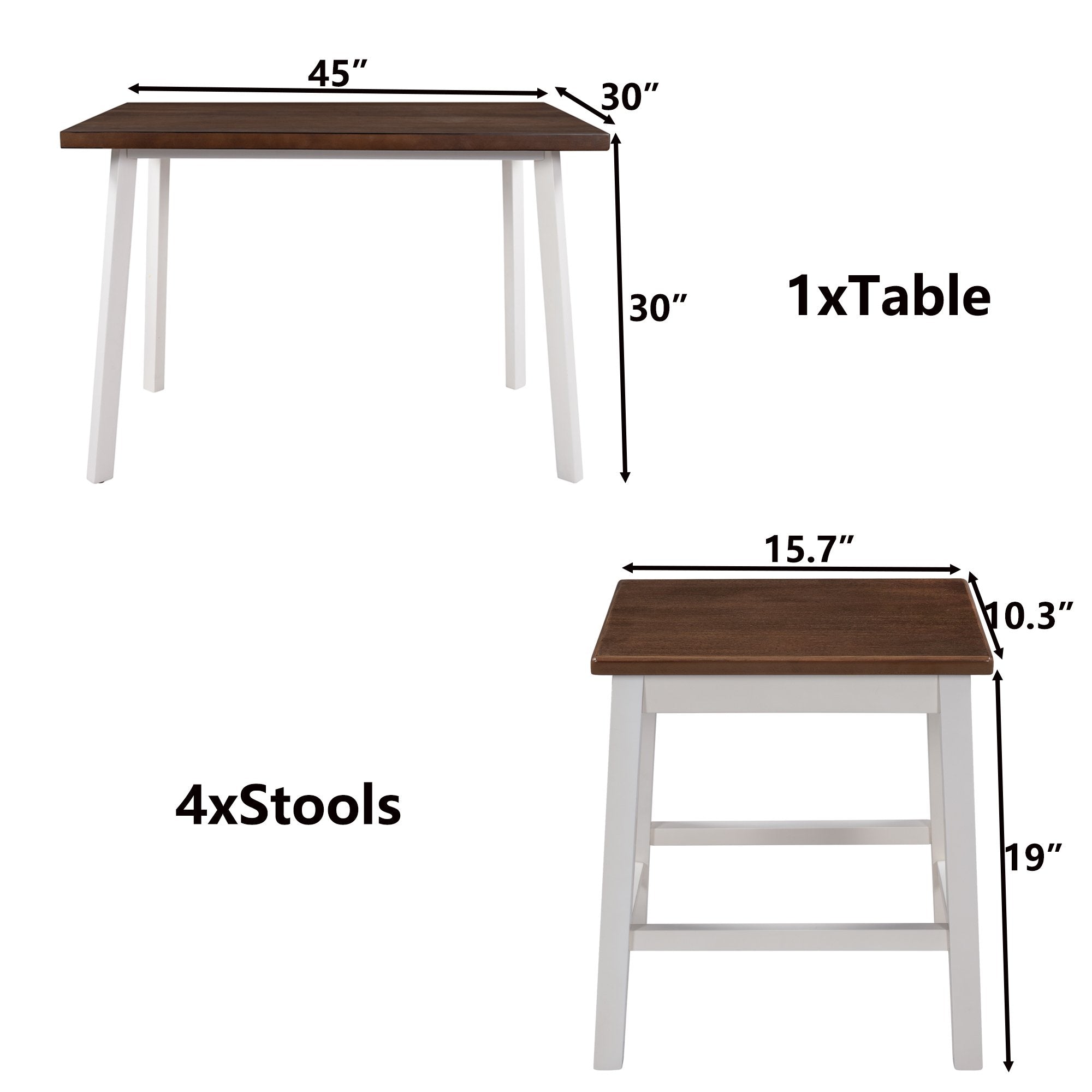 5-Piece Rustic Wood Kitchen Dining Table Set with 4 Stools for Small Places, Cherry+White