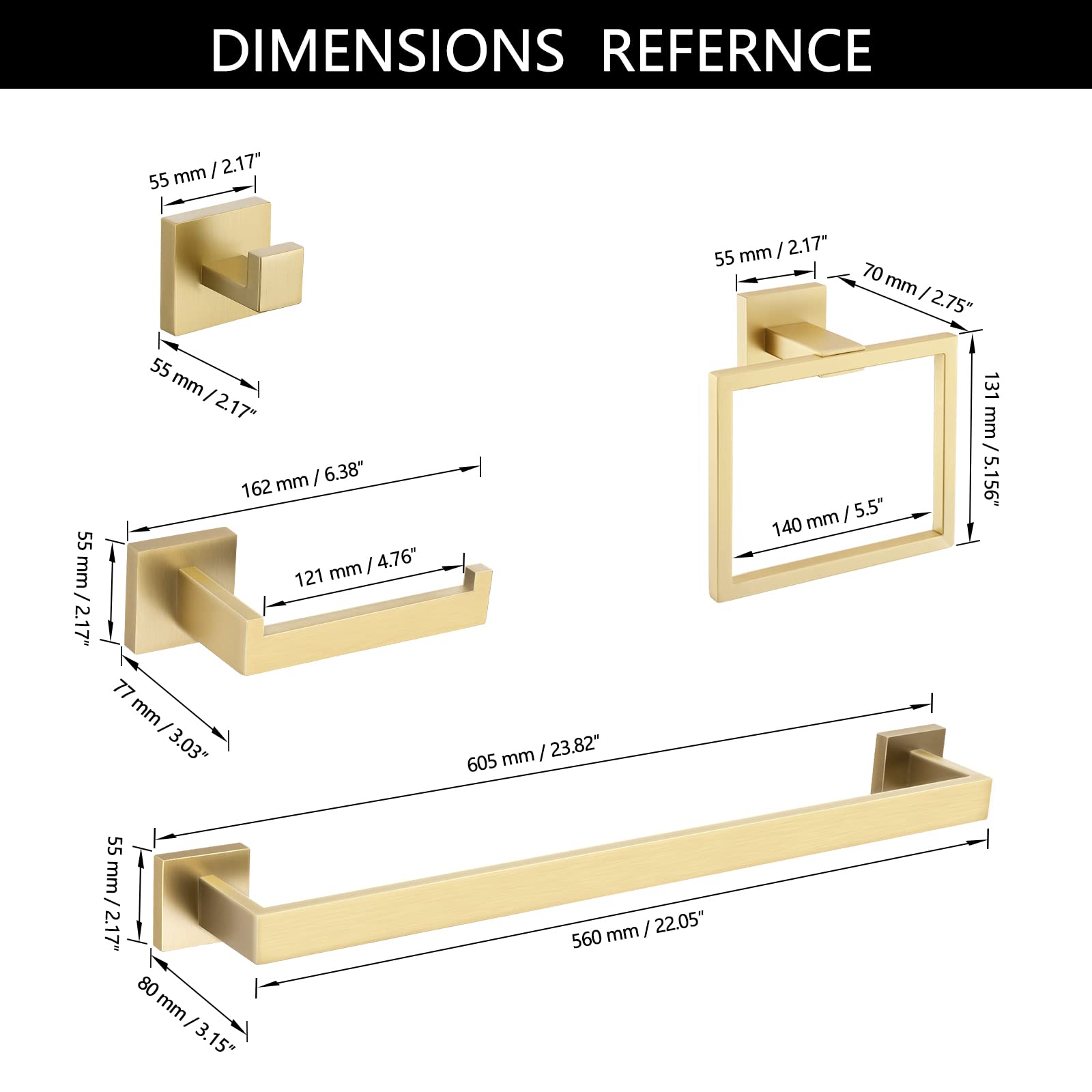 5 Pieces Bathroom Hardware Accessories Set Towel Bar Set Wall Mounted,Stainless Steel