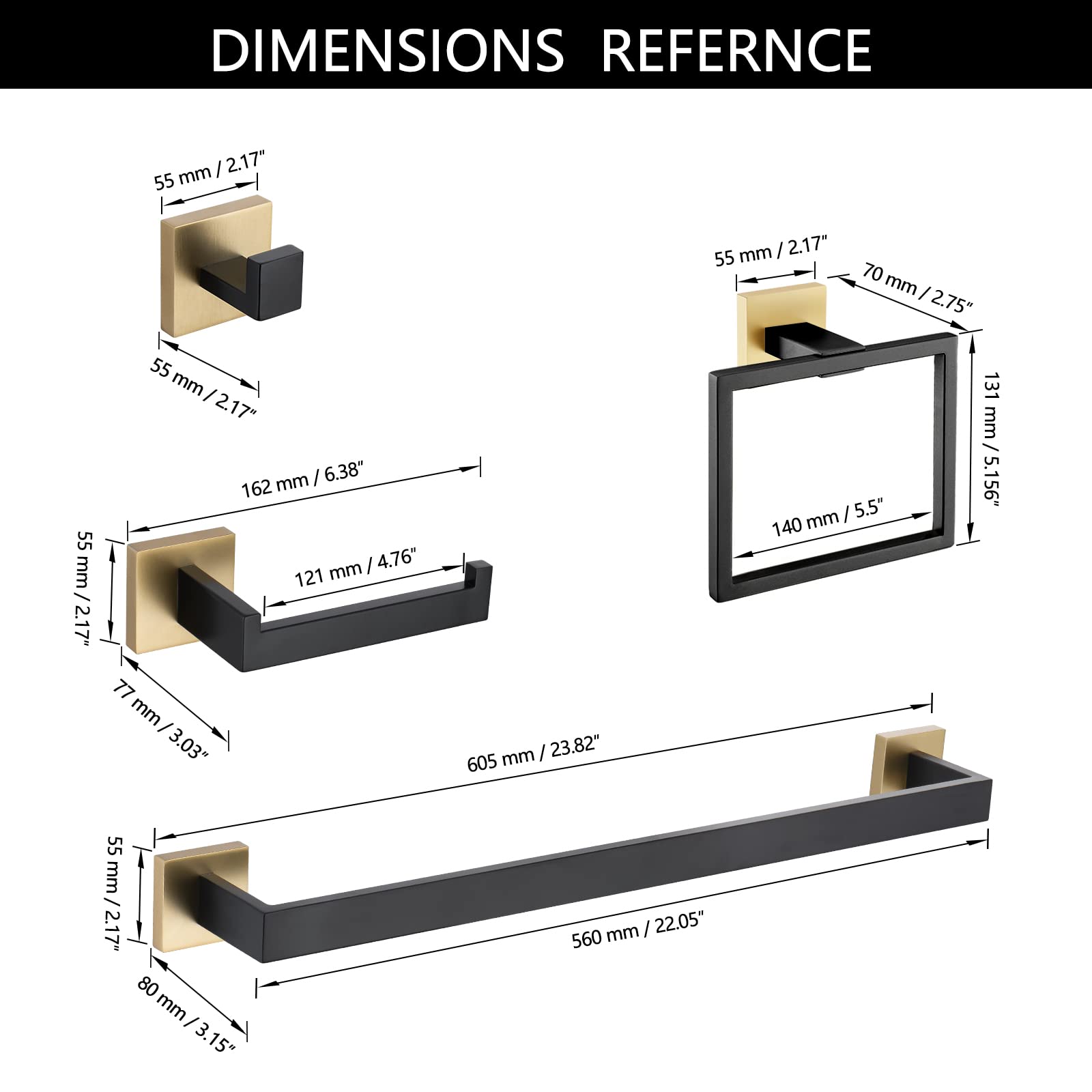 Hardware Included : Toilet paper holder;Towel bar;Towel ring;Towel/Robe hook