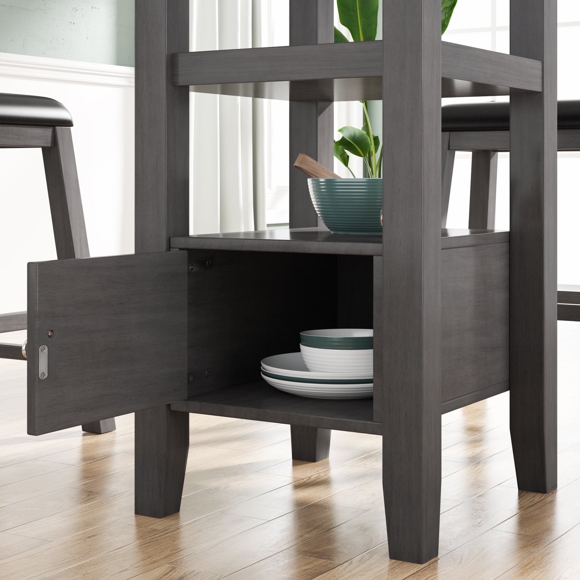 Classic Dining Set---With a classic wooden framework, this dining set features eye-catching contrast available in either gray or brown finishes. The farmhouse design combined with the natural wood grain on the table and stool legs creates a timeless look that will add a charming atmosphere to any dining space.