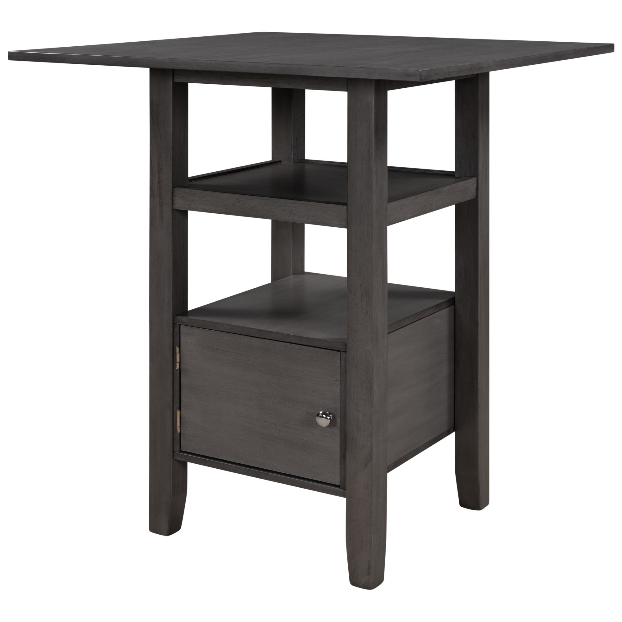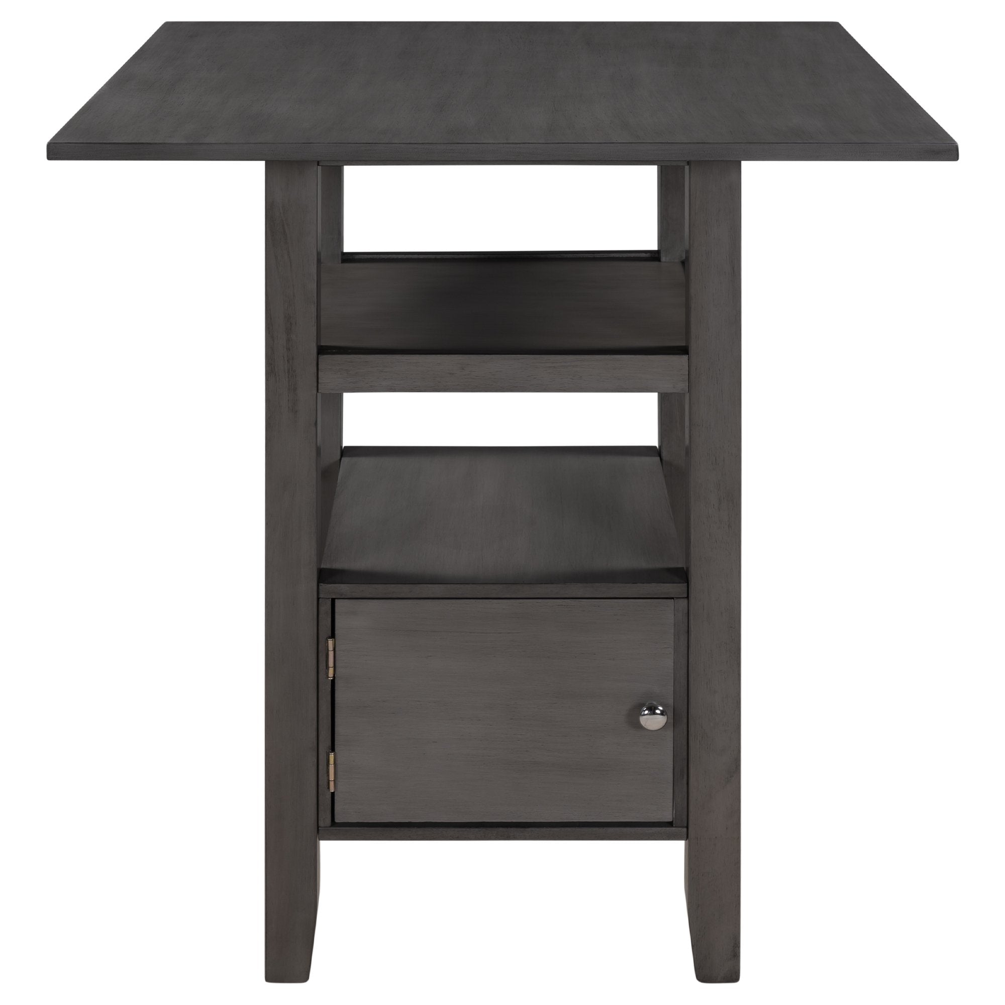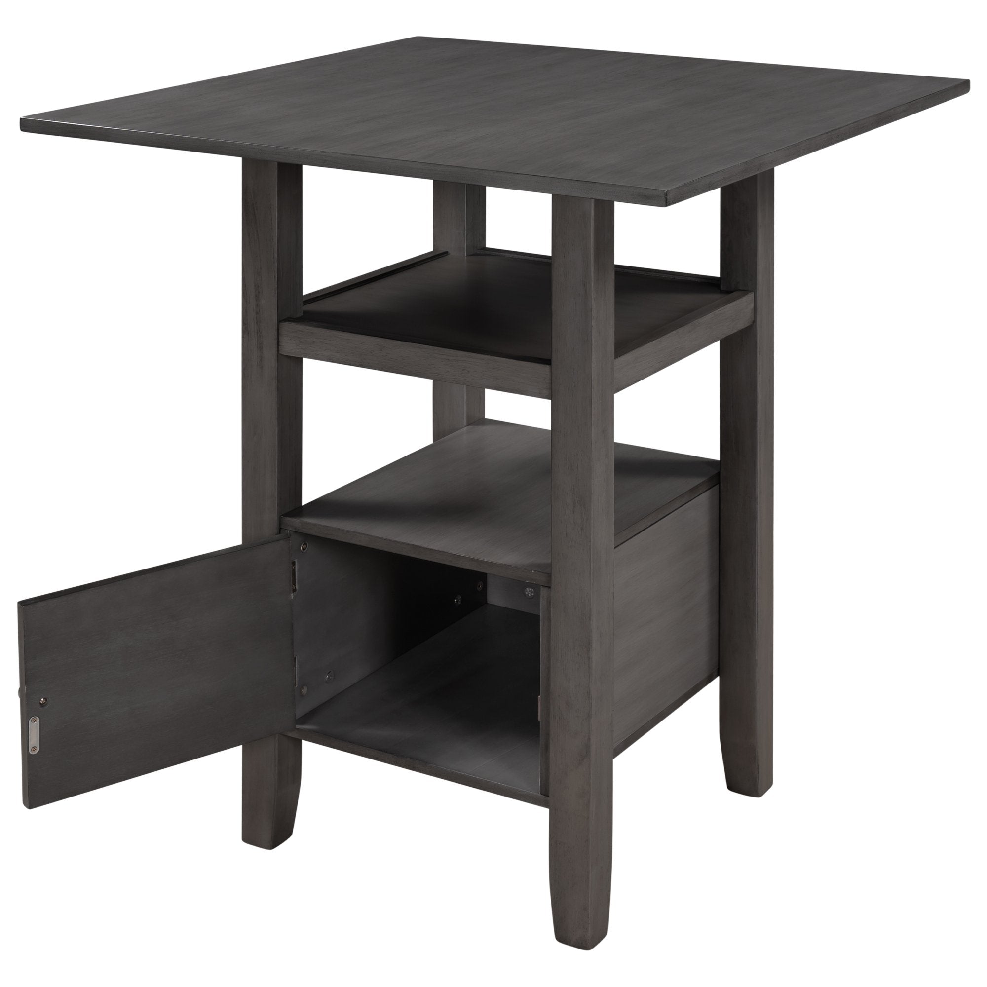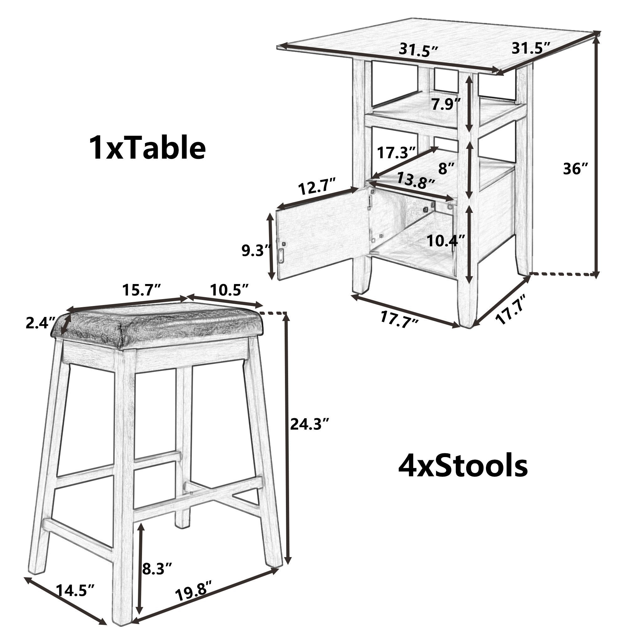 5 Pieces Counter Height Wood Kitchen Dining Table Set with 4 Upholstered Stools with Storage Cupboard and Shelf for Small Places