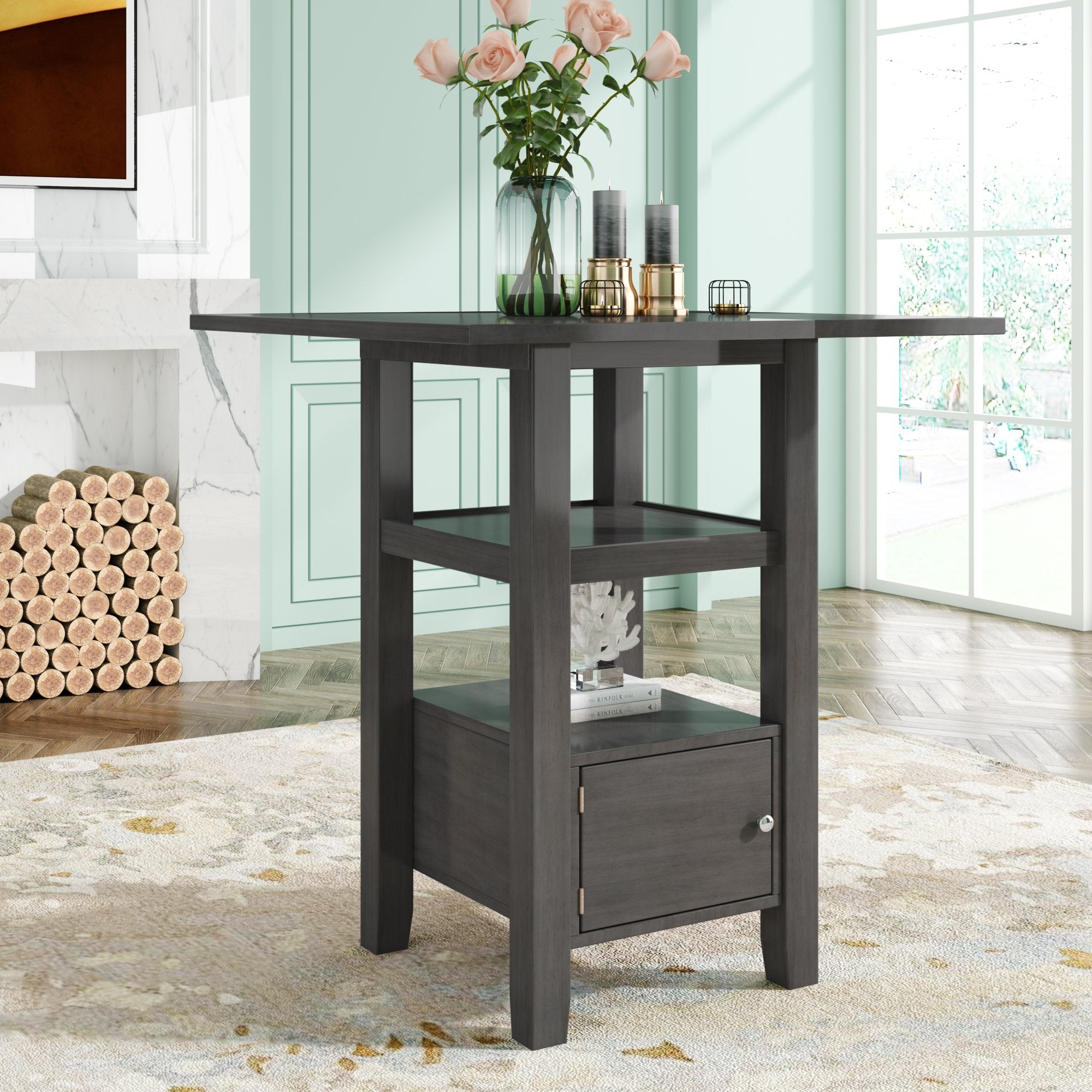 Built-In Double Tier Shelf---The compact square structure neatly fits into small spaces without compromising the function. The shelf on the bottom creates a display area for your magazines, decorative baskets and other daily essentials within arm’s reach while also a providing space-saving solution.