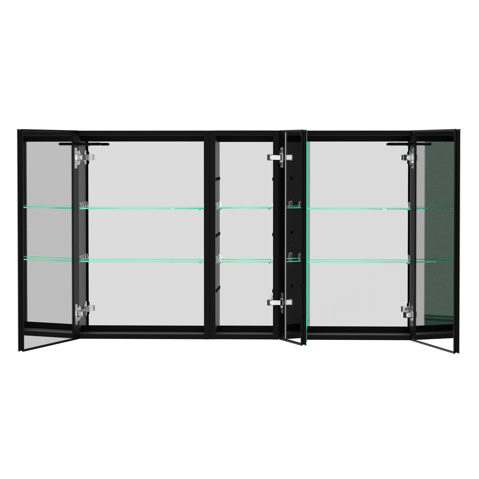 1. Aluminum frame (Aluminium); 2. Two 8cm thick glass shelves (Glass Shelf); 3. 2 large double-sided mirror cabinet door + 1 medicine cabinet with mirror;