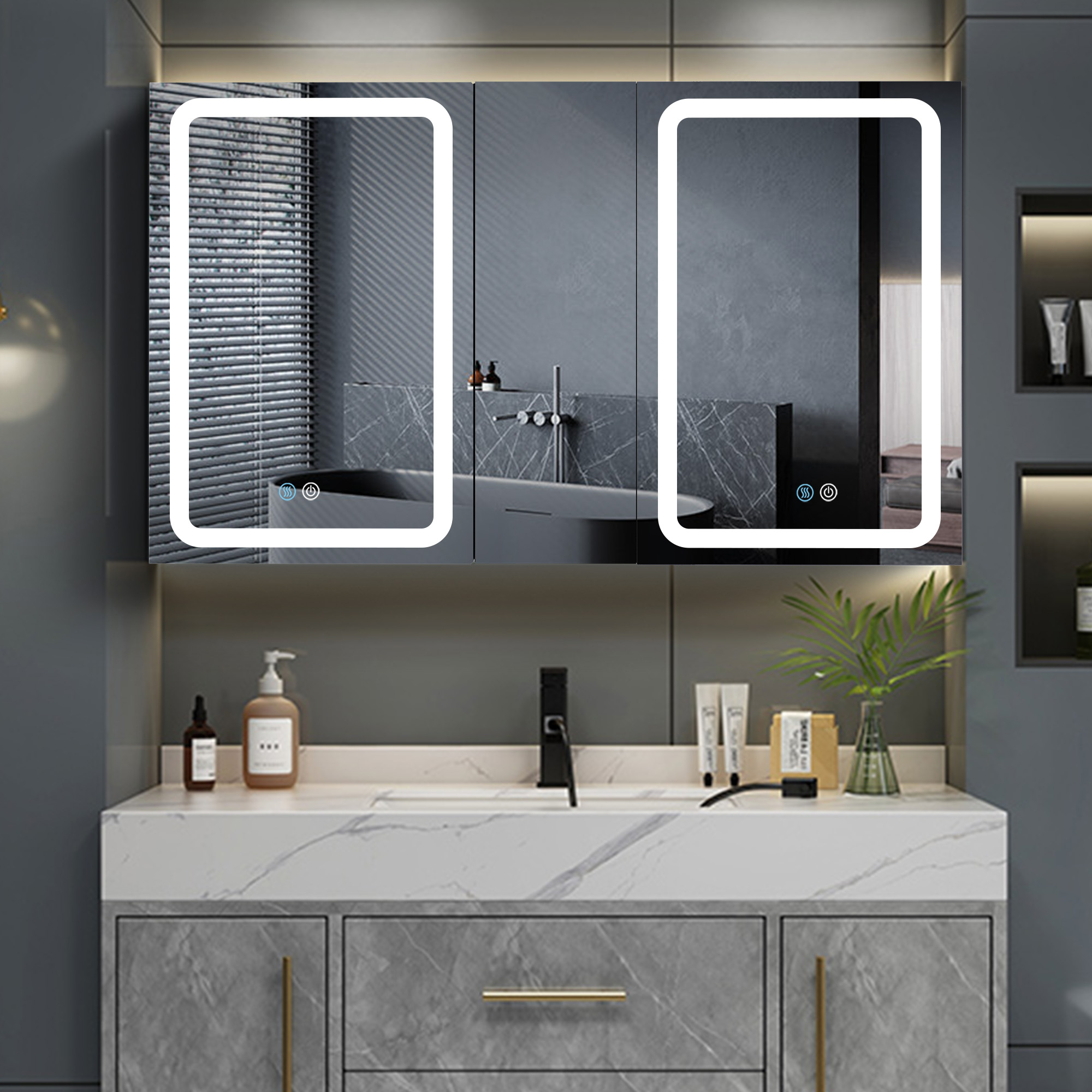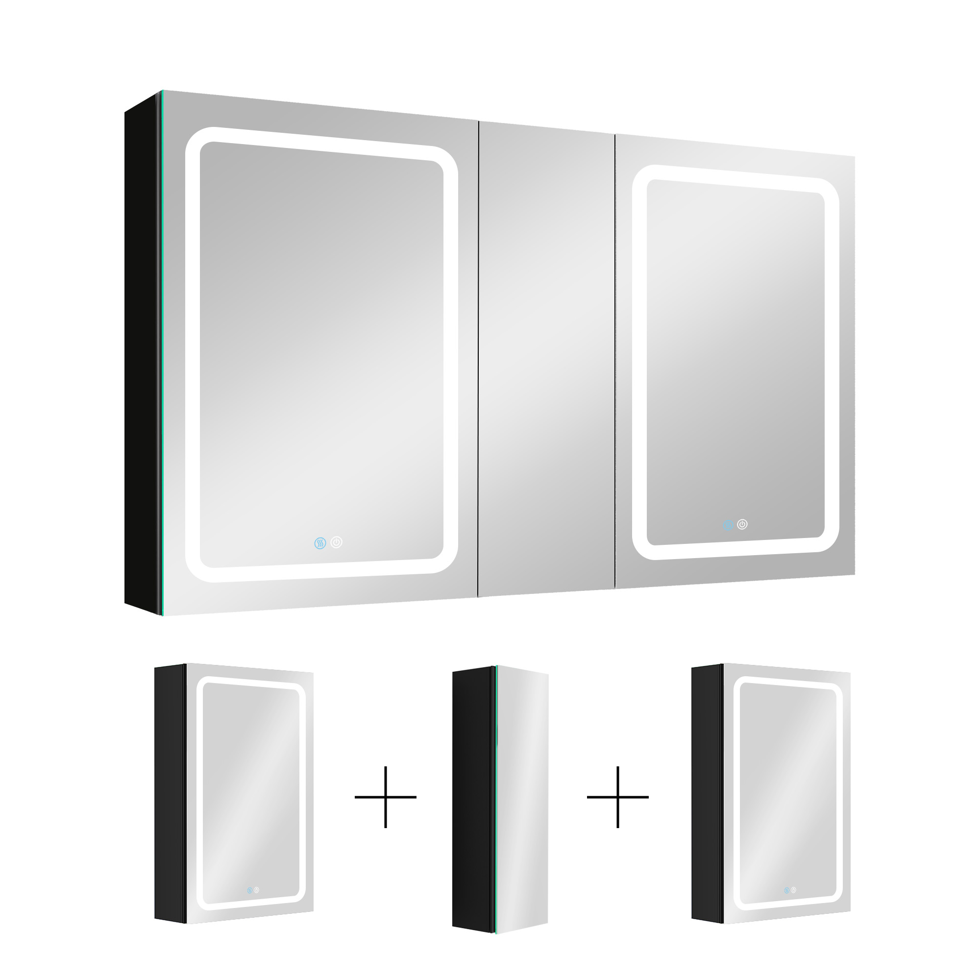 50x30 Inch LED Bathroom Medicine Cabinet Surface Mount Double Door Lighted Medicine Cabinet, Medicine Cabinets for Bathroom with Mirror Defogging, Dimmer Black