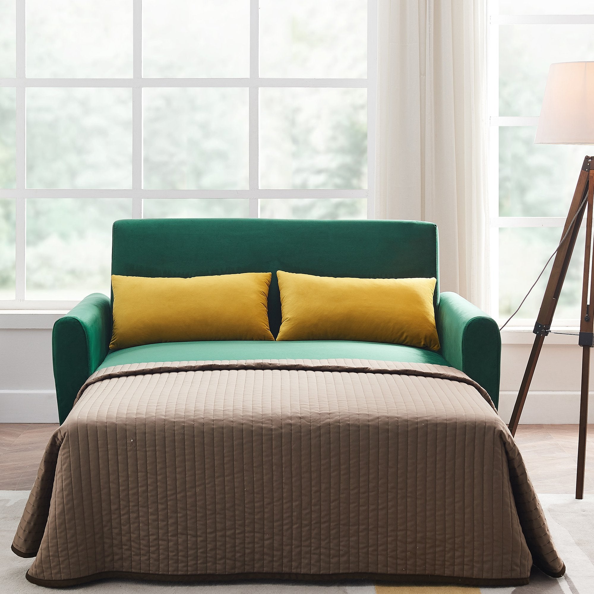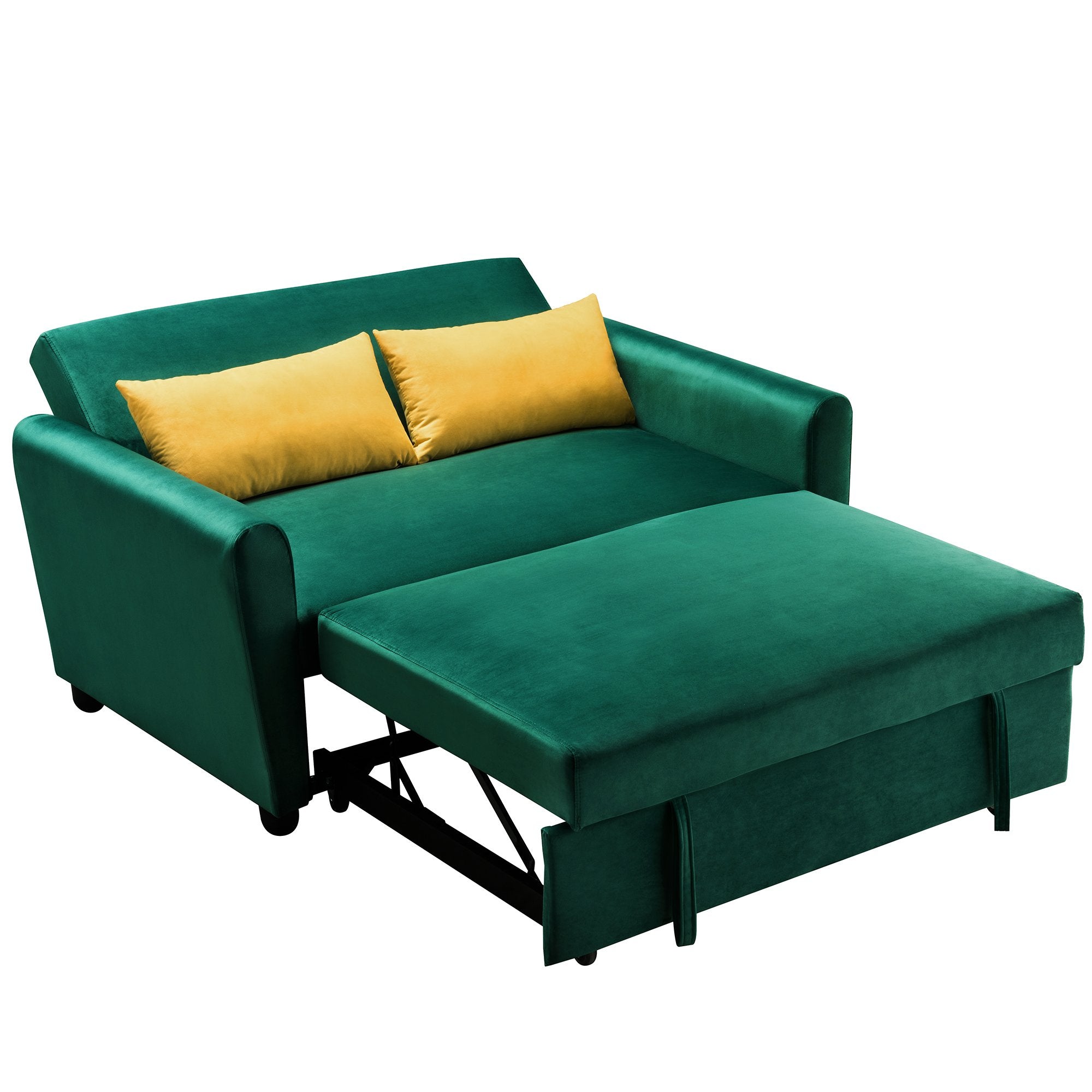 - The dark green looks elegant and adds a natural feeling to your home with the sofa bed, classic style with a sleek design will inspire a fresh look and bring comfort to your small space. Two yellow pillows are included as a gift, the combination of green and yellow shows inspired energy, being a shiny addition to your modern home.
