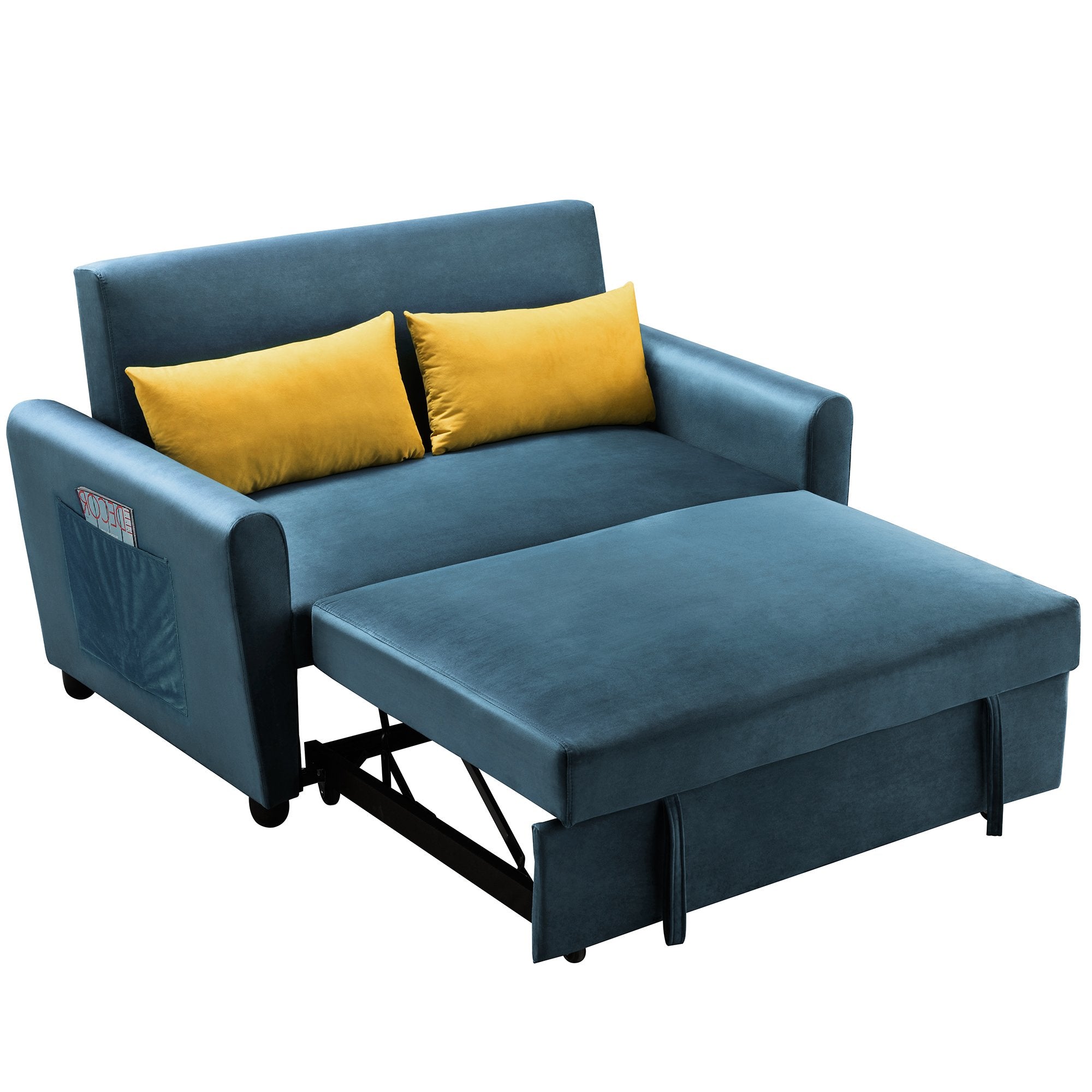 - Feature a pull-out bed, this loveseat sofa can be quickly converted into a guest/child bed to take a rest. The backrest is adjustable at 3 levels to incline from 105° - 180°, meet different needs of reading, entertaining or sleeping. With durable armrests, safety is ensured to provide from falling down when using as a sleeper bed.