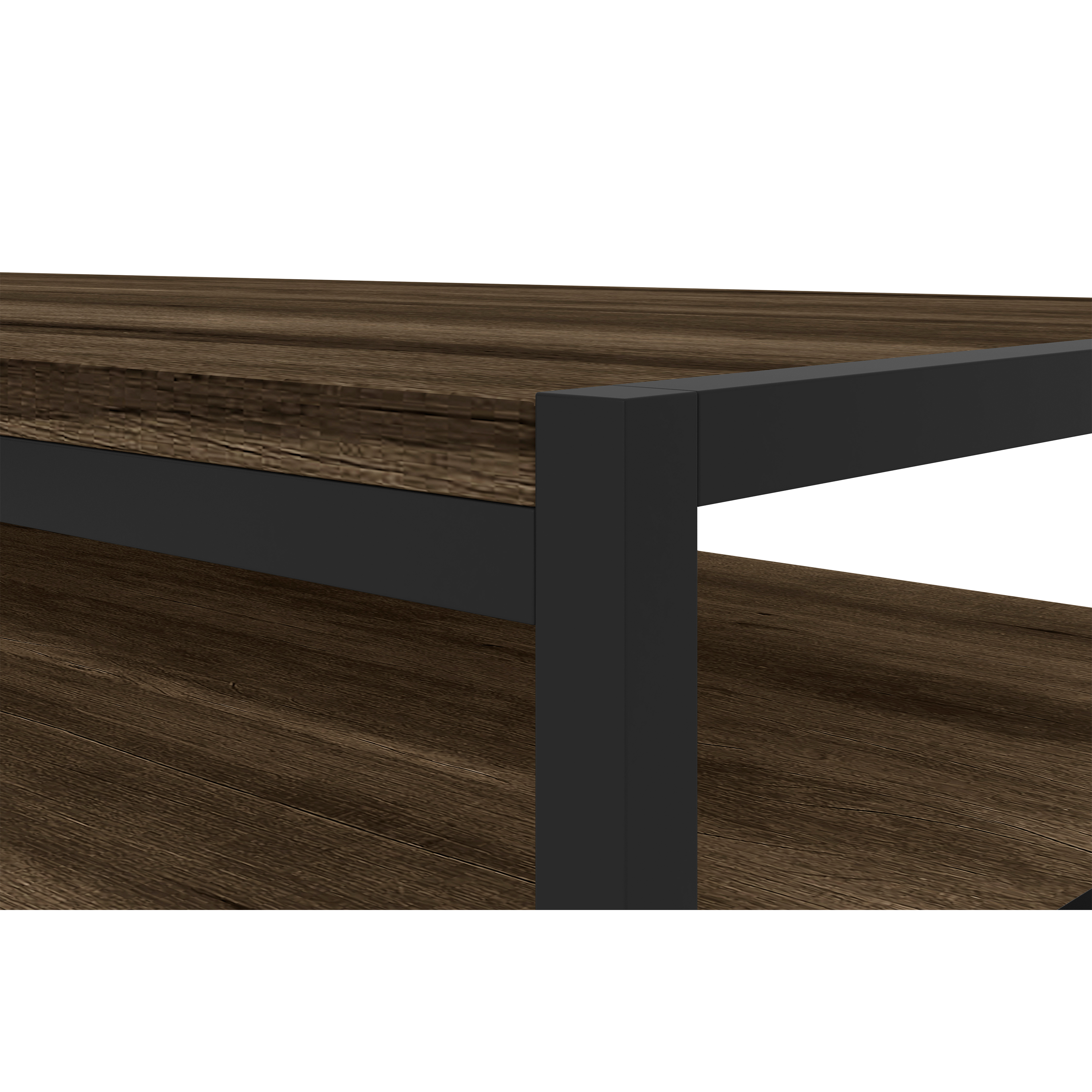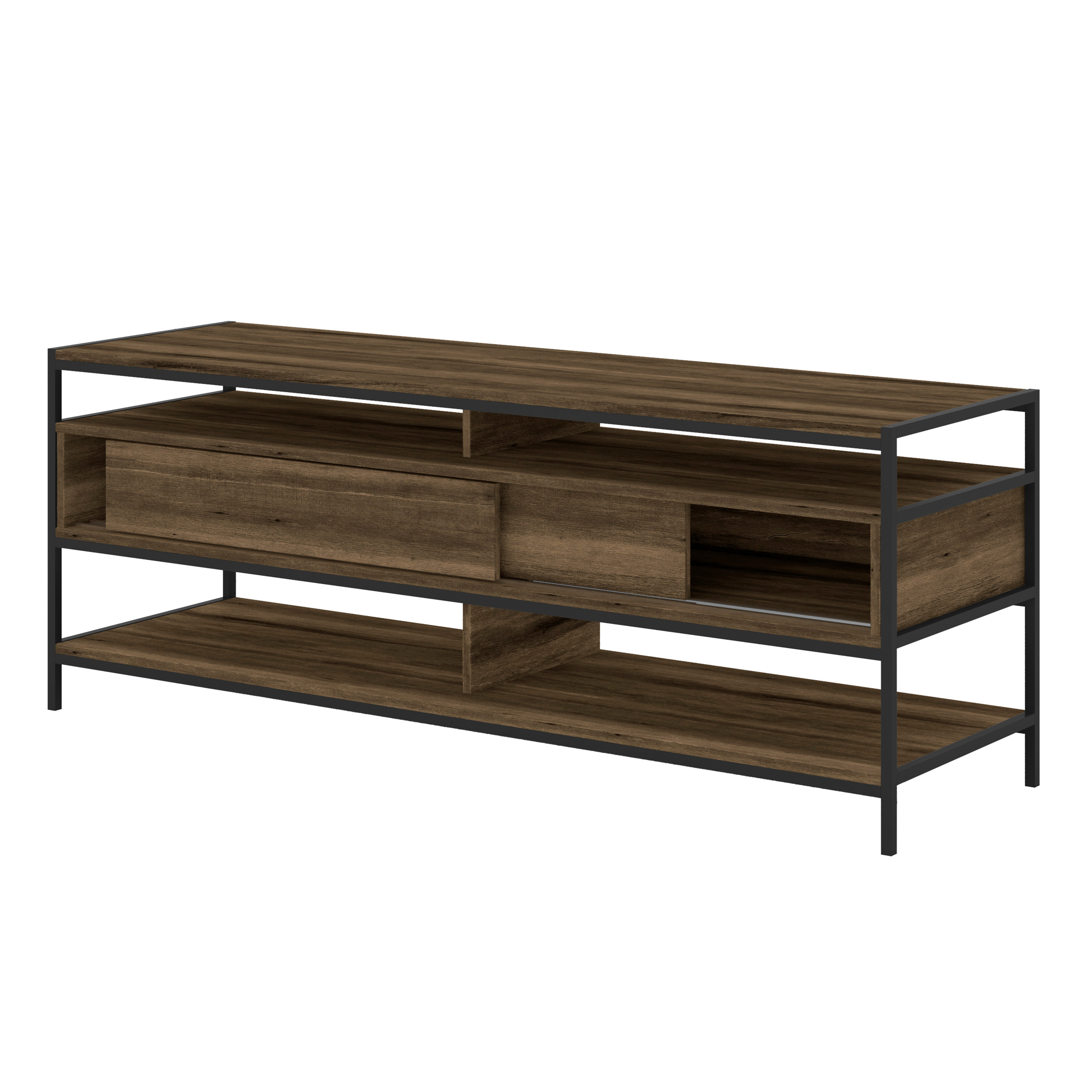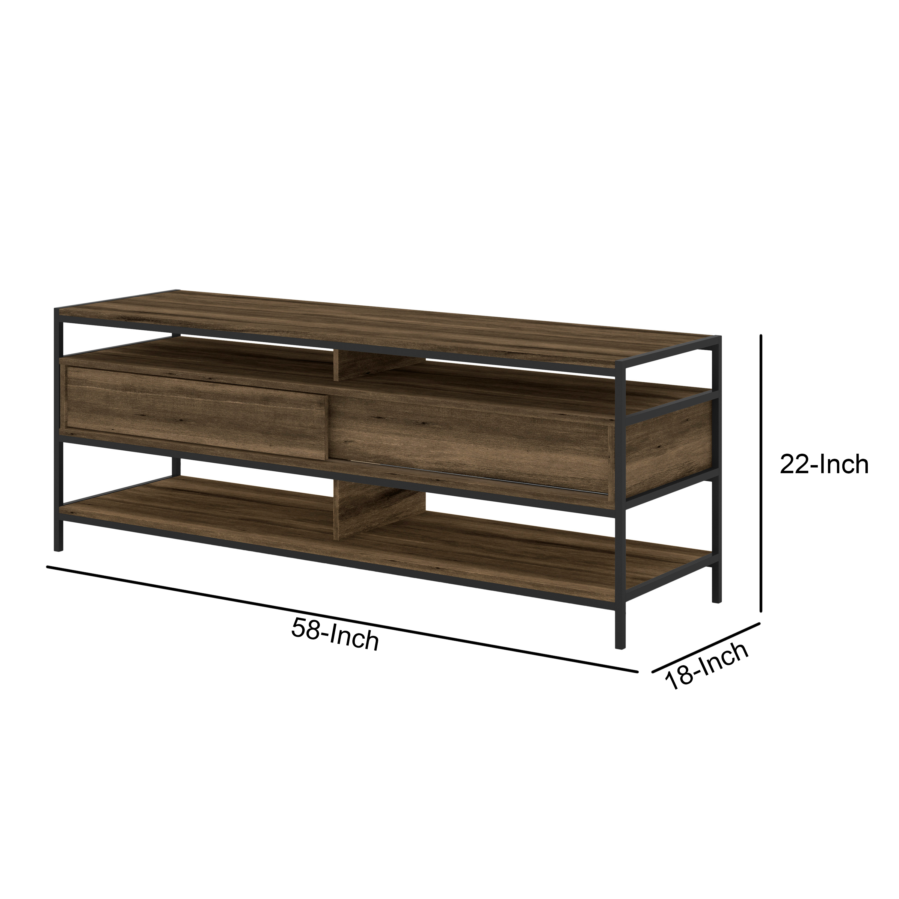 Provide a sophisticated abode to all your media gadgets by bringing in this contemporary style TV Media Console Stand which offers spacious storage with its 2 drawers and open compartments. Constructed from the combination of particle board and metal, this entertainment center for your flat screen TVs is accented with brown and black finish.