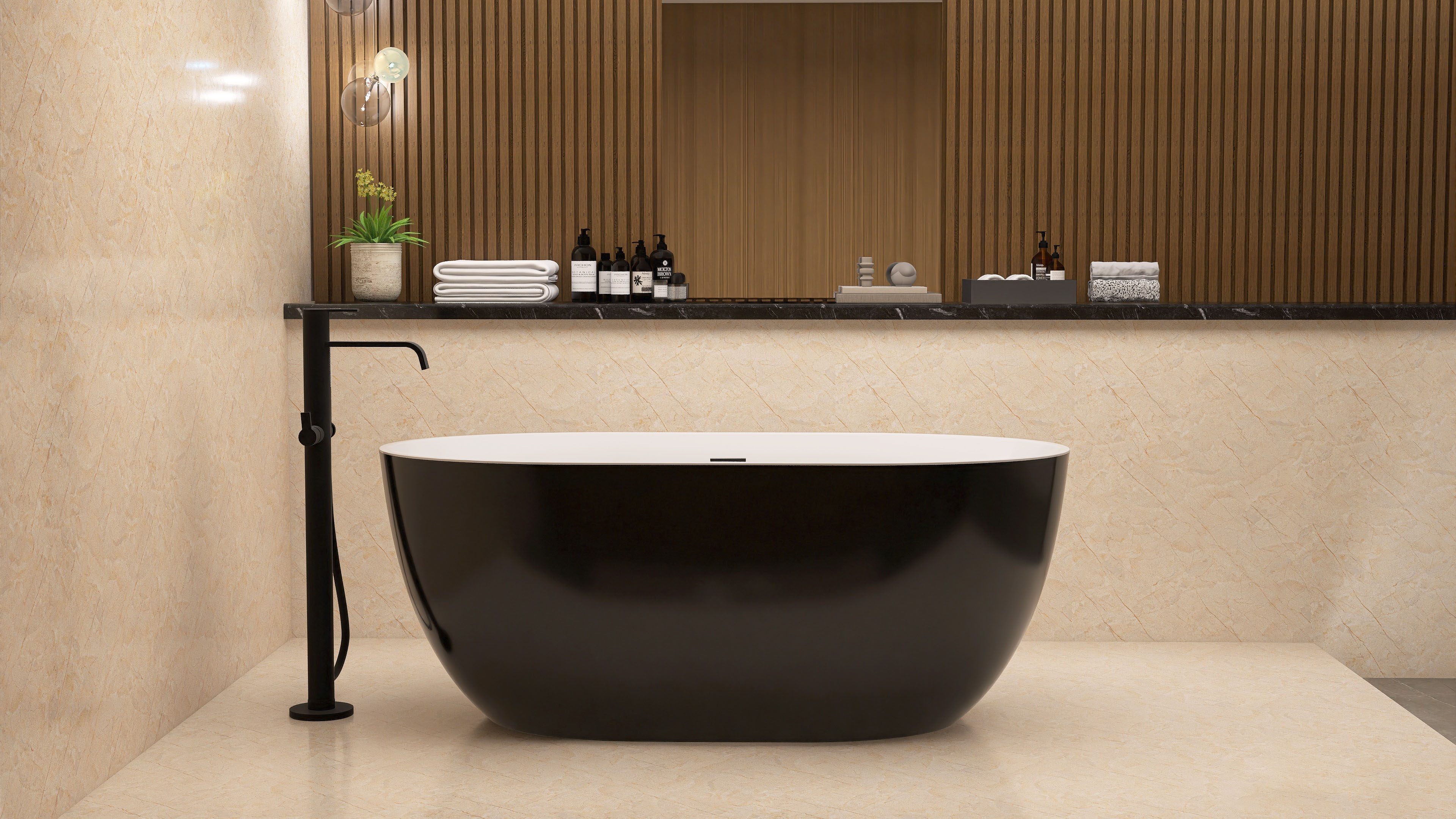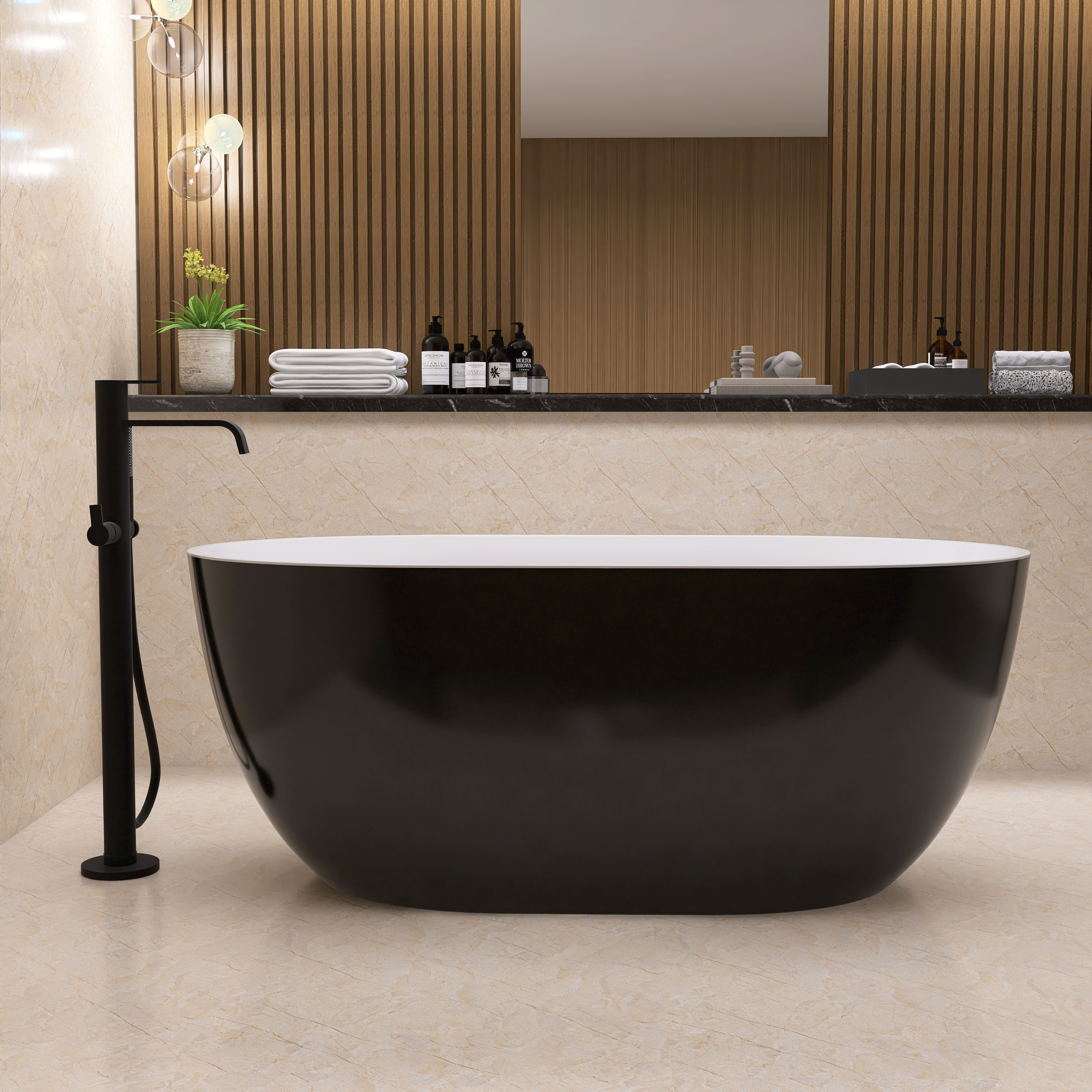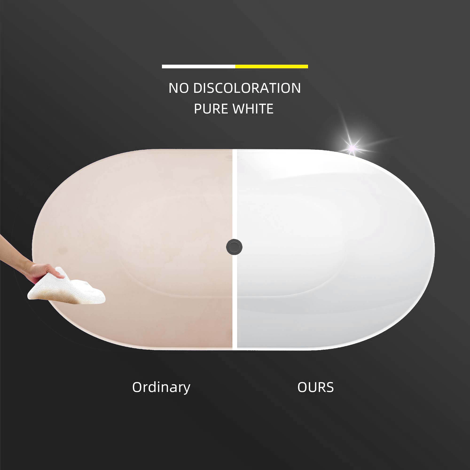 The modern design of oval shape black free-standing tub, combining luxury, elegance, and fashion, creates a unique bathing space for you. With excellent heat retention as well as a high gloss black finish, this alone soaking tub is easy to keep bright and clean as new and never outdated after long-time usage.