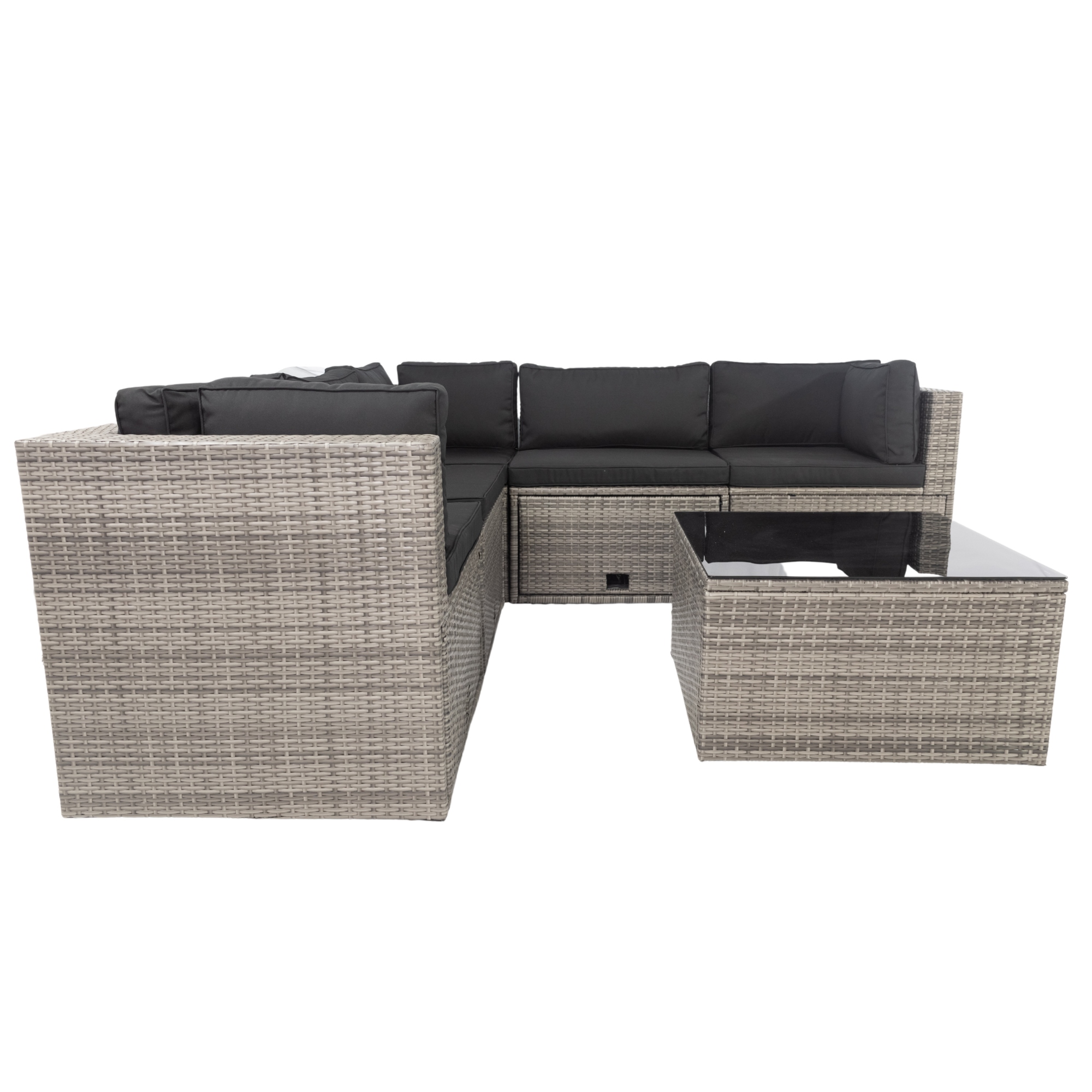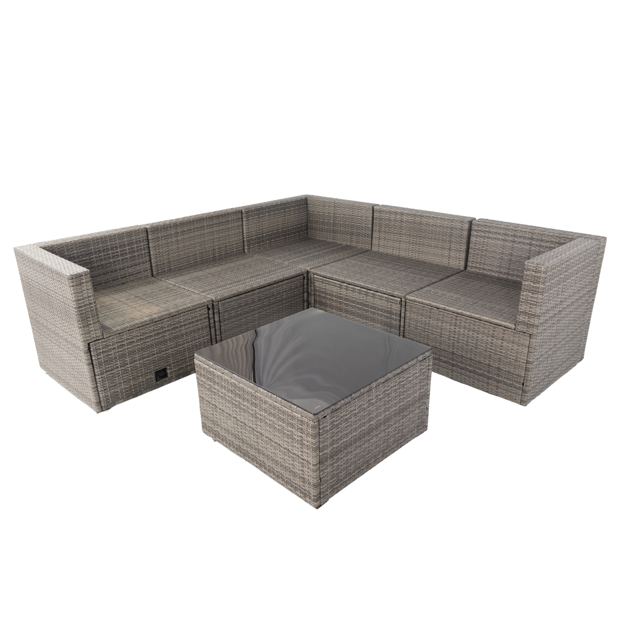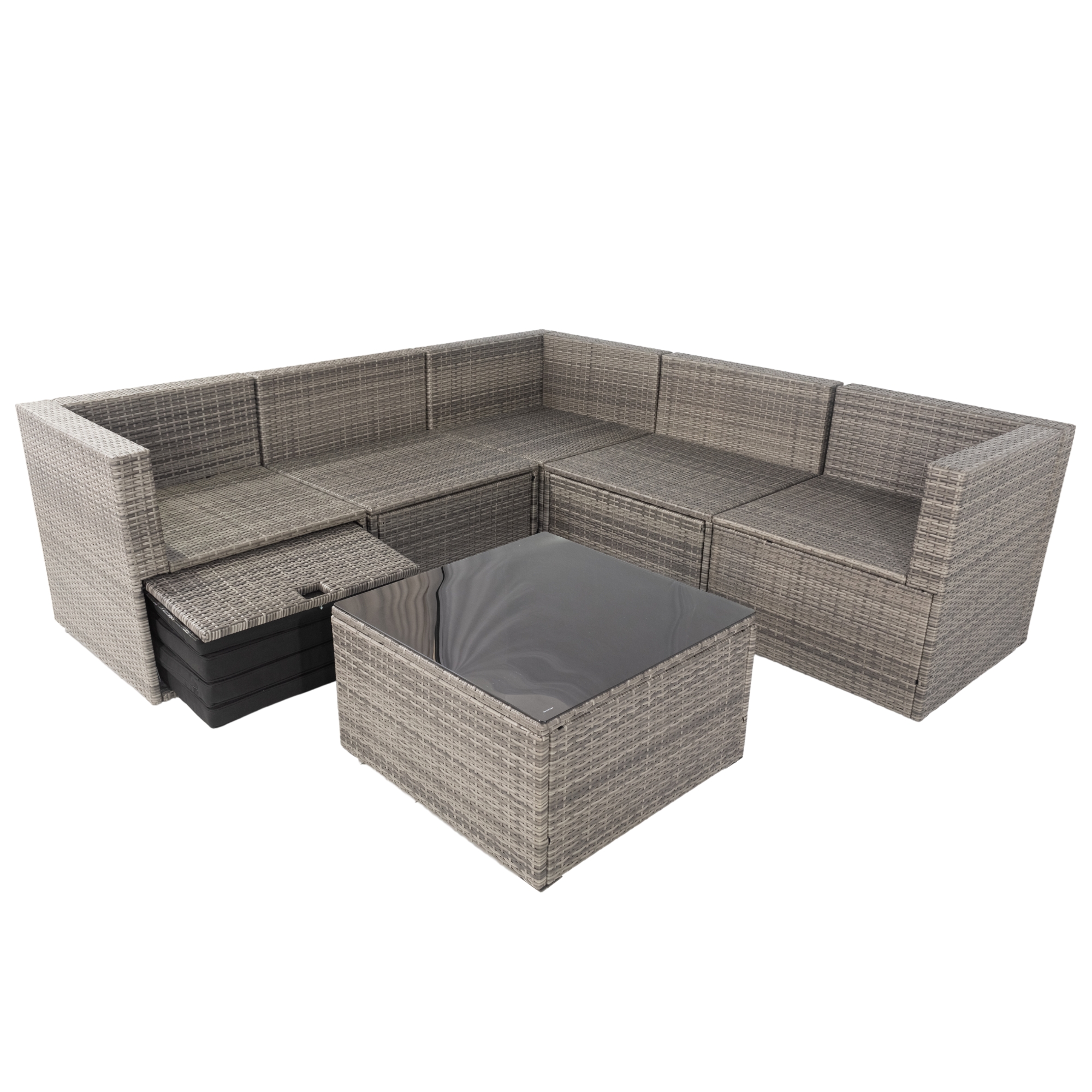 6 Pieces PE Rattan sectional Outdoor Furniture Cushioned Sofa set with 3 Storage Under Seat Grey