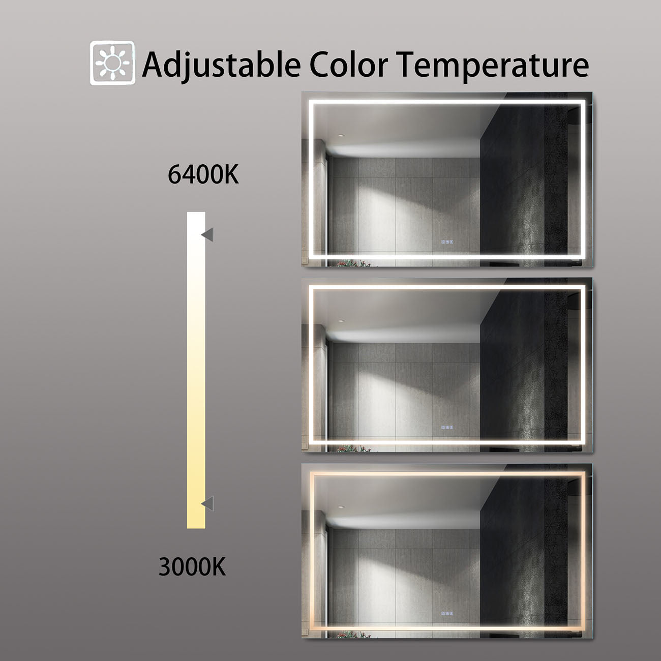 Mirrors play a critical part in your homes decoration style and functionality of your home. The right mirror helps to express your personality, and brings together the design style of a home. With an LED light strip display this mirror will brighten up your room, your face, and your smile. This LED bathroom mirror is a true symbol of style and sophistication.