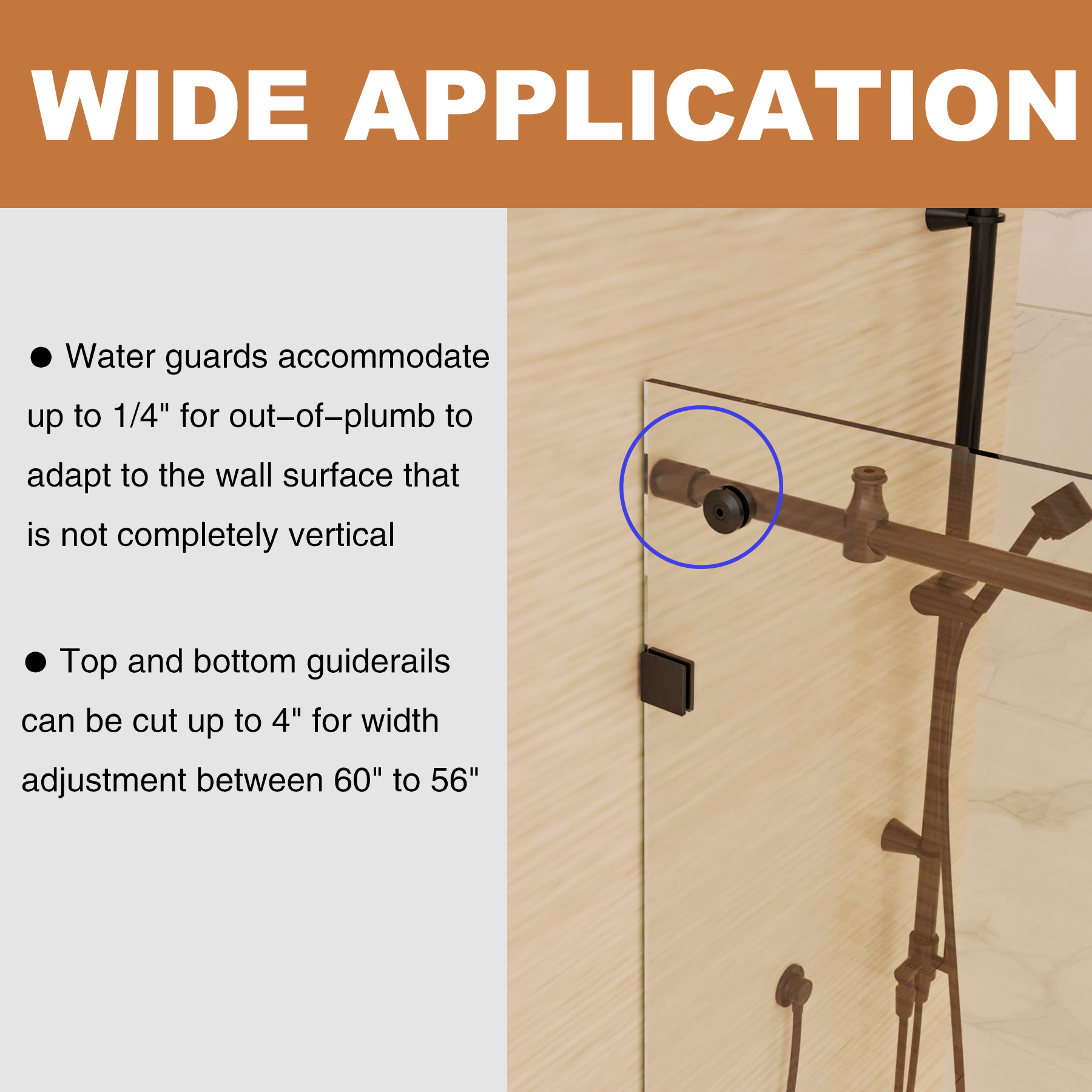 60 in. W x 74 in. H Sliding Frameless Shower Door in Matte Black with 5/16 in. (8 mm) Clear Glass