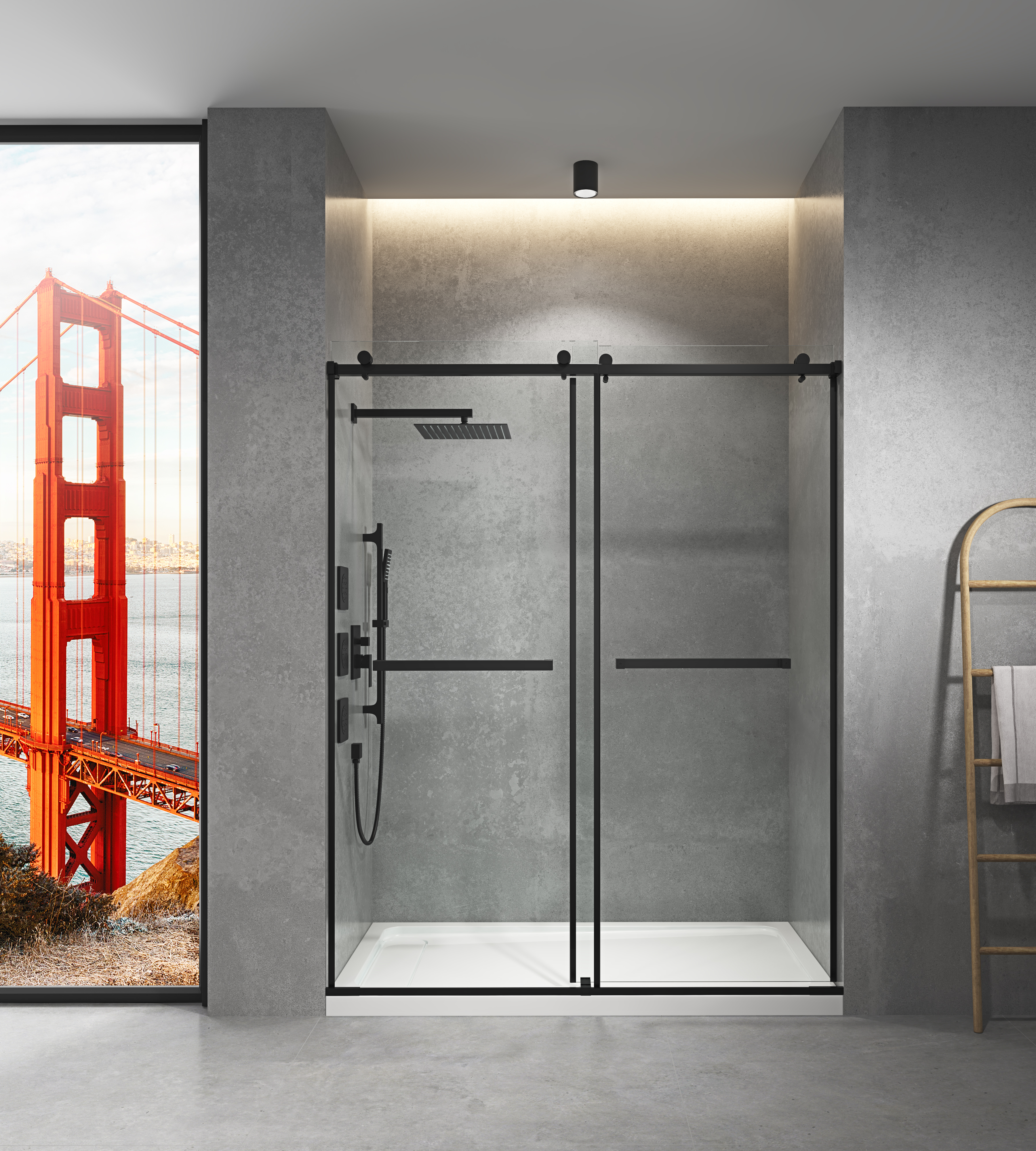 Adjustable Frameless Sliding Shower Door is everything you want and need to complete your bathroom remodel. this door has built-in adjustability to ensure that it is a perfect fit in your shower. Technology ensure that your shower door will remain level despite inevitable shifts that occur as homes settle. This door features resilient tempered glass to prevent dangerous splinters and shards. With the option for right or left-side installation, is as versatile as it is sturdy. Stainless-steel hardware outfitted in a 7-layer plated, rust-free matte black finish completes this one-of-a-kind design.offers 4 in. of horizontal adjustability during installation to fit your space provides up to ⅜ inches of adjustability to accommodate out-of-plumb wallsaccommodates walls that may shift over timeensures the hardware finish is consistent throughout and guaranteed to match all other productsmetal threshold on shower doors prevents water leaks and ensures that your bathroom floors stay dryEASY TO CLEAN: high-quality 304-series stainless steel constructed hardware easily wipes clean for a lasting sheenPREMIUM FINISH: 7-layer coating ensures long-lasting brilliance that resists rust, corrosion and tarnishTEMPERED GLASS: 3/8-inch thick ANSI and -certified clear tempered glassCONVIENENT DOOR HANDLE: glass door is pre-drilled for handle installationEASY WALK-IN ENTRY: fixed panel with sliding glass shower door allows for easy, walk-in shower entrySTRUCTURAL DURABILITY: rail and wall mount brackets support wall anchoring and reinforce stabilityQUALITY HARDWARE: stainless steel and brass constructed hardware ensures optimal performanceREVERSIBLE INSTALLATION: left or right-side opening provides versatility for various bathroom floorplansALL PARTS INCLUDED: all parts and mounting hardware is included in packaging