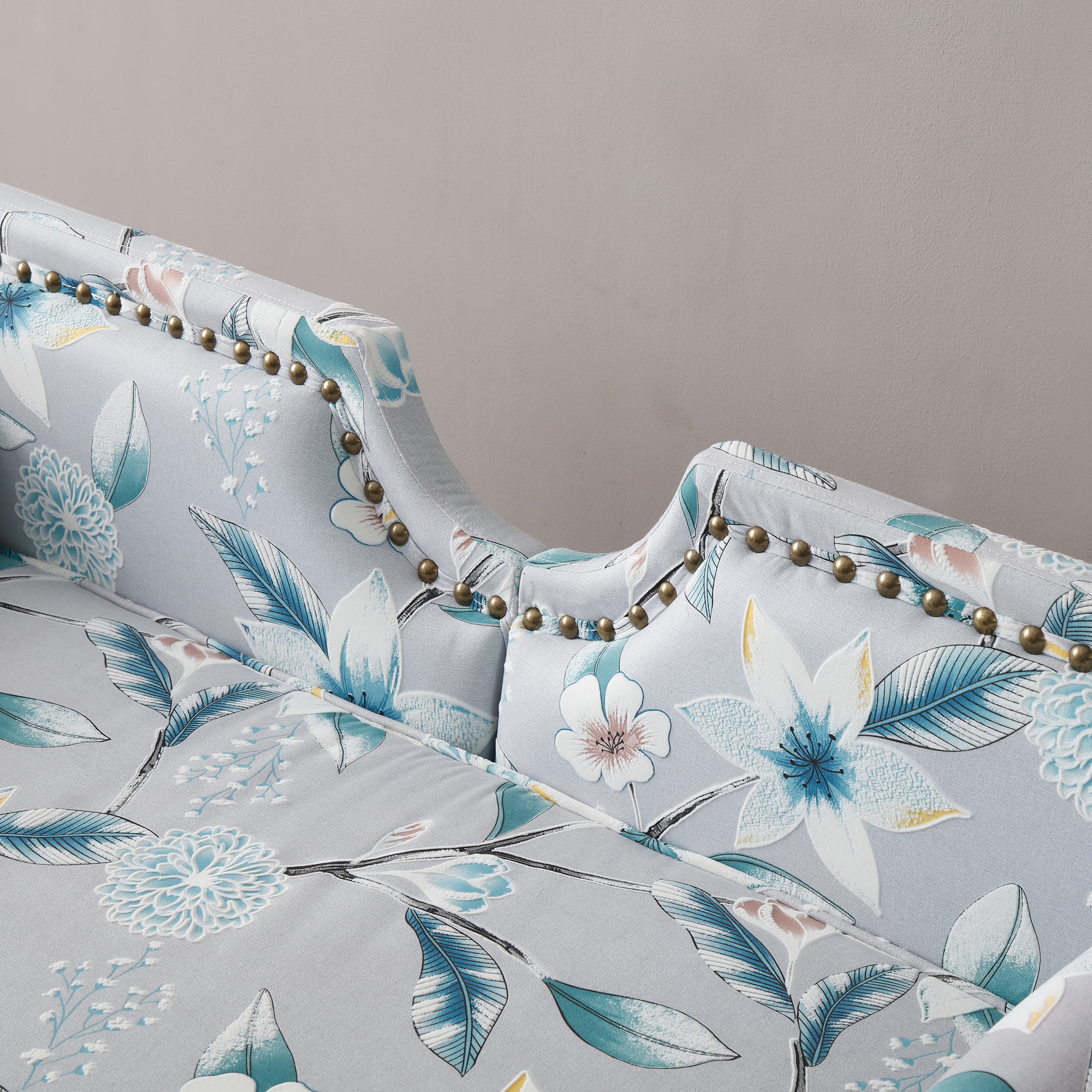 This unique modern printed velvet loveseat design features with elegant curved back,rolled armrests, nail head trimming,2pcs matching bolster pillows and silver metal legs.A delicate decoration for small spaces,such as living room, bedroom, apartment,office,etc.