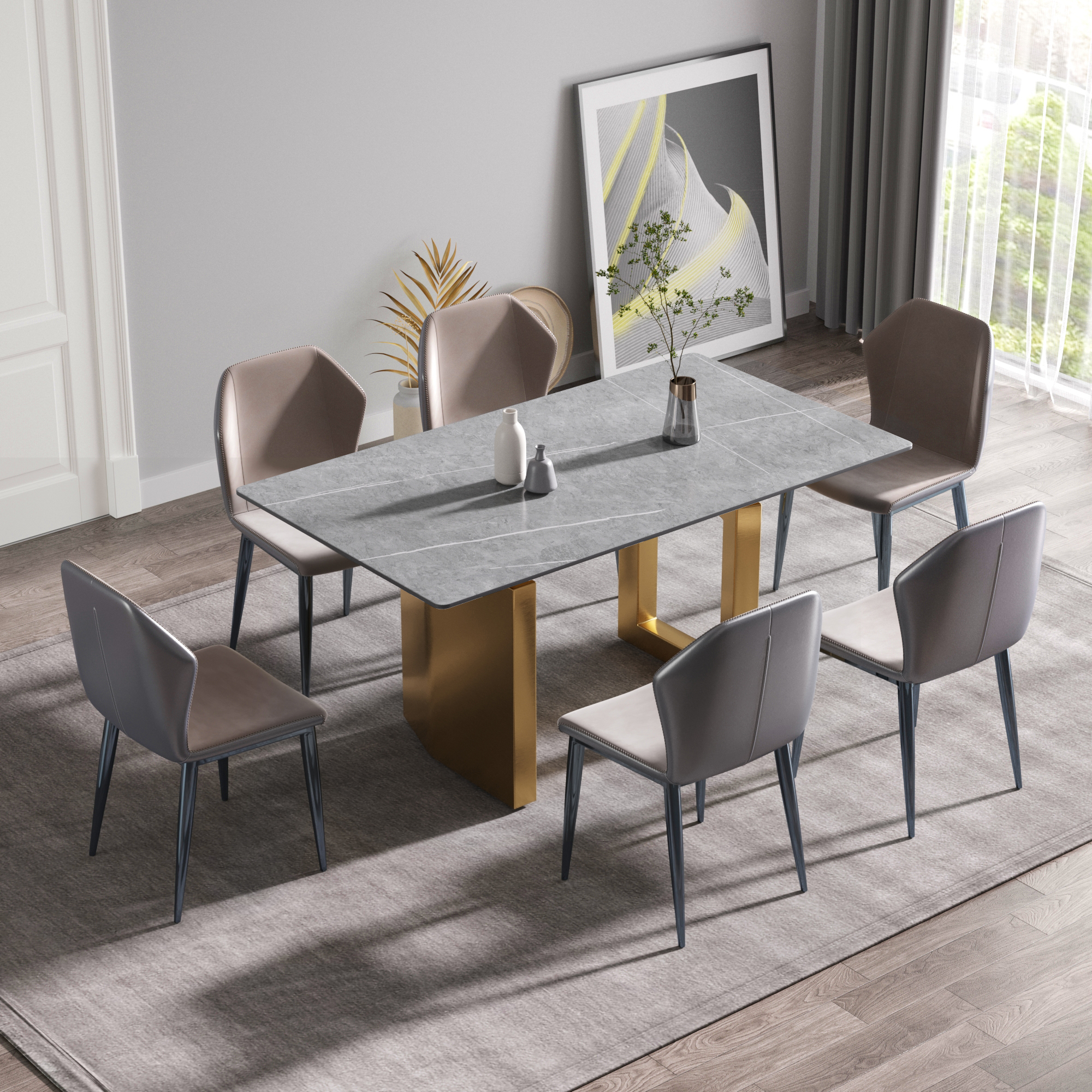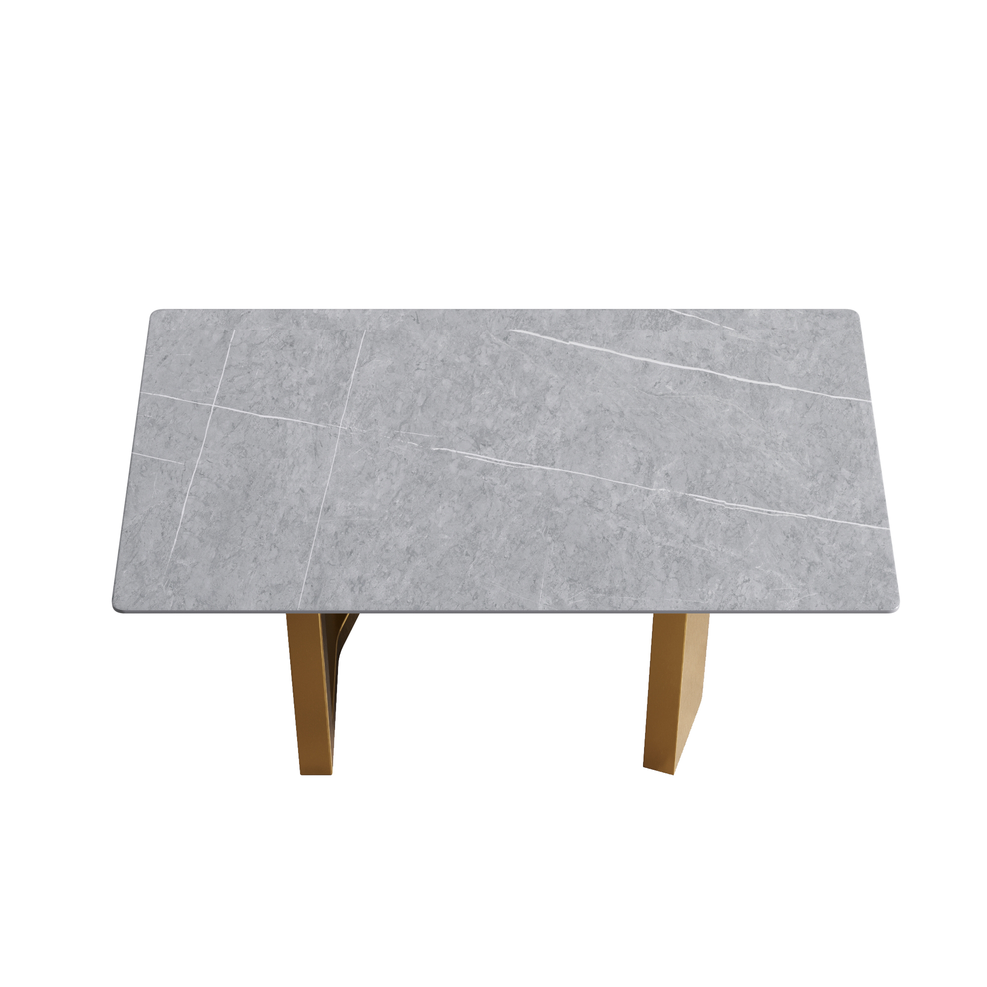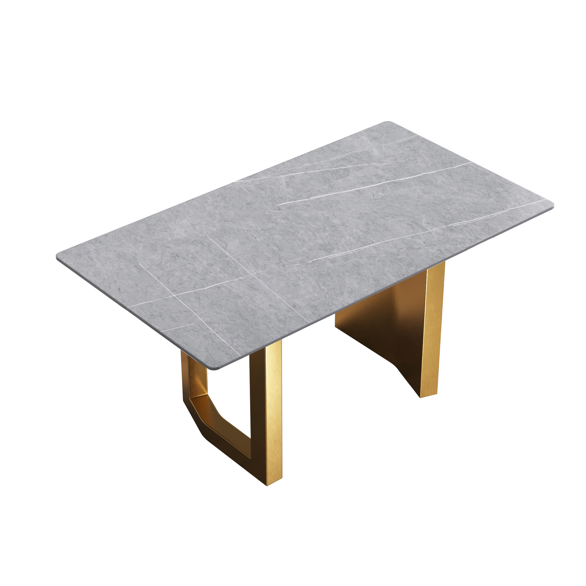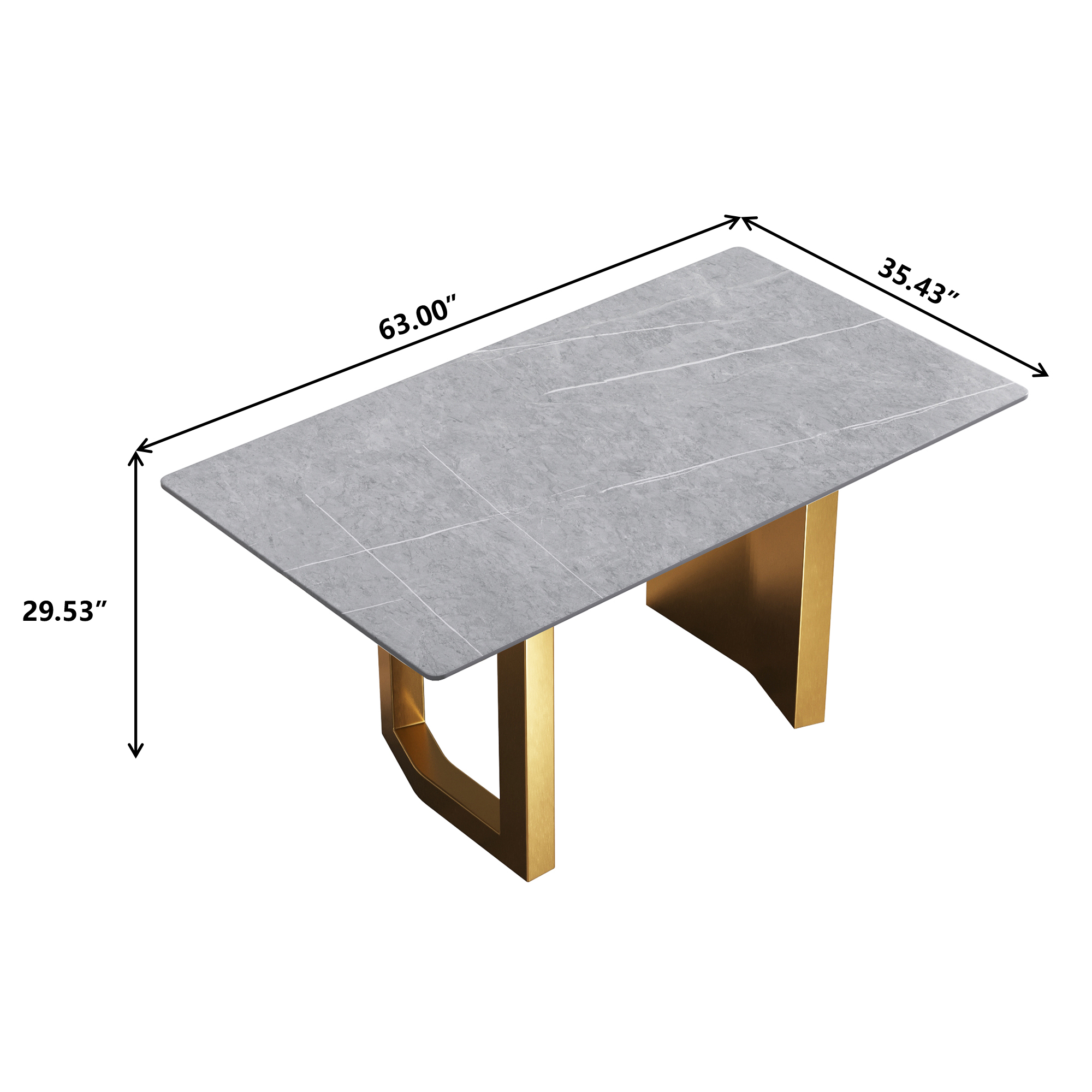 63"Modern artificial stone gray straight edge golden metal leg dining table -6 people