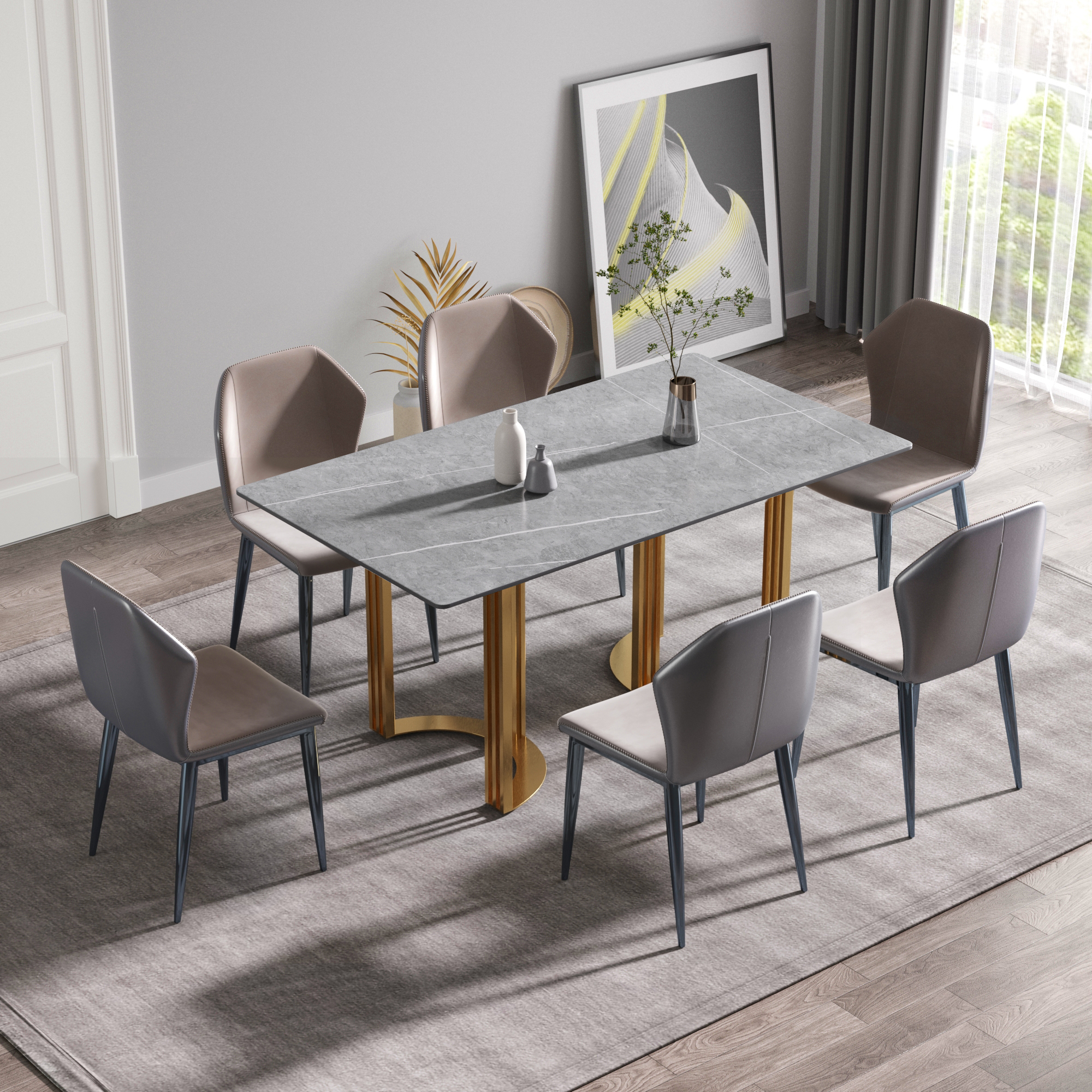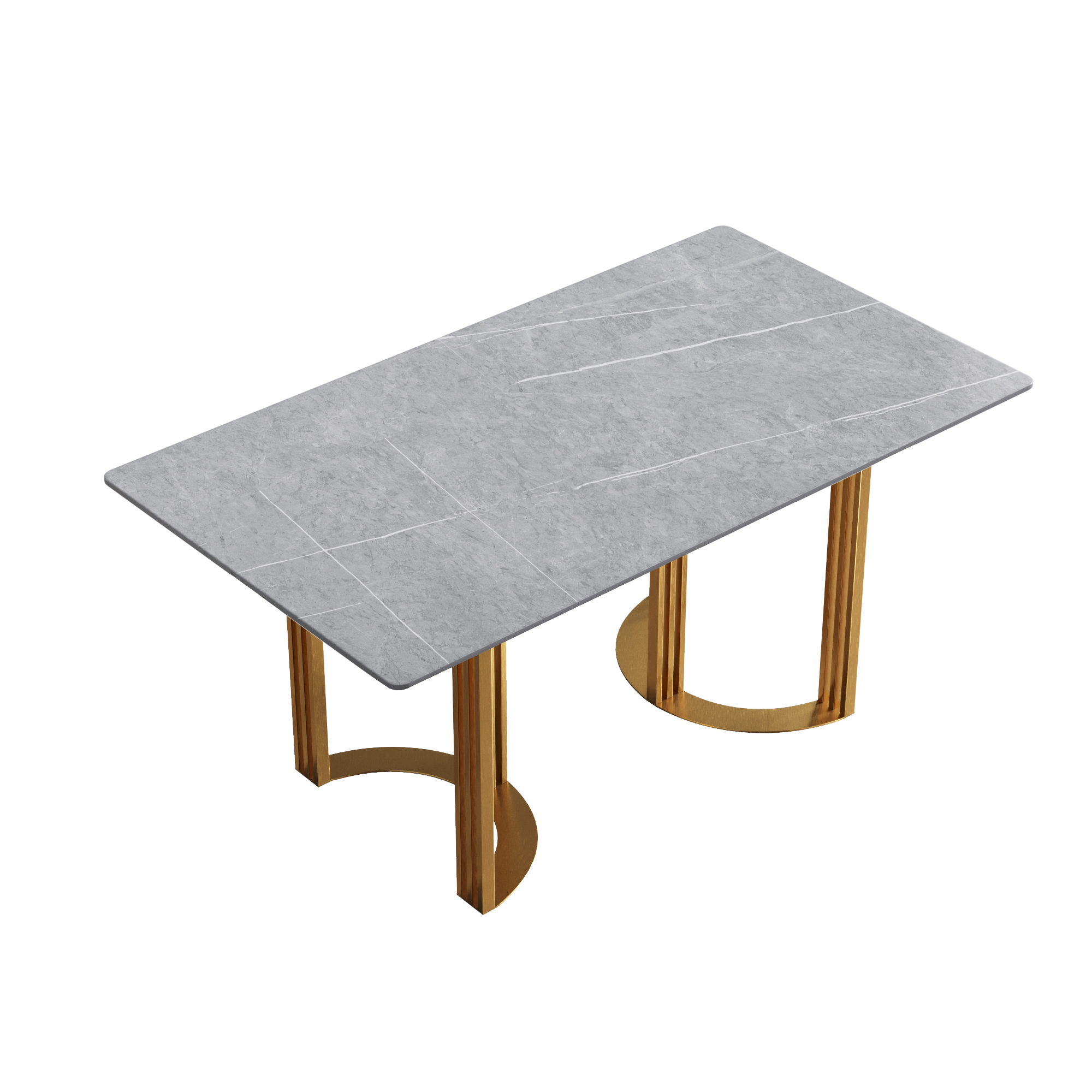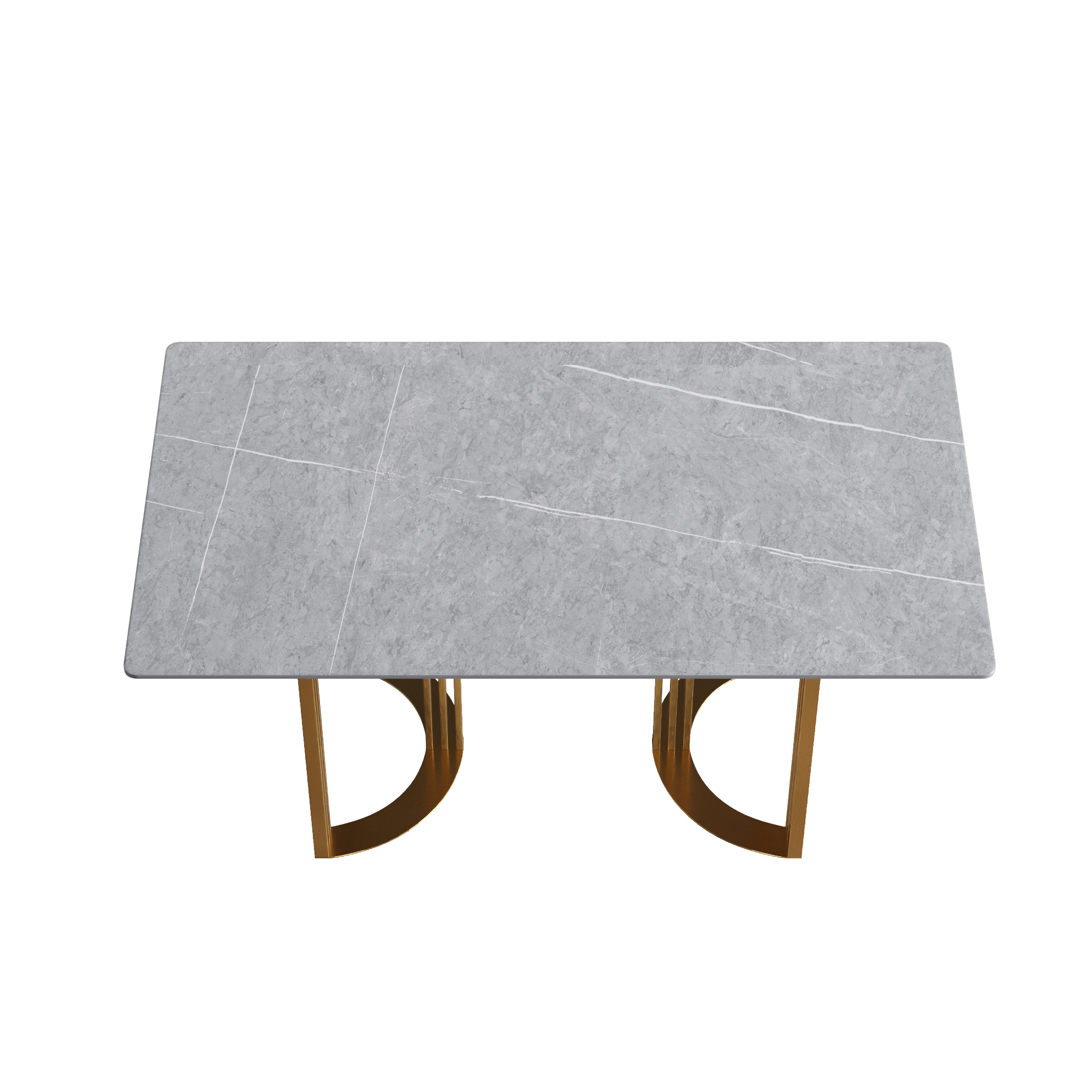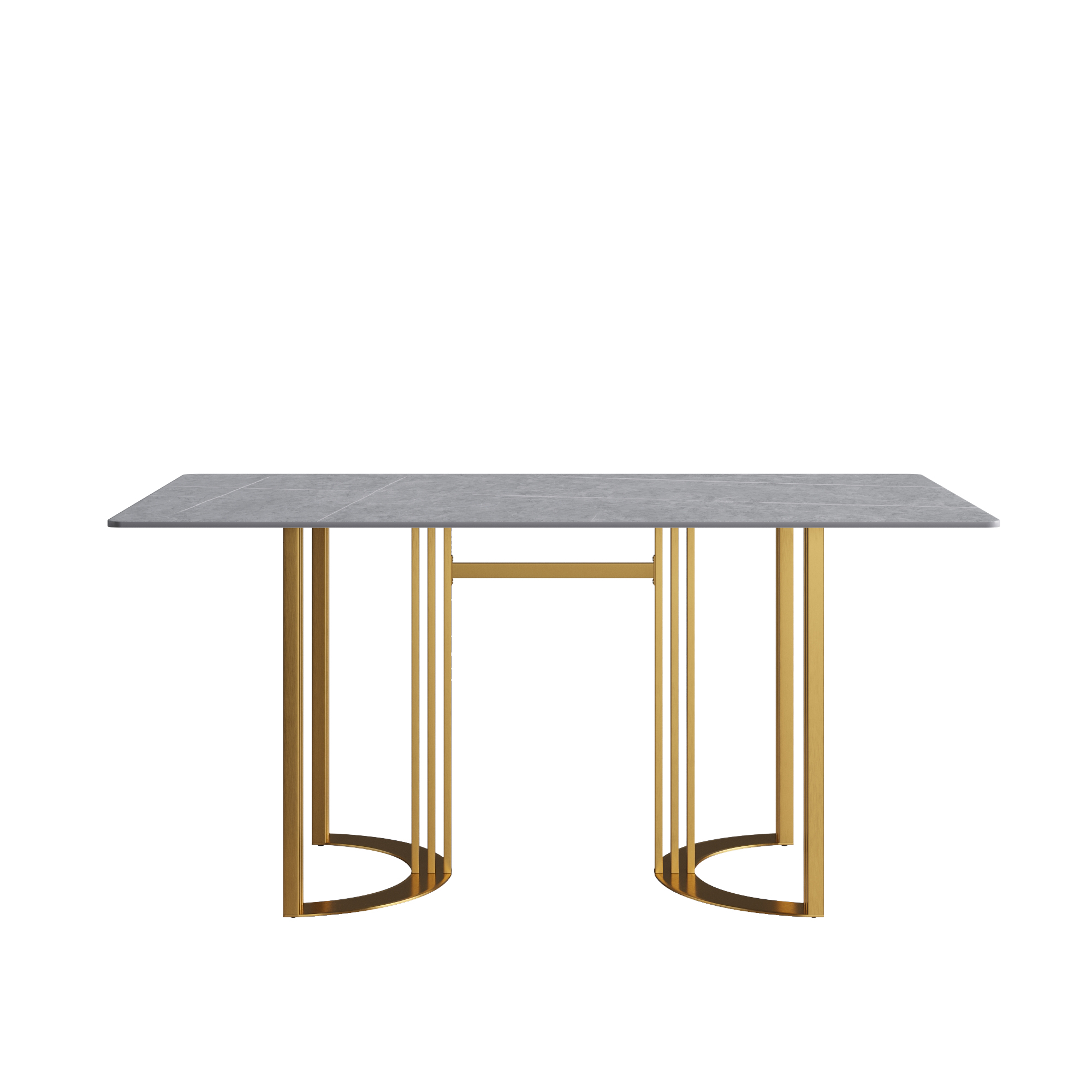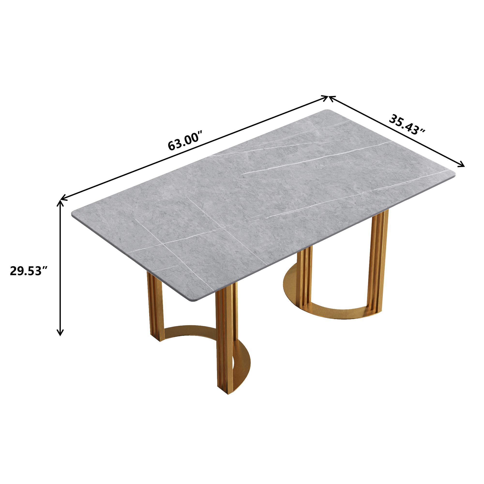 63"Modern artificial stone gray straight edge golden metal leg dining table -6 people