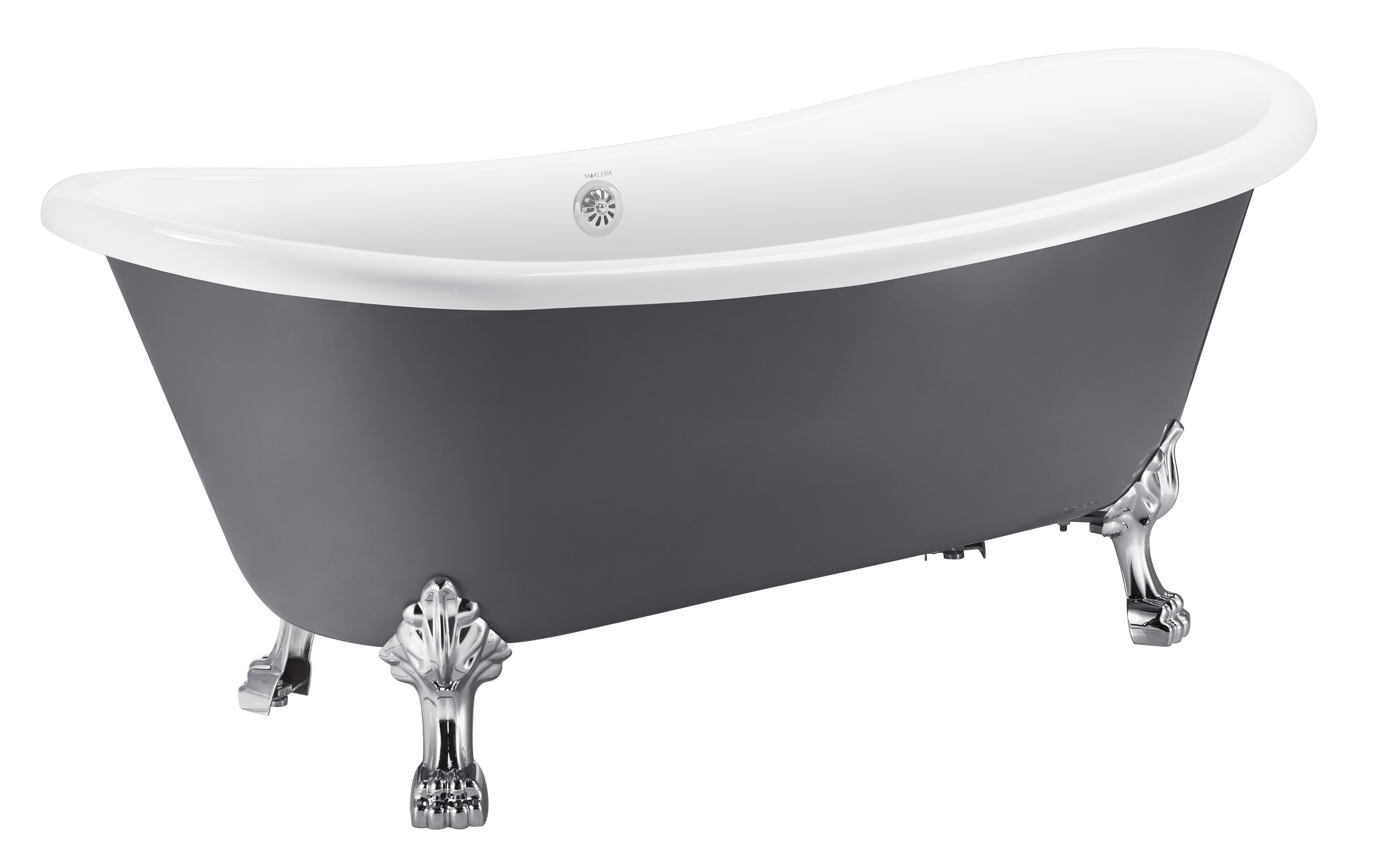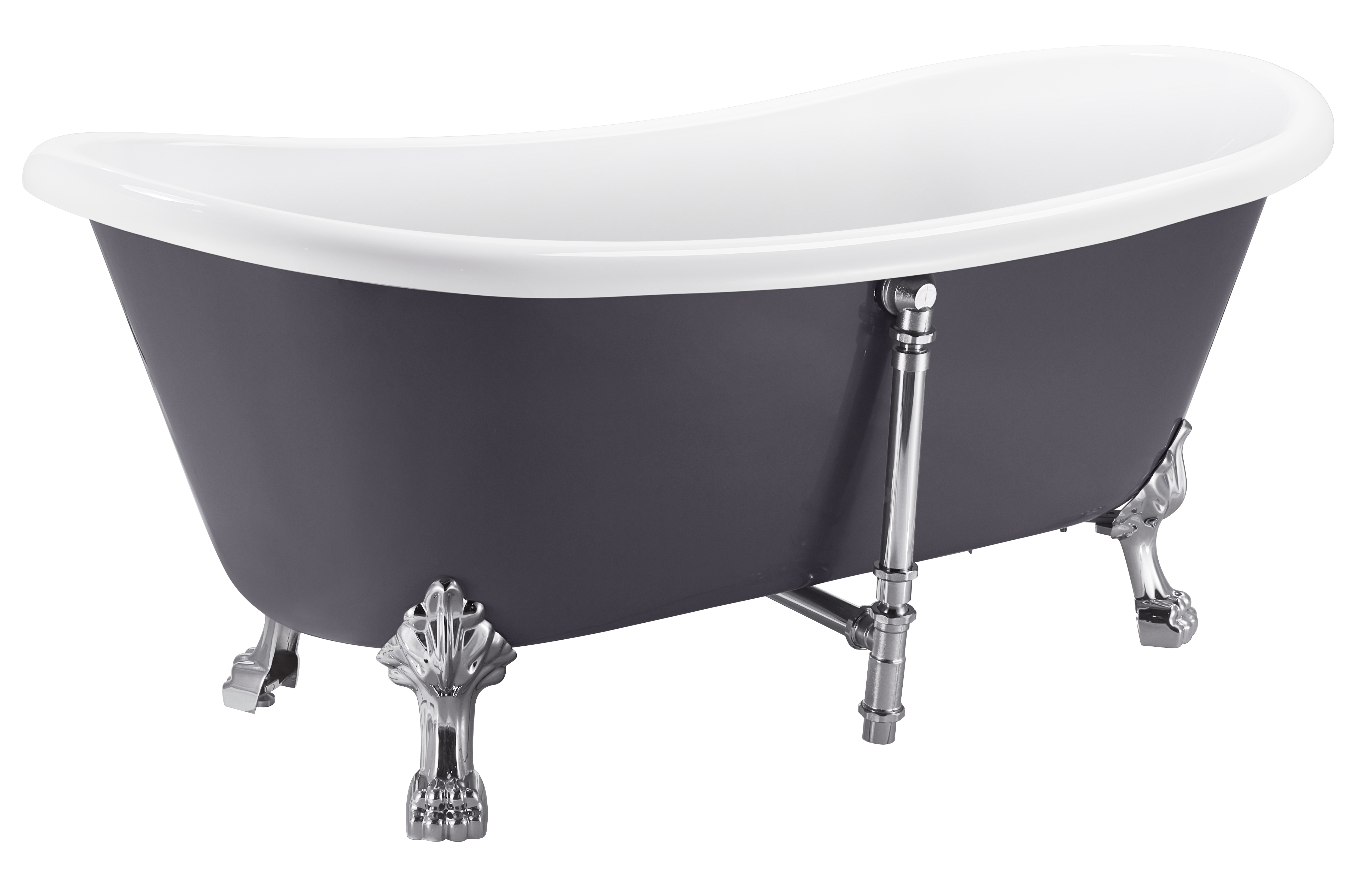 Oval bathtub,white inside and gray outside, installation type: freestanding