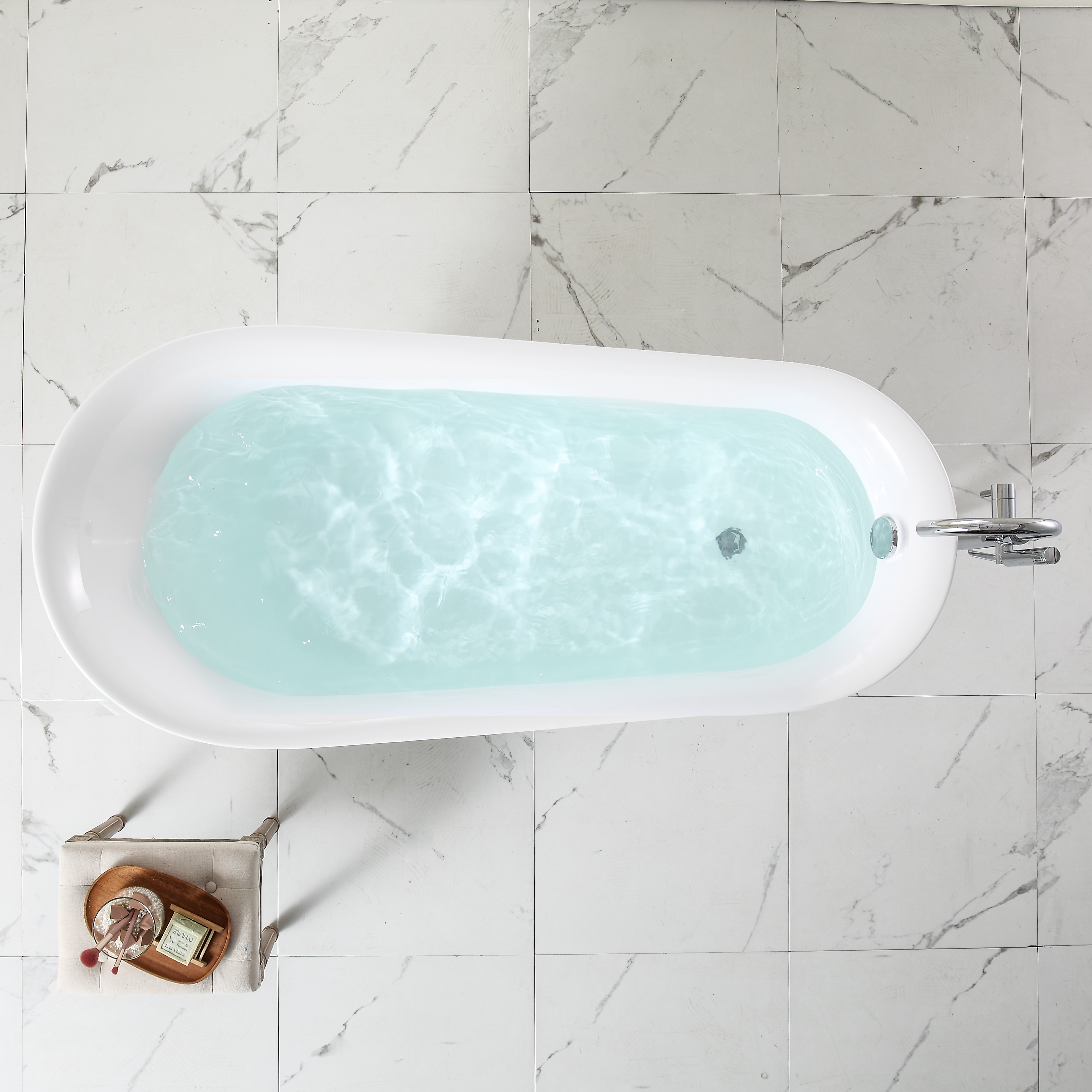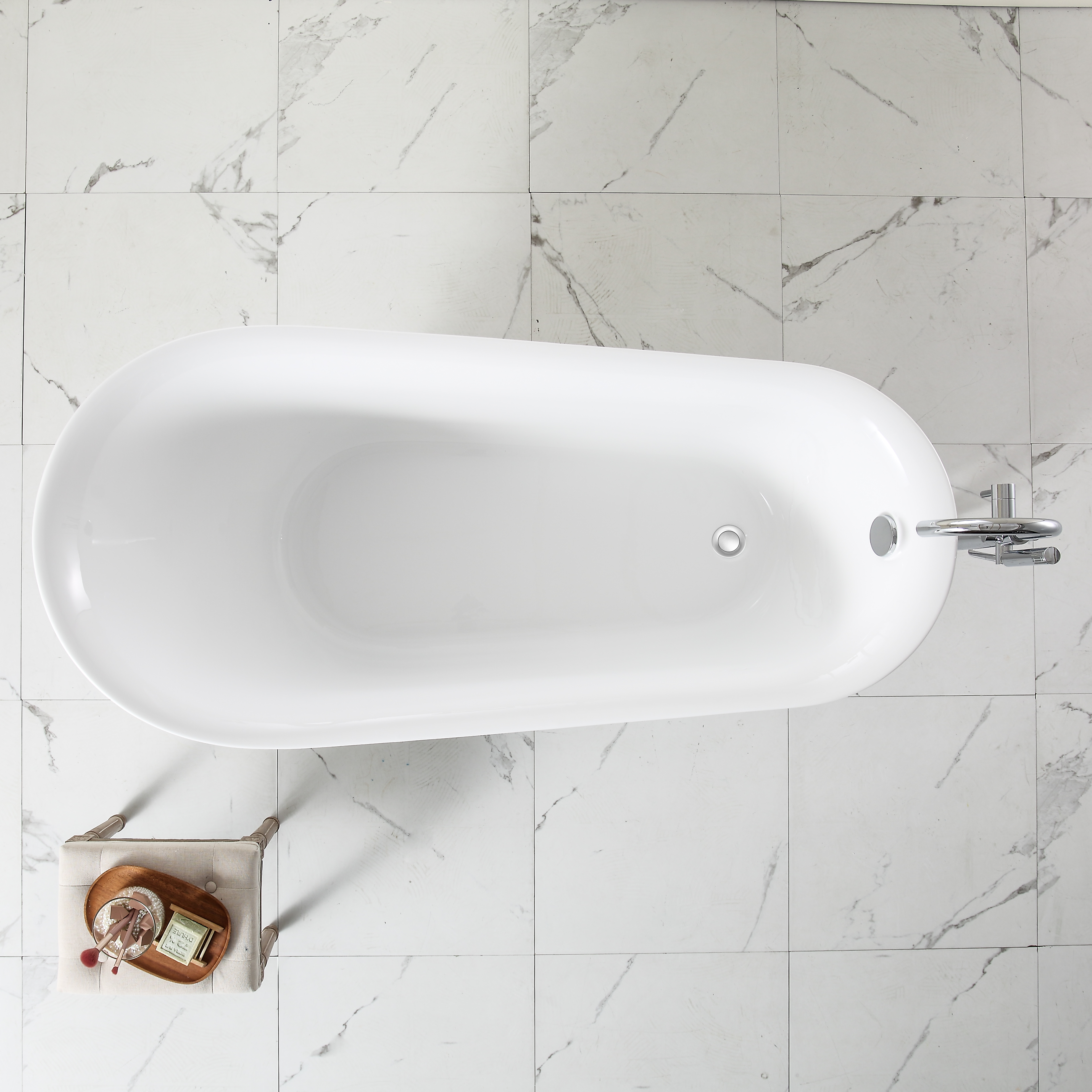 - The Freestanding Bathtub can be moved anywhere you like. 100% Glossy white acrylic reinforced with fiberglass for long-lasting durability.