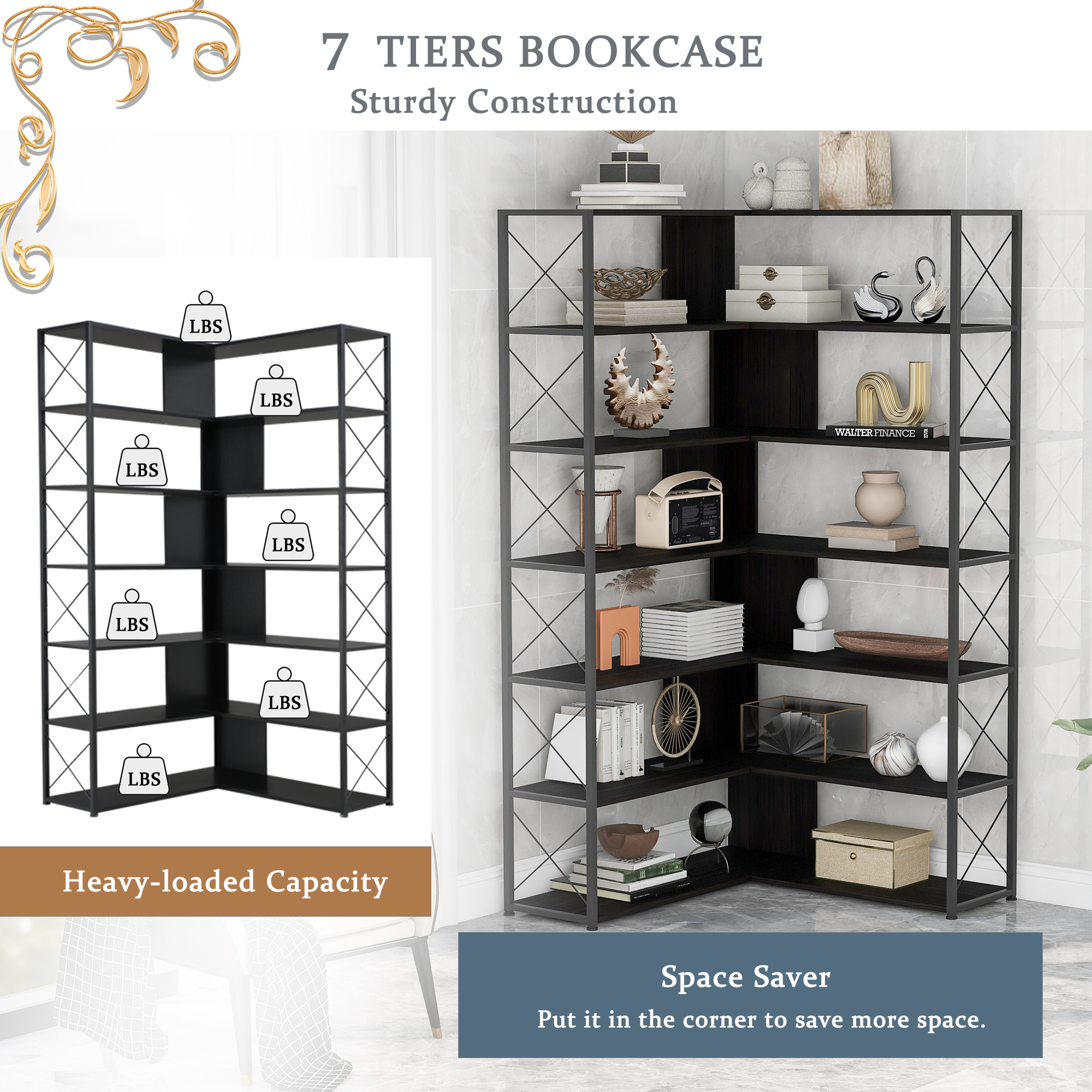 1. 7 Tier L-shaped Open Shelf