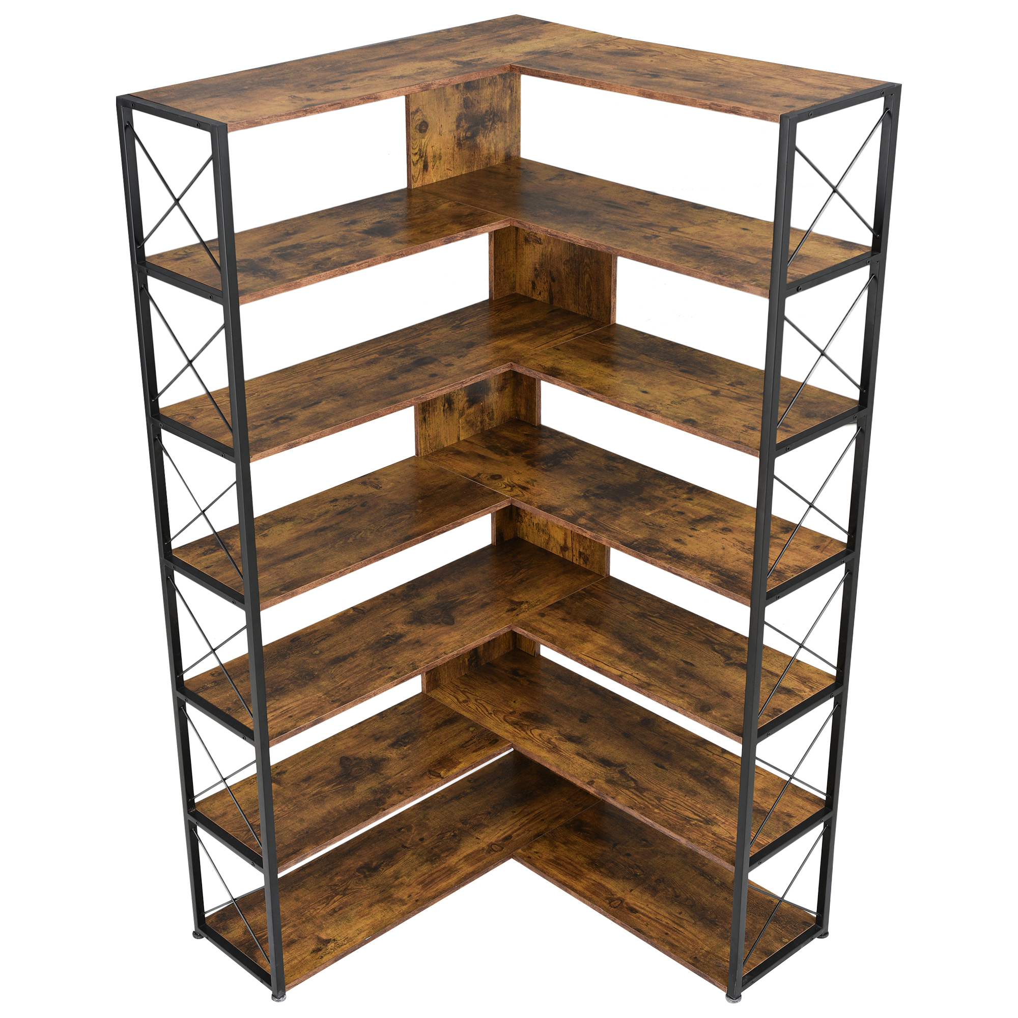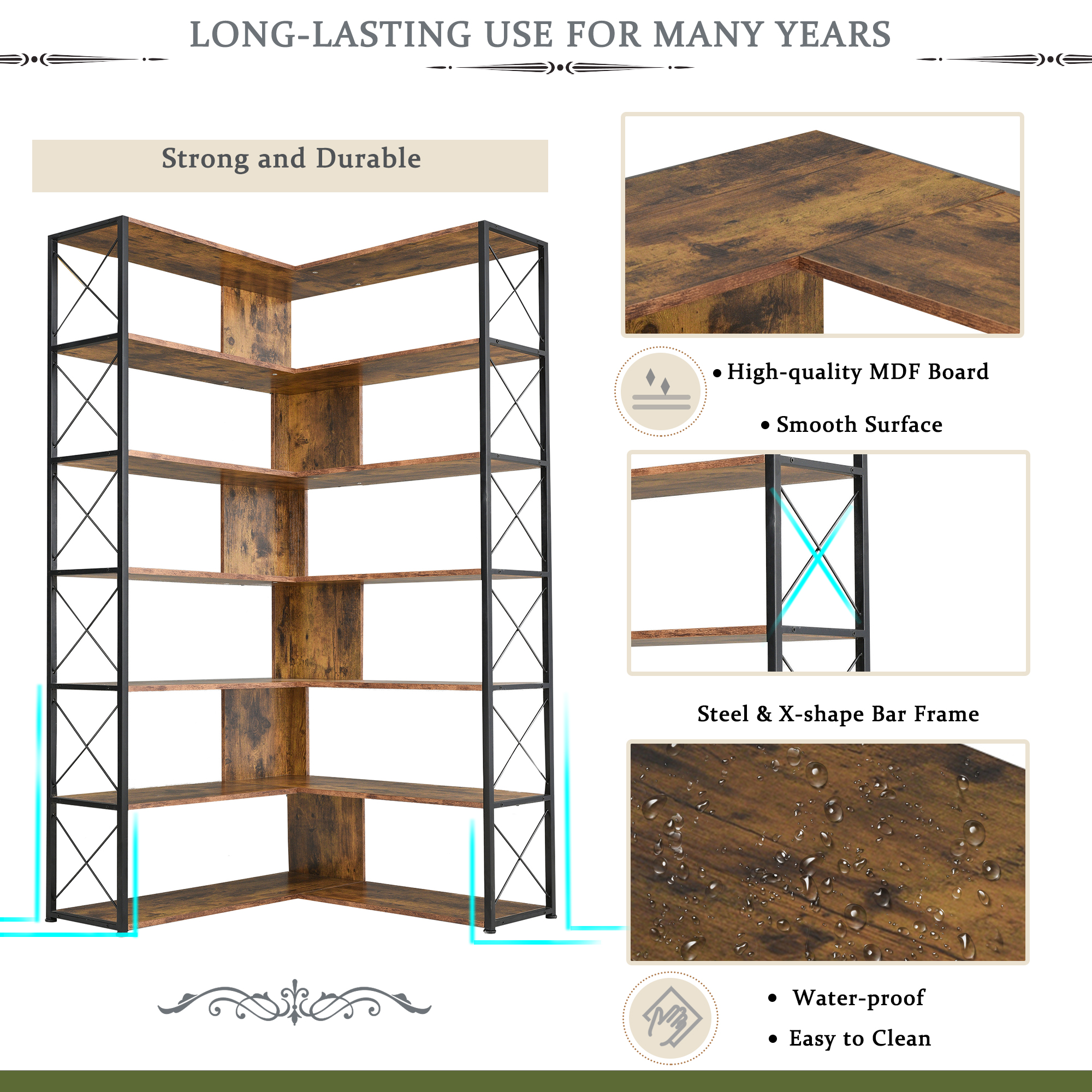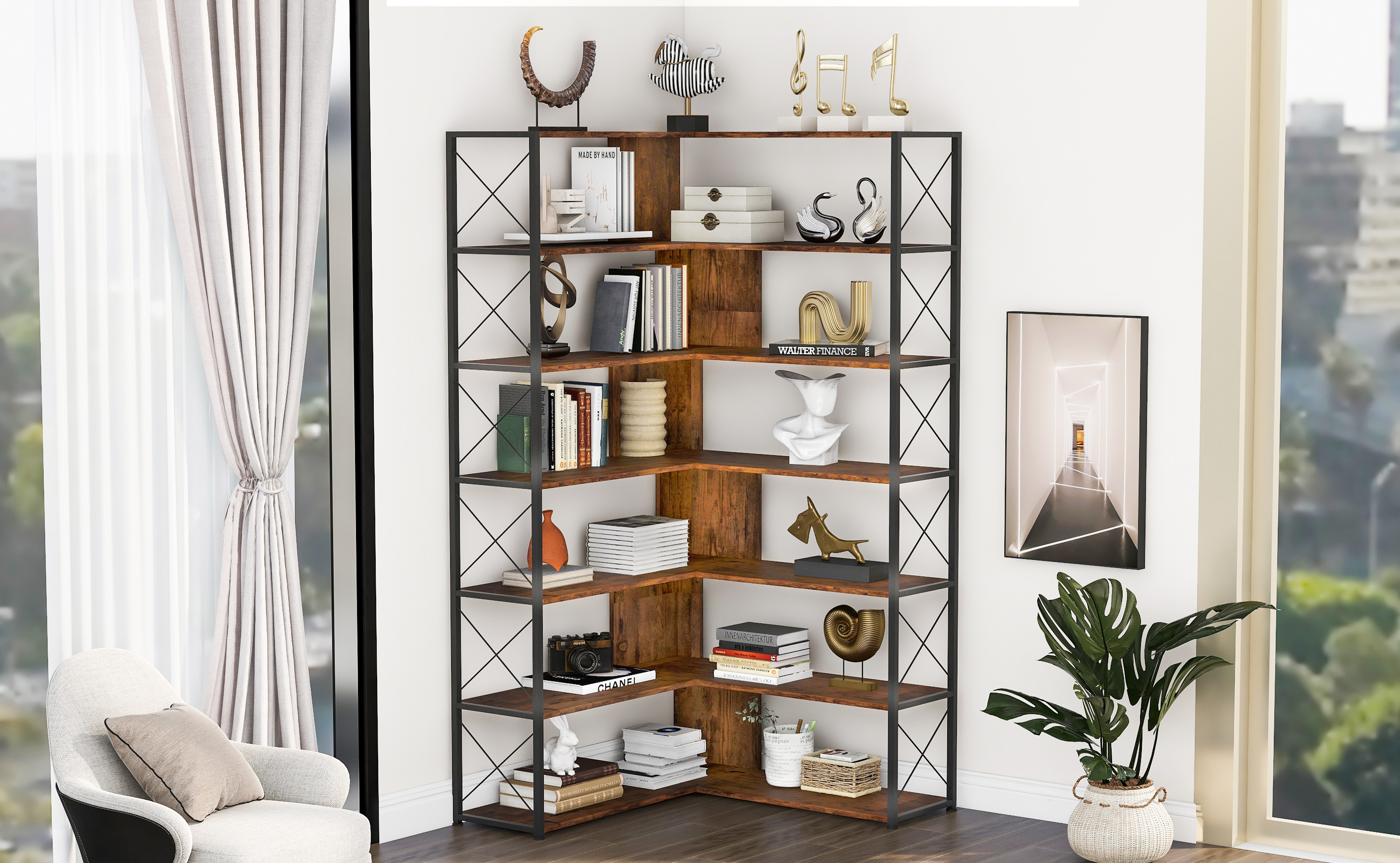 7-Tier Bookcase Home Office Bookshelf, L-Shaped Corner Bookcase
