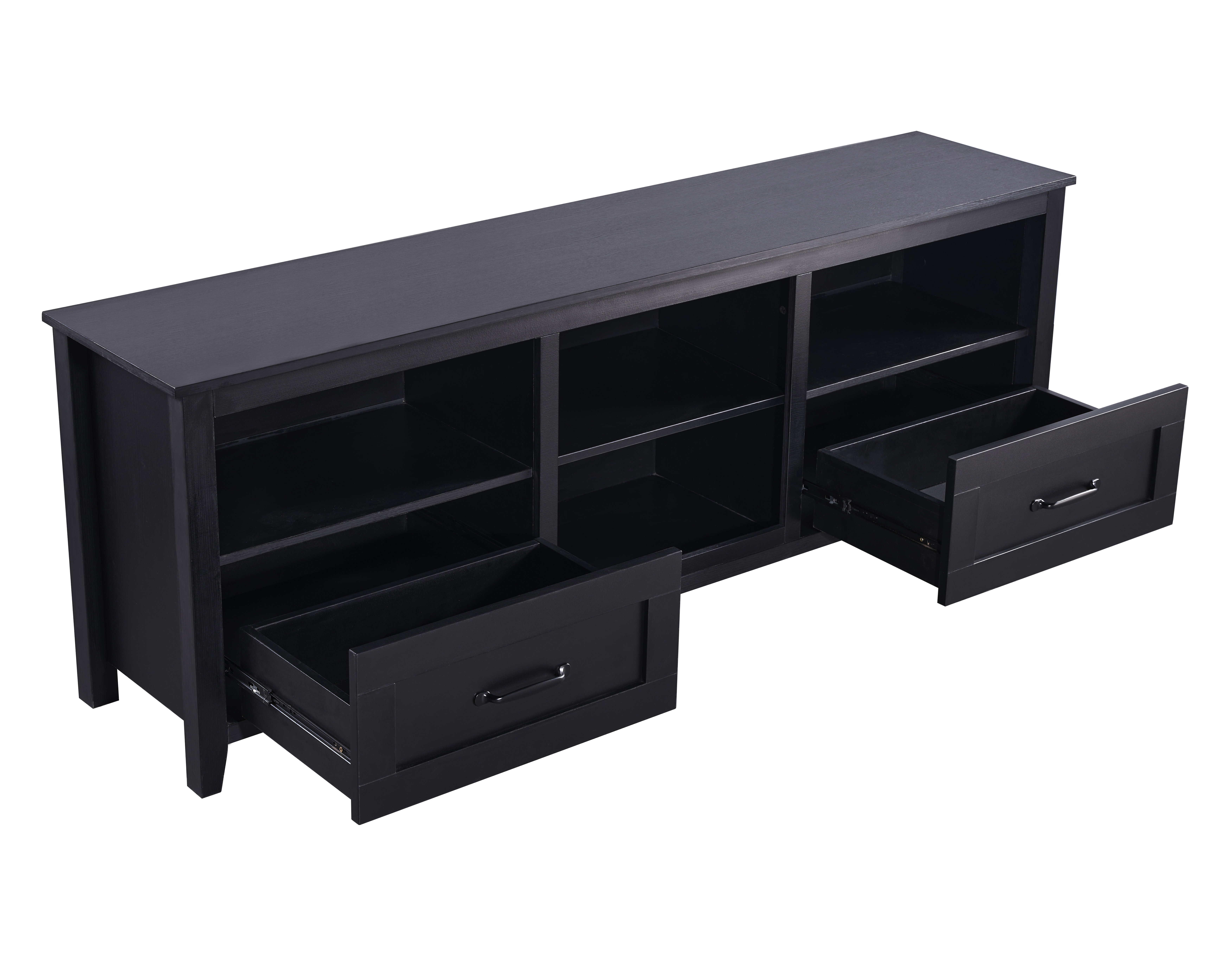 70.08 Inch Length BlackTV Stand for Living Room and Bedroom, with 2 Drawers and 4 High-CapacityStorage Compartment.