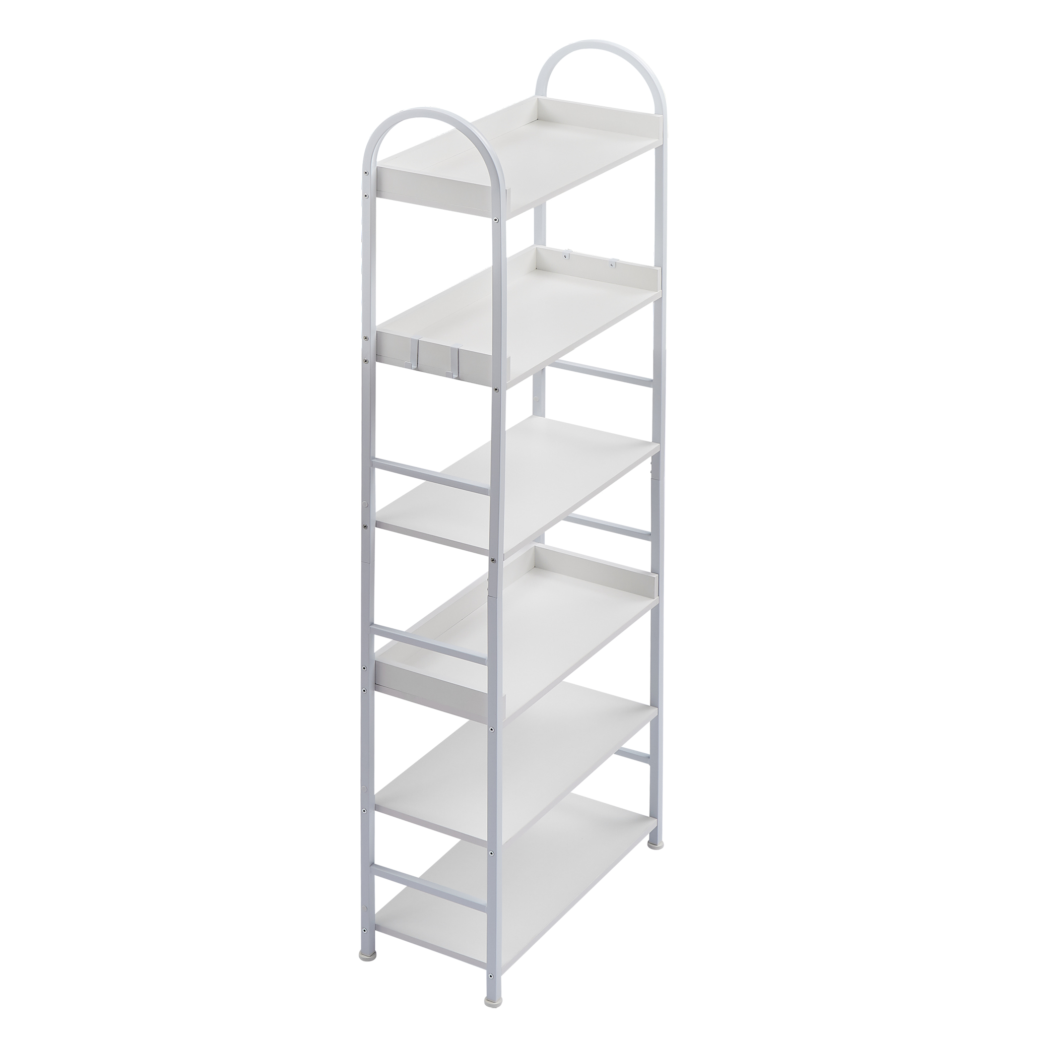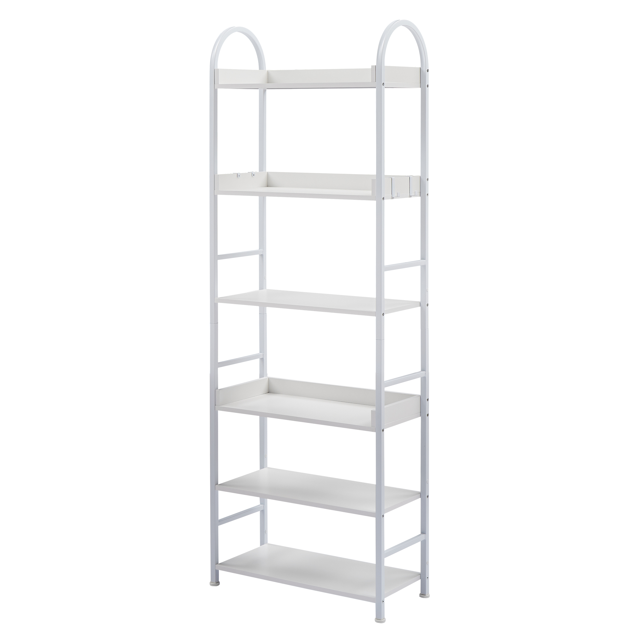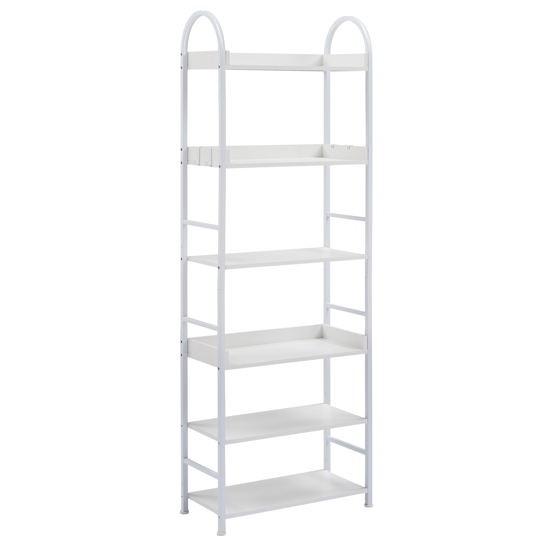 70.8-inch Tall Bookshelf, 6-tier Shelves with Round Top Frame, MDF Boards, Adjustable Foot Pads, White