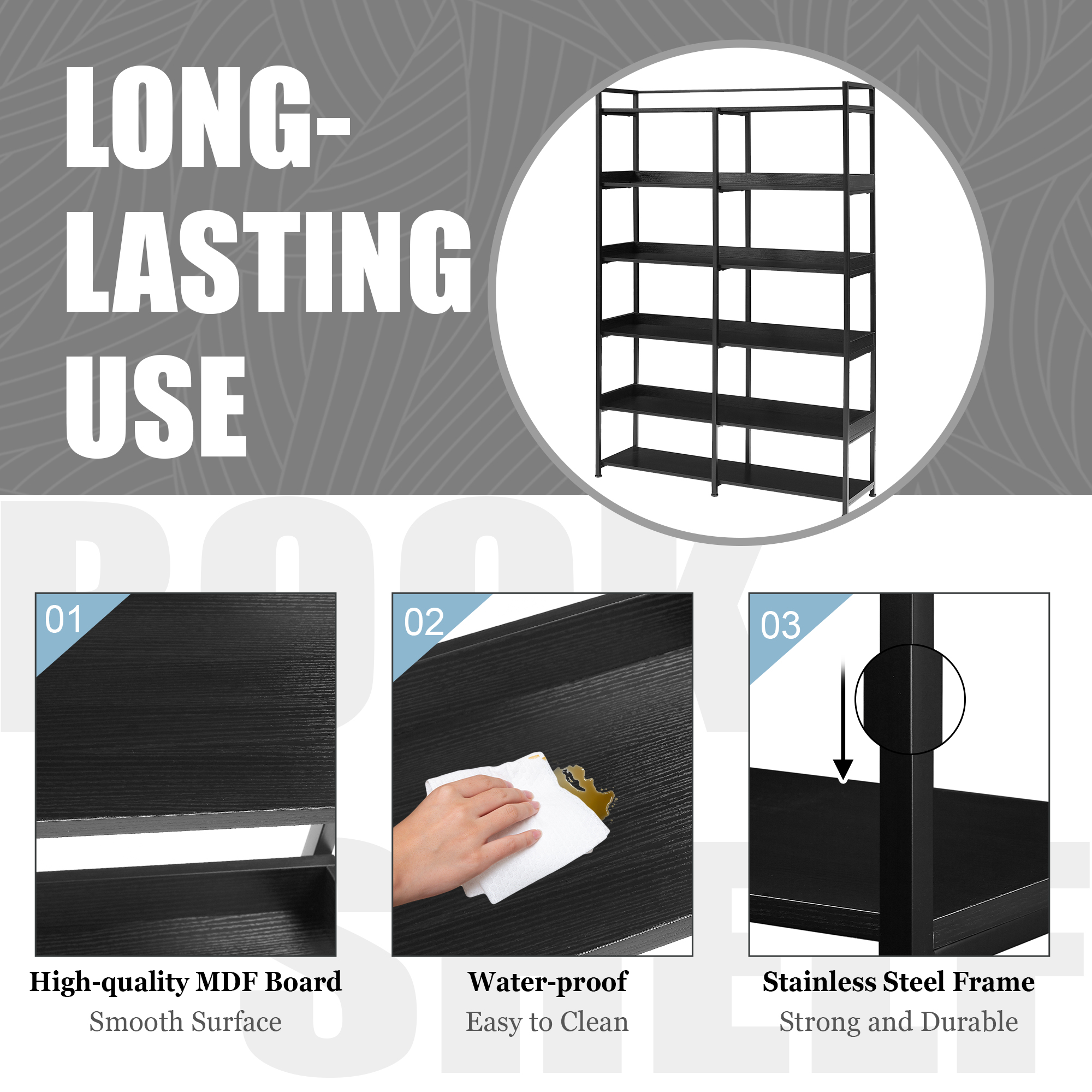The stainless steel black metal frame ensured that this bookshelf is strong and not prone to rust during long-term use, coupled with high-quality MDF boards, which guarantees stability and practicality. Besides, the surface of this bookshelf is smooth, waterproof and easy to clean, hassle-free.