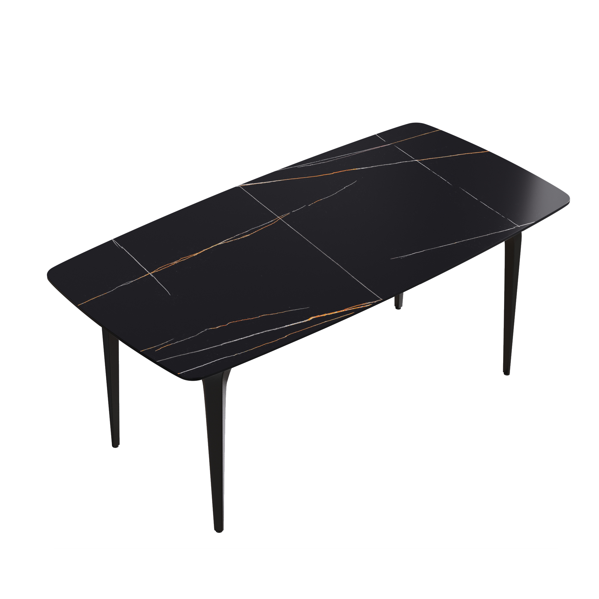 This modern and simple dining table will become the core of your dining, because it is not only the place where you hold dinner and family dinner, but also adds beauty to your space. Undoubtedly, the most striking thing about this dining table is the contrast between the bright panel and the aesthetic texture on the table top. Candlesticks can be placed on the dining table in a large space to create a romantic atmosphere for loved ones and a beautiful environment for family dinners and food ~Product description:[Black simple appearance] This rectangular dining table is made of artificial stone, and it is made into a perfect dining table with exquisite craftsmanship. It is noble and beautiful.[Spacious dining space] This panel is 70.87 inches long and can accommodate up to 6-8 people, which can make the whole family have a pleasant meal.[Rugged dining table panel & easy to clean] Rugged tabletop is another selling point. The 12mm thick desktop is made of sintered stone, which is heated and pressed into a blade shape, providing you with a desktop that can be used for many years. This material can prevent burns, stains and scratches, and has the characteristics of heat resistance, fire resistance and antifouling.[Stable base] This dining table is designed with four legs, and each leg has a contact surface, which has high stability.Product advantages:[Anti-fouling & easy cleaning] Extremely low water permeability can make oil or liquid impermeable, and the desktop can be kept clean only by wiping.[Fire resistance and high temperature resistance] When in direct contact with high-temperature objects or flames, it will not deform, crack or emit gas or odor.[Using natural materials] Natural materials do not release harmful substances, and are 100% recyclable. No radiation, direct contact with food.[High hardness] The 12mm thick panel has high hardness, leaving no trace whether it is knocked or cut with a knife.Warm tip:During the processing of natural materials, there will be subtle changes in color tone, surface texture and texture, and there will be subtle differences with pictures, which is a normal phenomenon. Natural changes are not regarded as product defects.