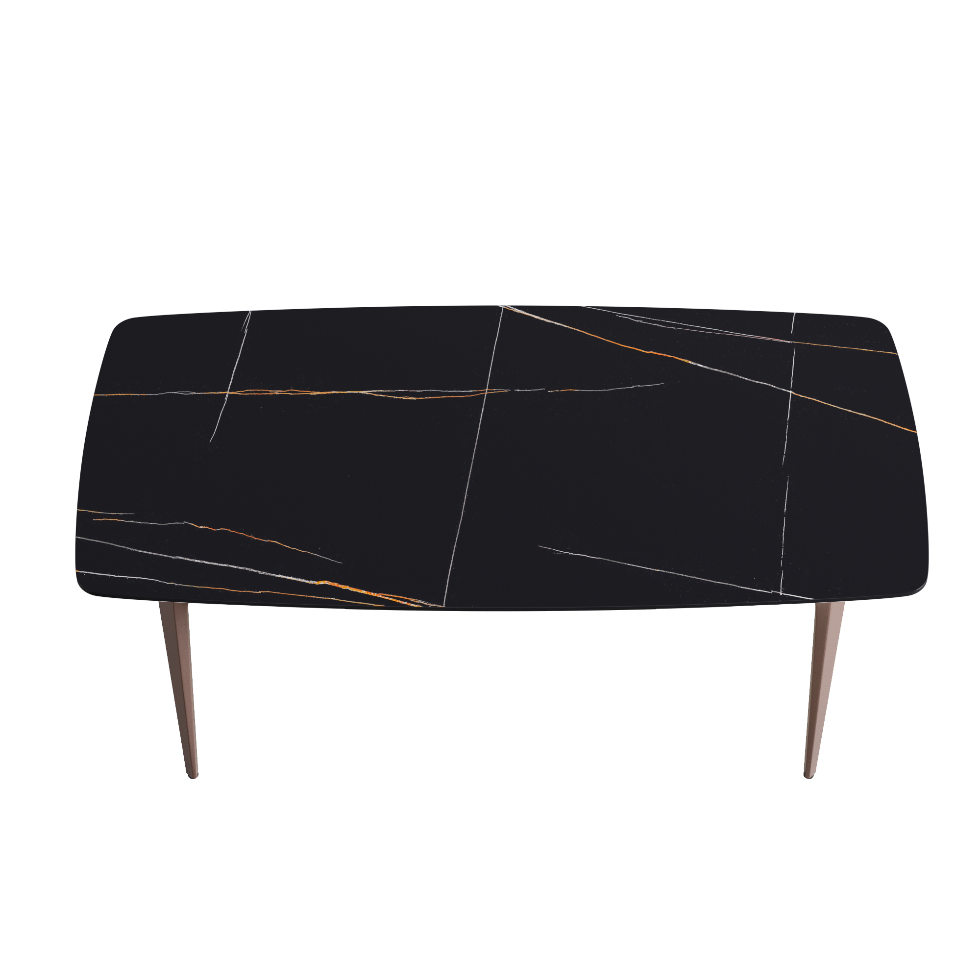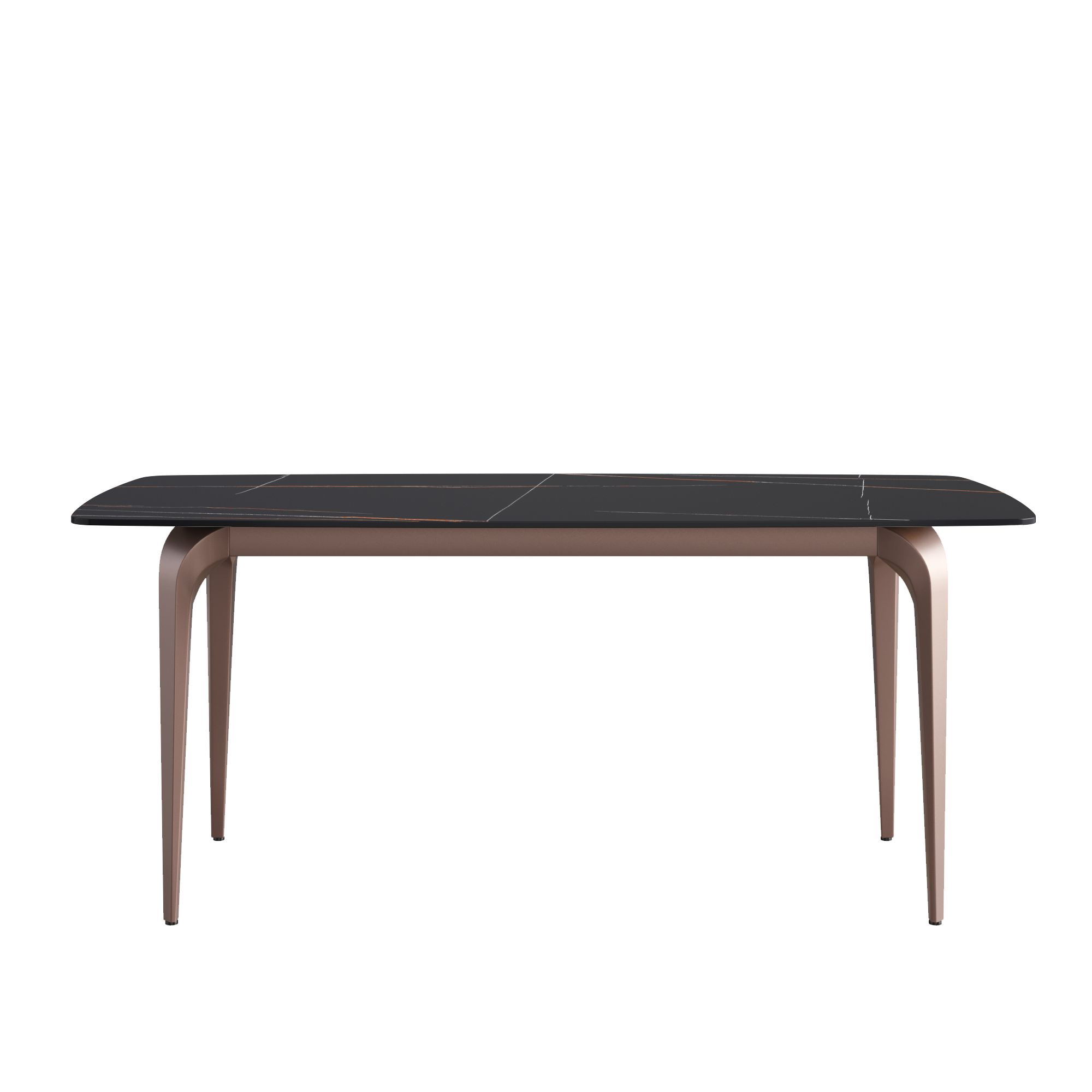This modern and simple dining table will become the core of your dining, because it is not only the place where you hold dinner and family dinner, but also adds beauty to your space. Undoubtedly, the most striking thing about this dining table is the contrast between the bright panel and the aesthetic texture on the table top. Candlesticks can be placed on the dining table in a large space to create a romantic atmosphere for loved ones and a beautiful environment for family dinners and food ~Product description:[Black simple appearance] This rectangular dining table is made of artificial stone, and it is made into a perfect dining table with exquisite craftsmanship. It is noble and beautiful.[Spacious dining space] This panel is 70.87 inches long and can accommodate up to 6-8 people, which can make the whole family have a pleasant meal.[Rugged dining table panel & easy to clean] Rugged tabletop is another selling point. The 12mm thick desktop is made of sintered stone, which is heated and pressed into a blade shape, providing you with a desktop that can be used for many years. This material can prevent burns, stains and scratches, and has the characteristics of heat resistance, fire resistance and antifouling.[Stable base] This dining table is designed with four legs, and each leg has a contact surface, which has high stability.Product advantages:[Anti-fouling & easy cleaning] Extremely low water permeability can make oil or liquid impermeable, and the desktop can be kept clean only by wiping.[Fire resistance and high temperature resistance] When in direct contact with high-temperature objects or flames, it will not deform, crack or emit gas or odor.[Using natural materials] Natural materials do not release harmful substances, and are 100% recyclable. No radiation, direct contact with food.[High hardness] The 12mm thick panel has high hardness, leaving no trace whether it is knocked or cut with a knife.Warm tip:During the processing of natural materials, there will be subtle changes in color tone, surface texture and texture, and there will be subtle differences with pictures, which is a normal phenomenon. Natural changes are not regarded as product defects.