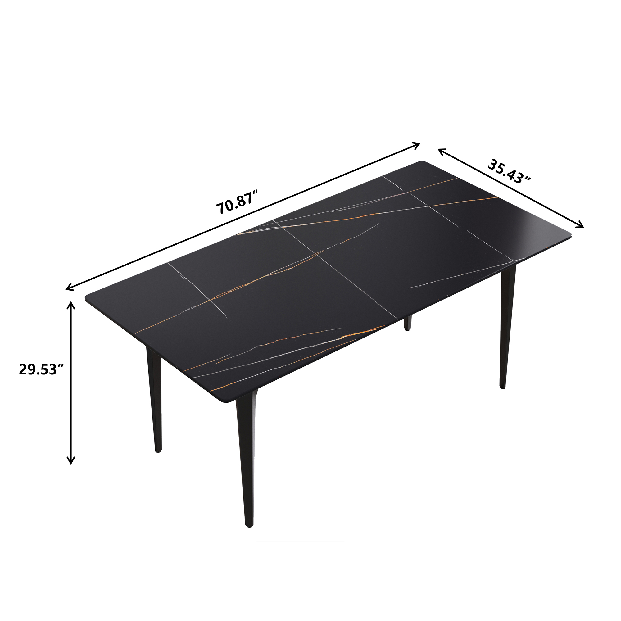 70.87" modern artificial stone black straight edge black metal leg dining table-can accommodate 6-8 people