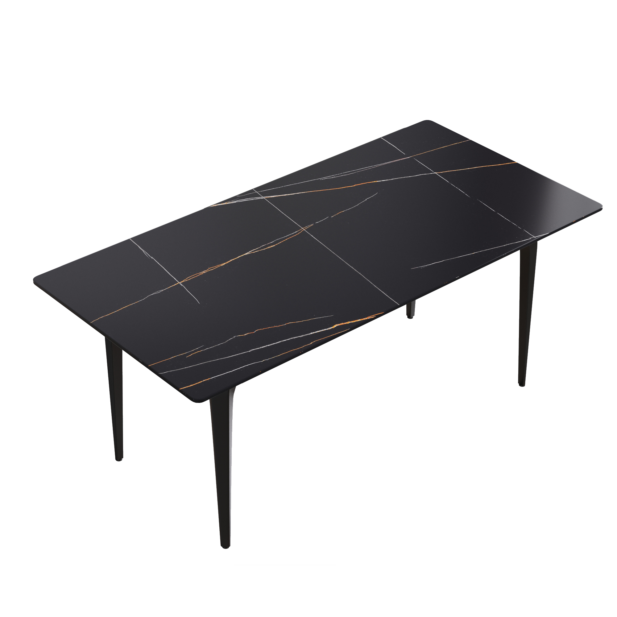 This modern and simple dining table will become the core of your dining, because it is not only the place where you hold dinner and family dinner, but also adds beauty to your space. Undoubtedly, the most striking thing about this dining table is the contrast between the snow-white panel and the aesthetic texture on the table top. Candlesticks can be placed on the dining table in a large space to create a romantic atmosphere for loved ones and a beautiful environment for family dinners and food ~Product description:[Black simple appearance] This rectangular dining table is made of artificial stone, which is made into a perfect dining table with exquisite craftsmanship and can accommodate 6-8 people.[Strong dining table panel & easy to clean] The table top is one of the strongest surfaces. The 12mm thick desktop is made of sintered stone, which is heated and pressed into a blade shape, providing you with a desktop that can be used for many years. This material can prevent burns, stains and scratches, and has the characteristics of heat resistance, fire resistance and antifouling.[Stable base] This dining table is designed with four legs, and each leg has a contact surface, which has high stability.Product advantages:[Anti-fouling & easy cleaning] Extremely low water permeability can make oil or liquid impermeable, and the desktop can be kept clean only by wiping.[Fire resistance and high temperature resistance] When in direct contact with high-temperature objects or flames, it will not deform, crack or emit gas or odor.[Using natural materials] Natural materials do not release harmful substances, and are 100% recyclable. No radiation, direct contact with food.[High hardness] The 12mm thick panel has high hardness, leaving no trace whether it is knocked or cut with a knife.Warm tip:During the processing of natural materials, there will be subtle changes in color tone, surface texture and texture, and there will be subtle differences with pictures, which is a normal phenomenon. Natural changes are not regarded as product defects.