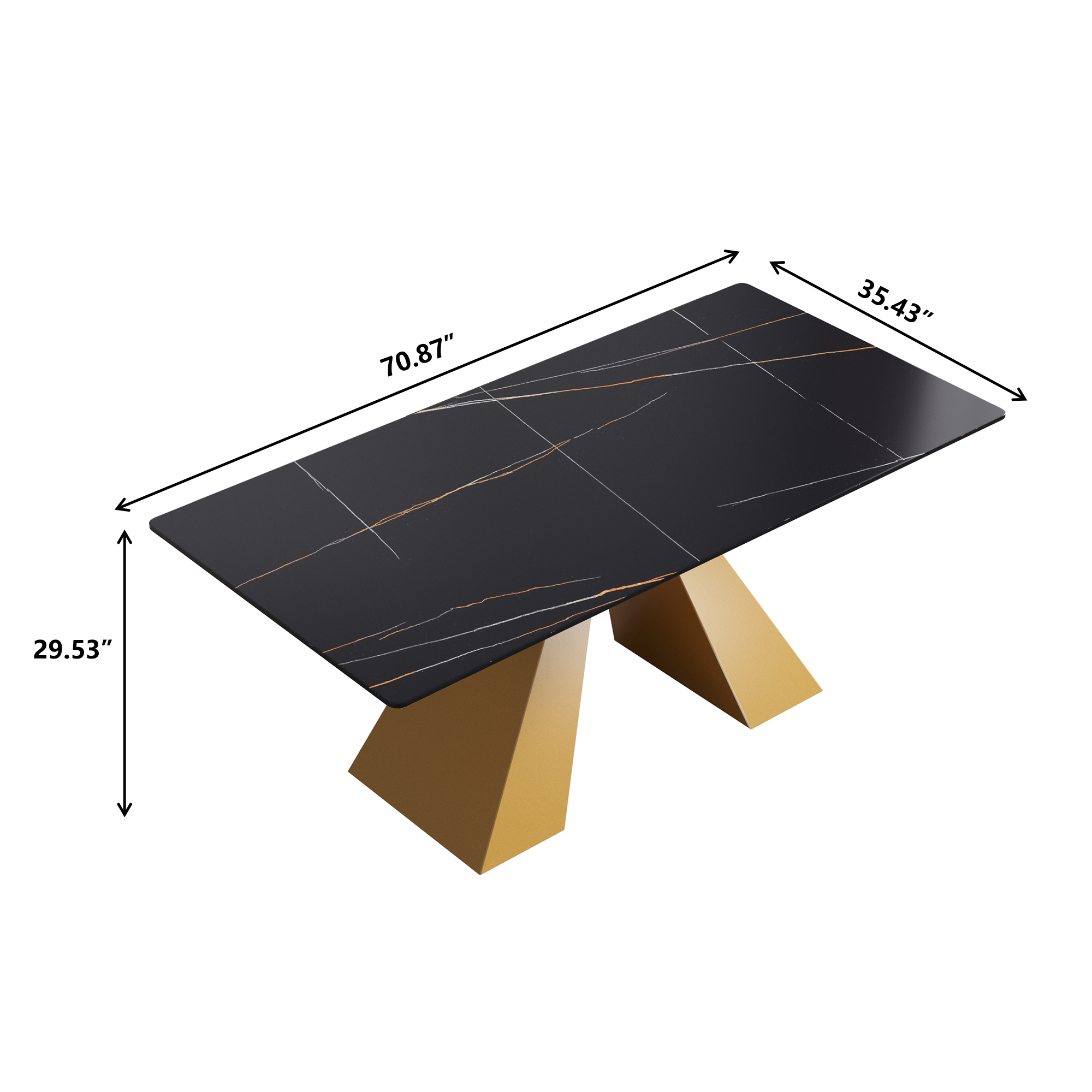 70.87" modern artificial stone black straight edge golden metal leg dining table-can accommodate 6-8 people
