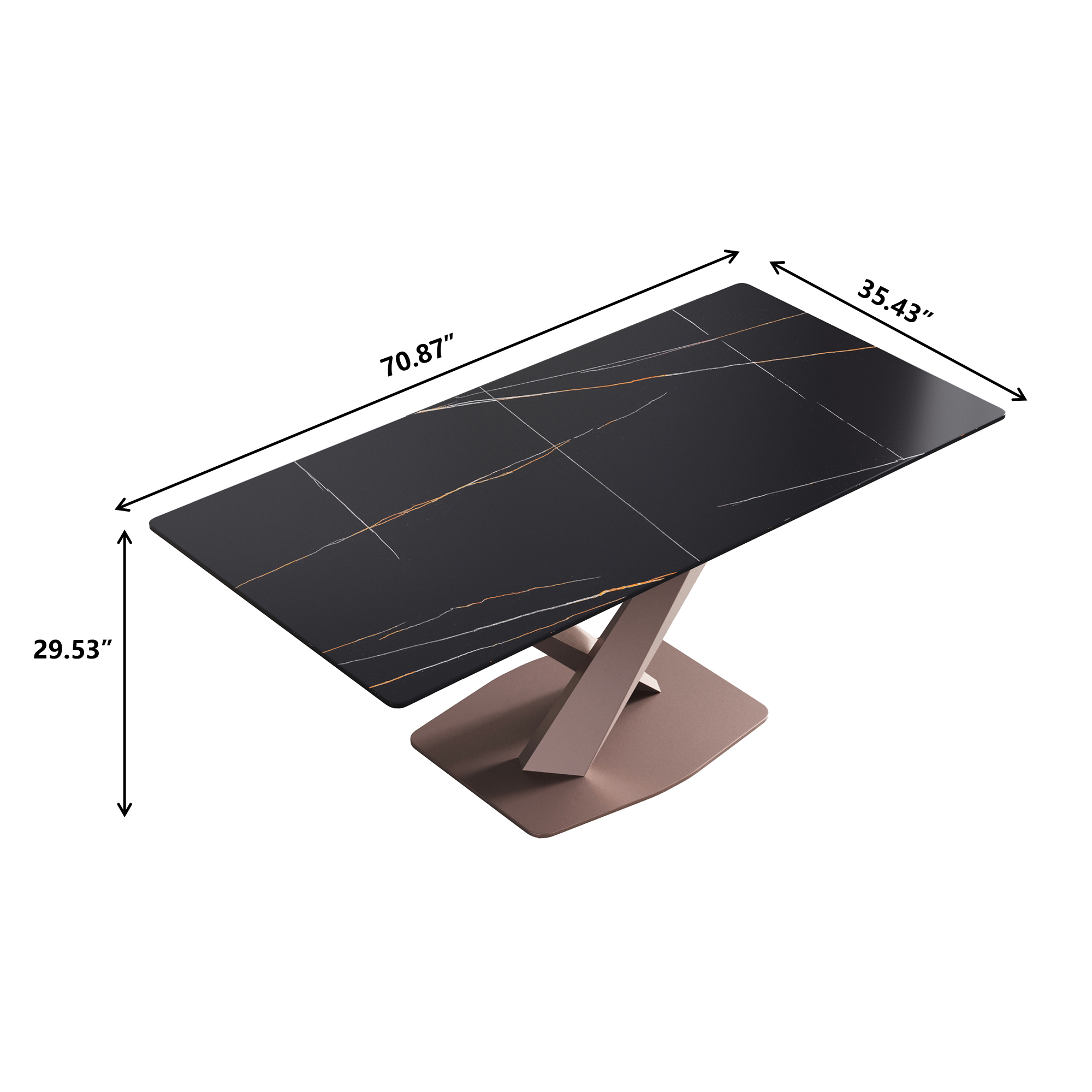 70.87" modern artificial stone black straight edge metal leg dining table-can accommodate 6-8 people