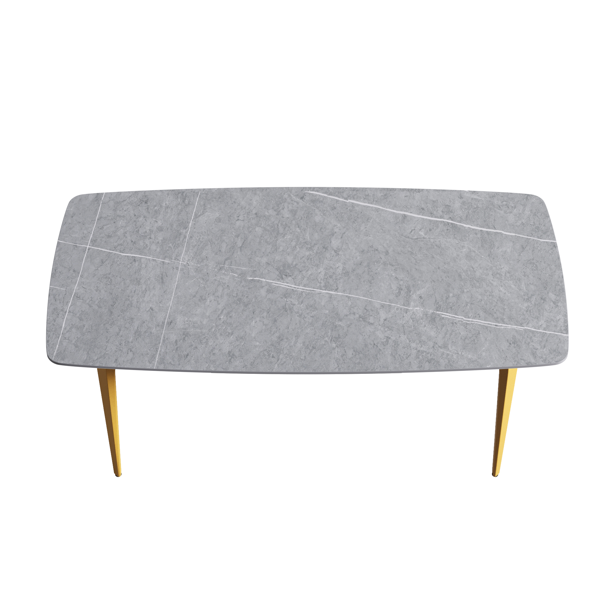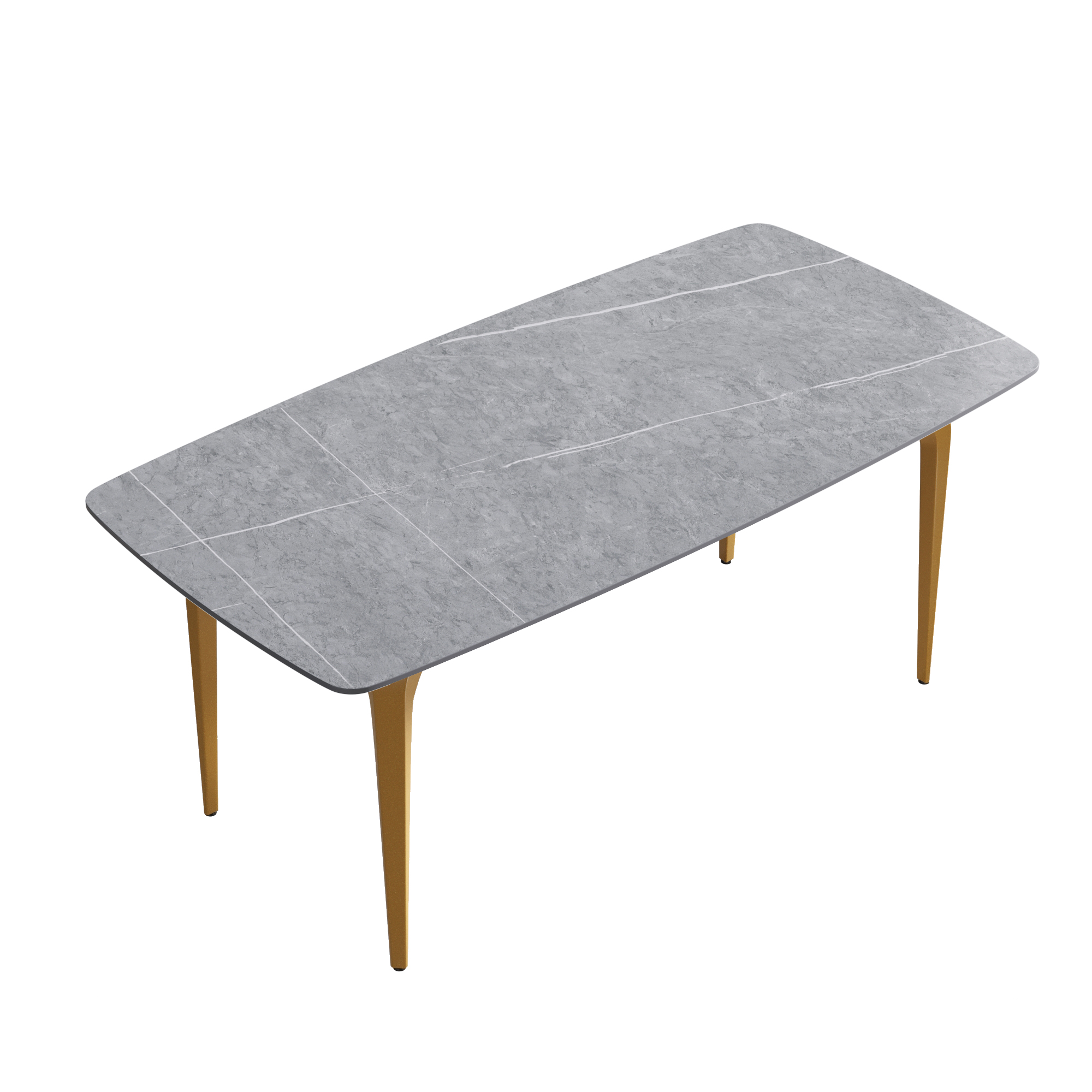 This modern and simple dining table will become the core of your dining, because it is not only the place where you hold dinner and family dinner, but also adds beauty to your space. Undoubtedly, the most striking thing about this dining table is the contrast between the bright panel and the aesthetic texture on the table top. Candlesticks can be placed on the dining table in a large space to create a romantic atmosphere for loved ones and a beautiful environment for family dinners and food ~Product description:[Grey simple appearance] This rectangular dining table is made of artificial stone, and it is made into a perfect dining table with exquisite craftsmanship. It is noble and beautiful.[Spacious dining space] This panel is 70.87 inches long and can accommodate up to 6-8 people, which can make the whole family have a pleasant meal.[Rugged dining table panel & easy to clean] Rugged tabletop is another selling point. The 12mm thick desktop is made of sintered stone, which is heated and pressed into a blade shape, providing you with a desktop that can be used for many years. This material can prevent burns, stains and scratches, and has the characteristics of heat resistance, fire resistance and antifouling.[Stable base] This dining table is designed with four legs, and each leg has a contact surface, which has high stability.Product advantages:[Anti-fouling & easy cleaning] Extremely low water permeability can make oil or liquid impermeable, and the desktop can be kept clean only by wiping.[Fire resistance and high temperature resistance] When in direct contact with high-temperature objects or flames, it will not deform, crack or emit gas or odor.[Using natural materials] Natural materials do not release harmful substances, and are 100% recyclable. No radiation, direct contact with food.[High hardness] The 12mm thick panel has high hardness, leaving no trace whether it is knocked or cut with a knife.Warm tip:During the processing of natural materials, there will be subtle changes in color tone, surface texture and texture, and there will be subtle differences with pictures, which is a normal phenomenon. Natural changes are not regarded as product defects.