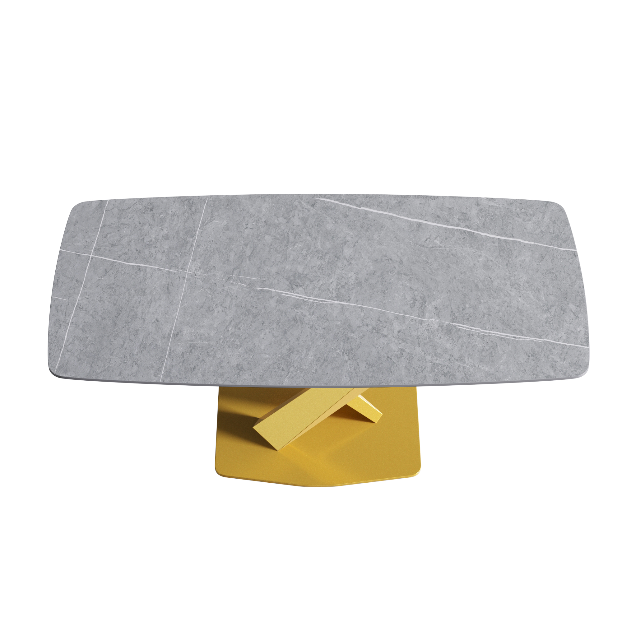 70.87"Modern artificial stone gray curved golden metal leg dining table-can accommodate 6-8 people