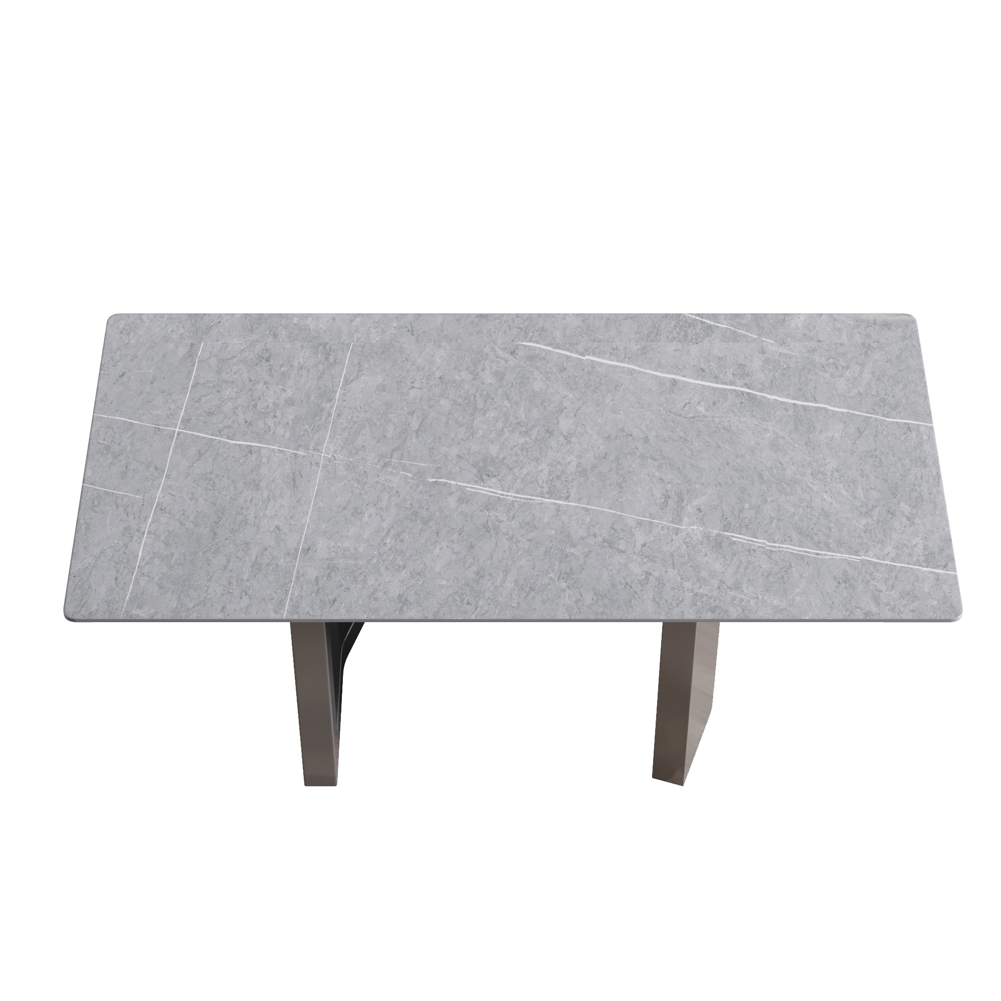 This modern and simple dining table will become the core of your dining, because it is not only the place where you hold dinner and family dinner, but also adds beauty to your space. Undoubtedly, the most striking thing about this dining table is the contrast between the bright panel and the aesthetic texture on the table top. Candlesticks can be placed on the dining table in a large space to create a romantic atmosphere for loved ones and a beautiful environment for family dinners and food ~Product description:[Gray simple appearance] This rectangular dining table is made of artificial stone, and it is made into a perfect dining table with exquisite craftsmanship. It is noble and beautiful.[Spacious dining space] This panel is 70.87 inches long and can accommodate up to 6-8 people, which can make the whole family have a pleasant meal.[Rugged dining table panel & easy to clean] Rugged tabletop is another selling point. The 12mm thick desktop is made of sintered stone, which is heated and pressed into a blade shape, providing you with a desktop that can be used for many years. This material can prevent burns, stains and scratches, and has the characteristics of heat resistance, fire resistance and antifouling.