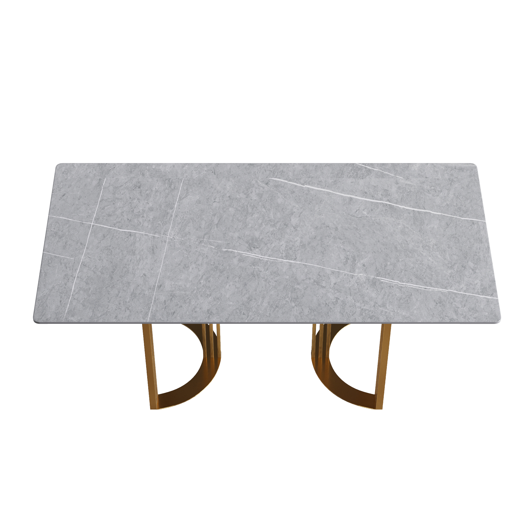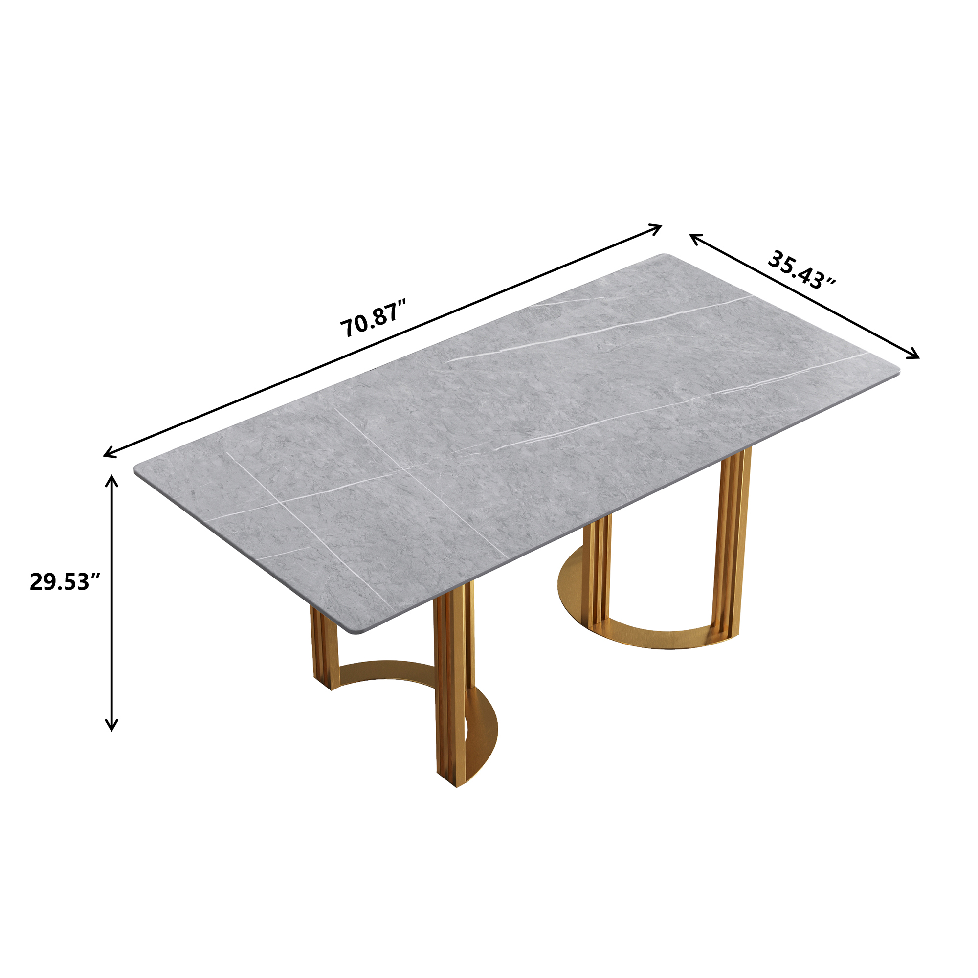 70.87" modern artificial stone gray straight edge golden metal leg dining table-can accommodate 6-8 people