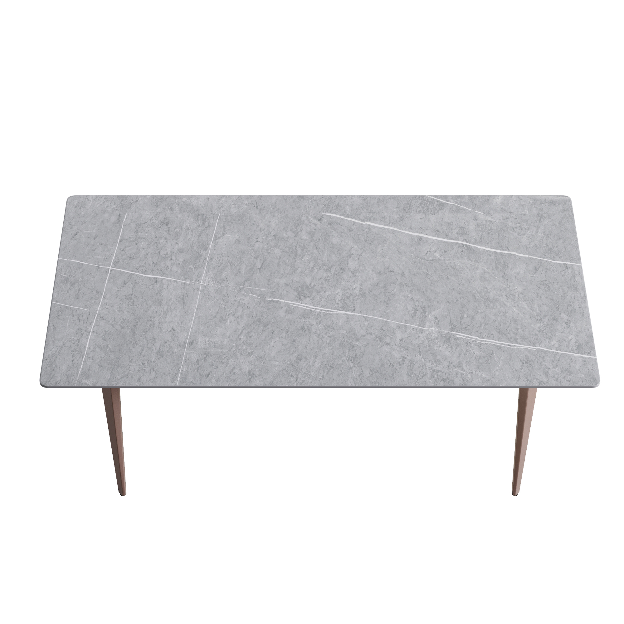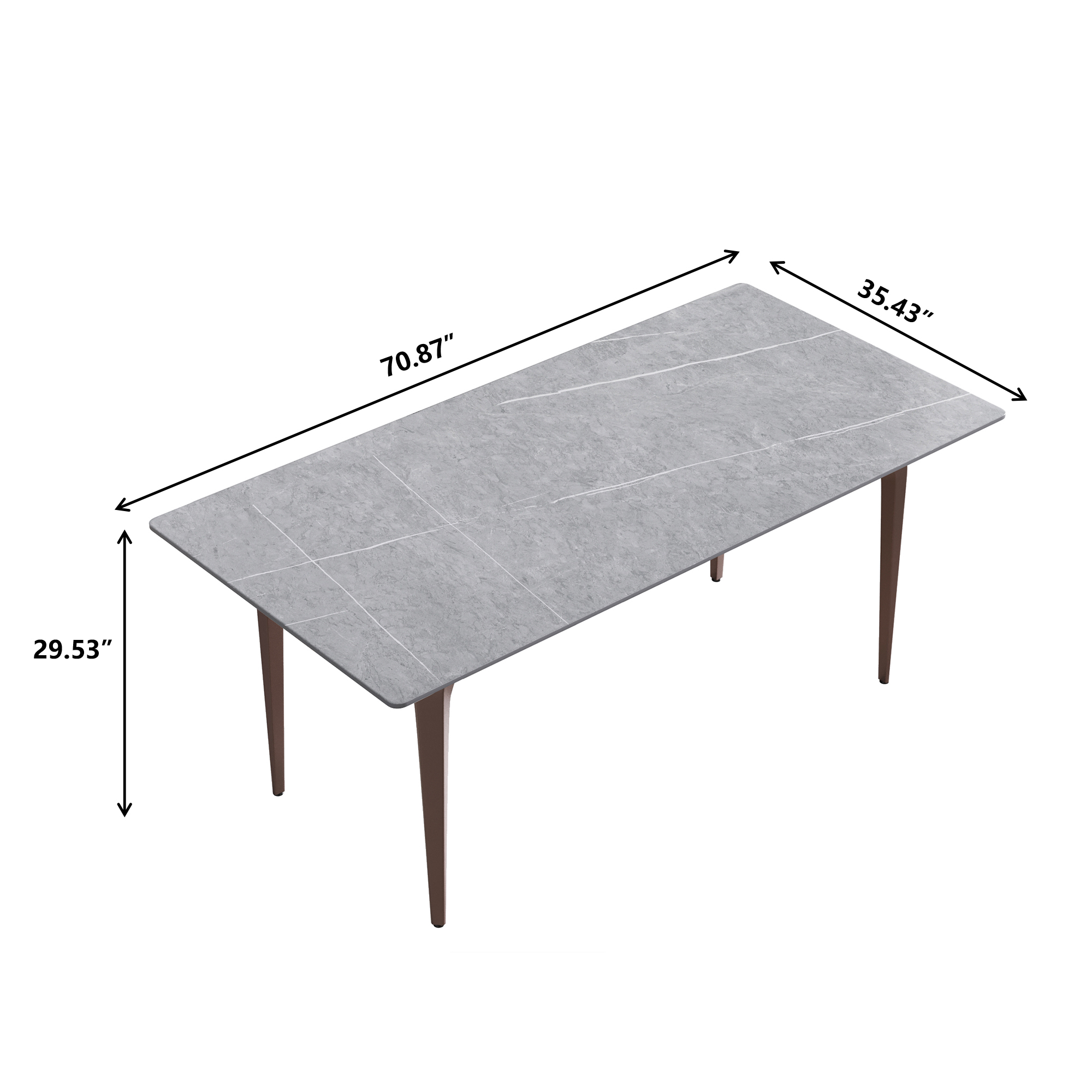 70.87" modern artificial stone gray straight edge metal leg dining table-can accommodate 6-8 people