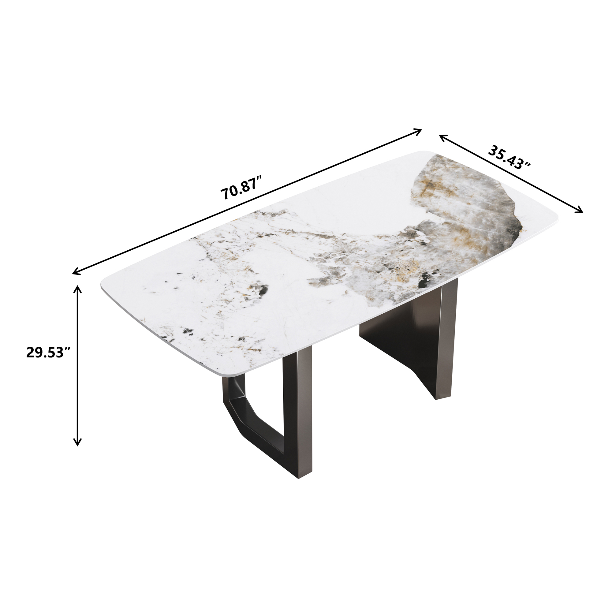70.87"Modern artificial stone Pandora white curved black metal leg dining table-can accommodate 6-8 people