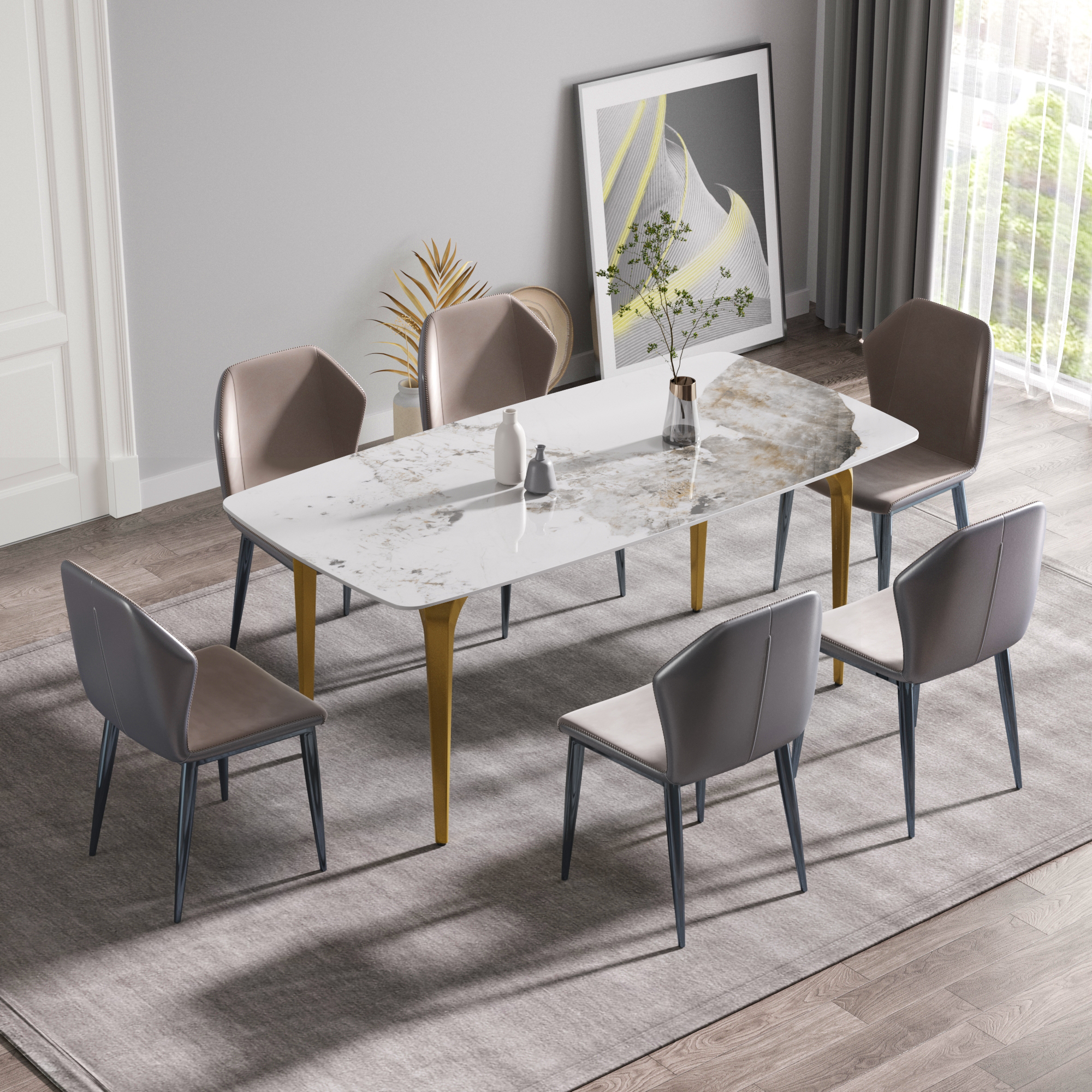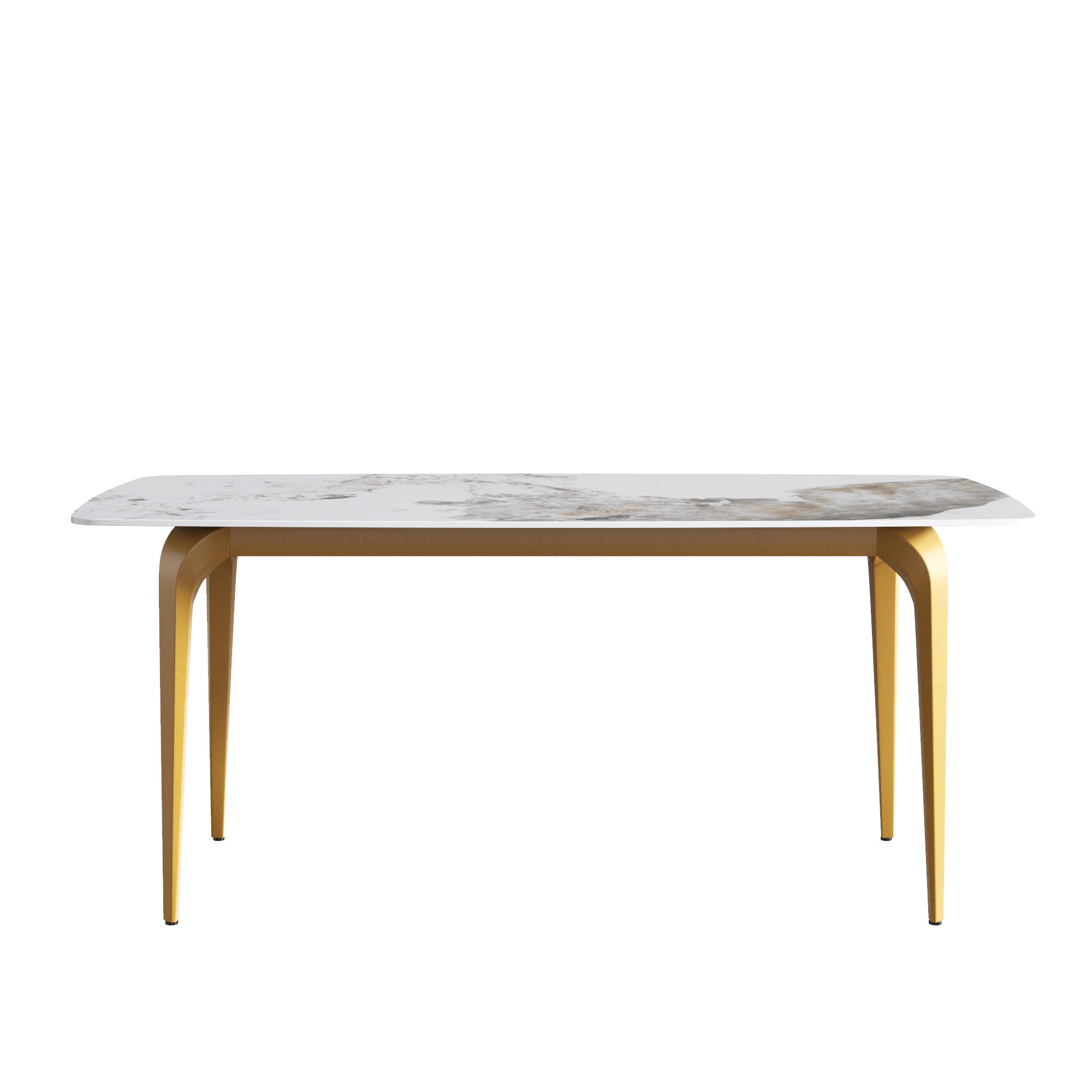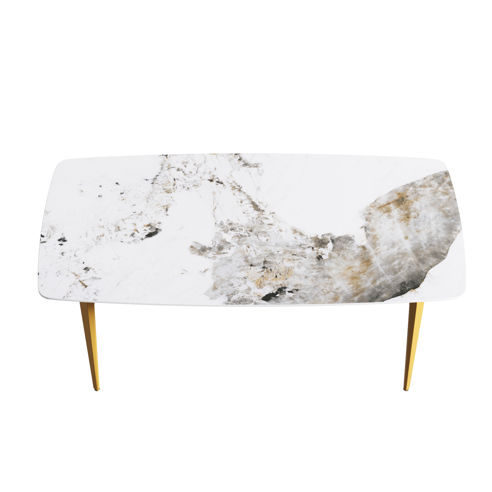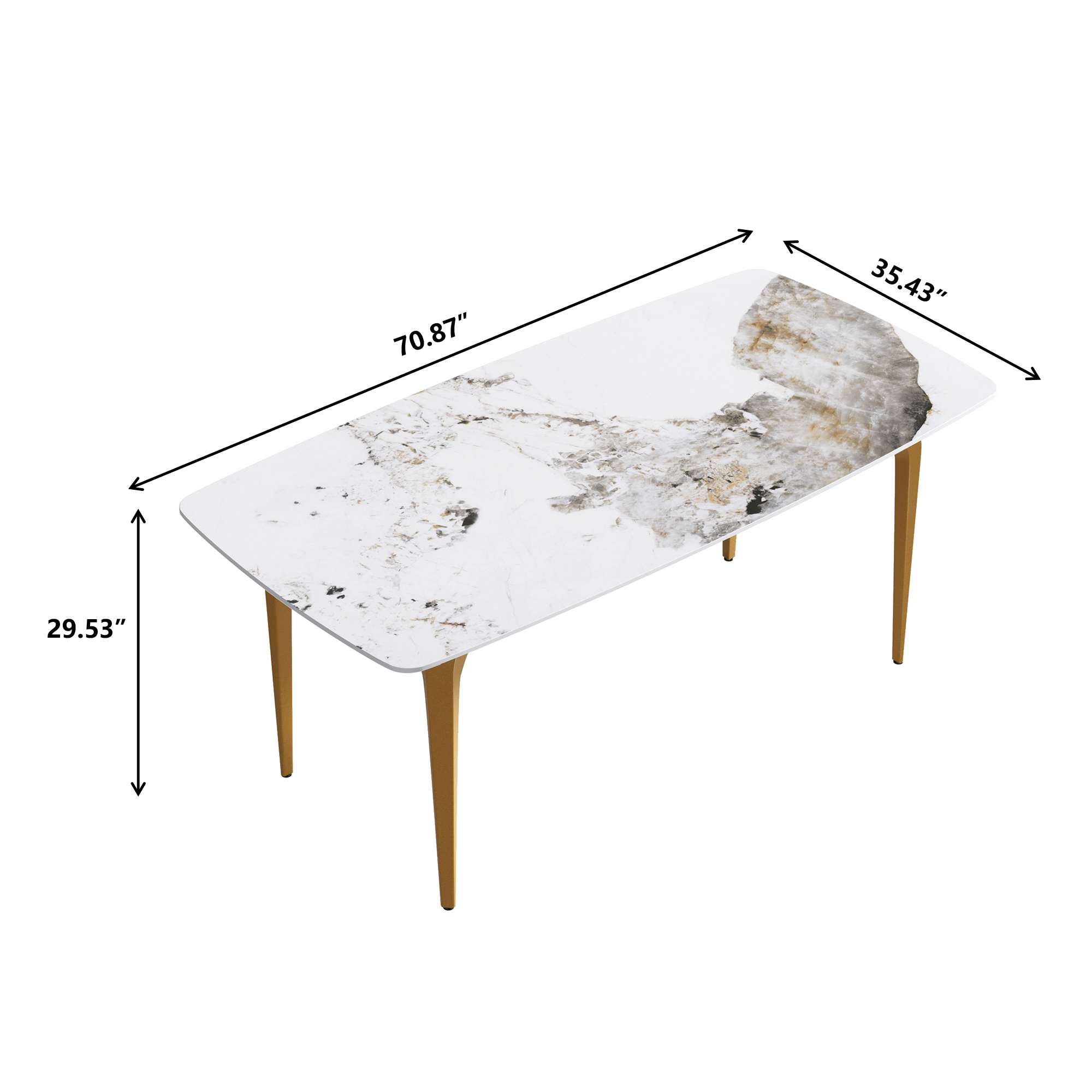 70.87"Modern artificial stone Pandora white curved golden metal leg dining table-can accommodate 6-8 people