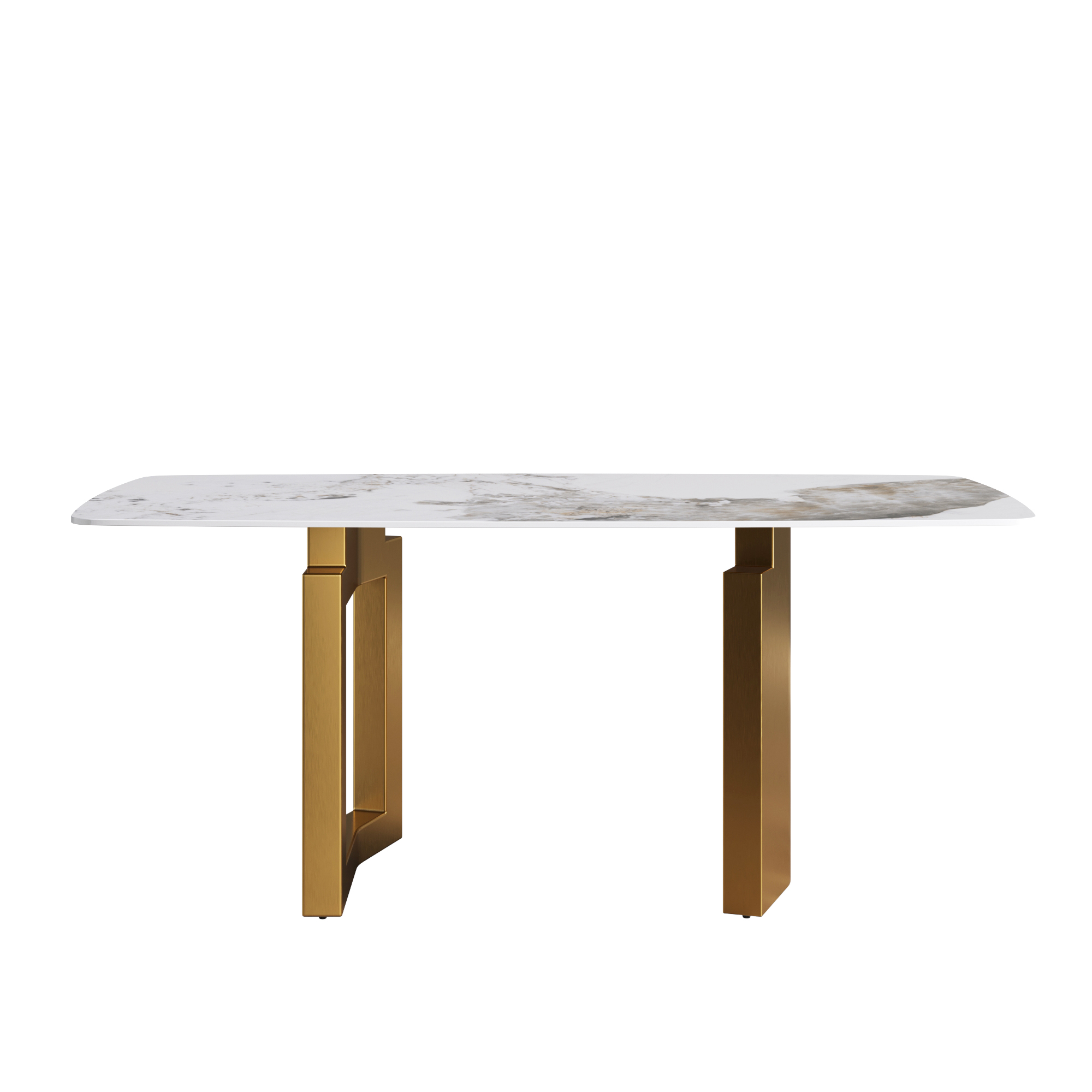 70.87"Modern artificial stone Pandora white curved golden metal leg dining table-can accommodate 6-8 people