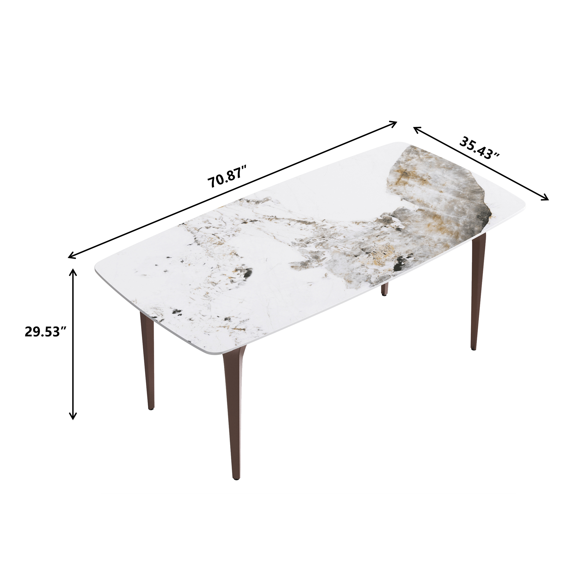 70.87"Modern artificial stone Pandora white curved metal leg dining table-can accommodate 6-8 people