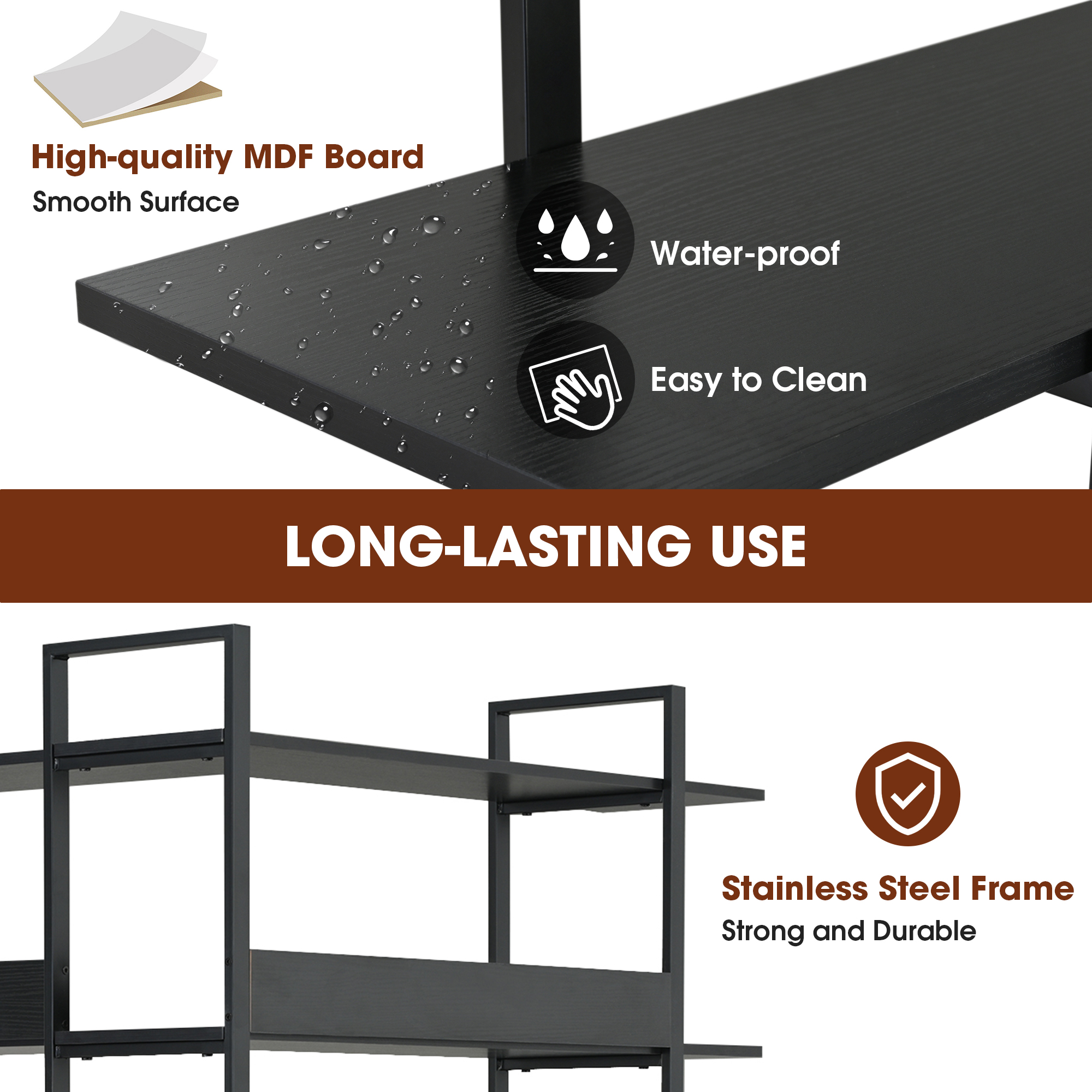 The stainless steel black metal frame ensured that this bookshelf is strong and not prone to rust during long-term use, coupled with high-quality MDF boards, which guarantees stability and practicality. Besides, the surface of this bookshelf is smooth, waterproof, and easy to clean.