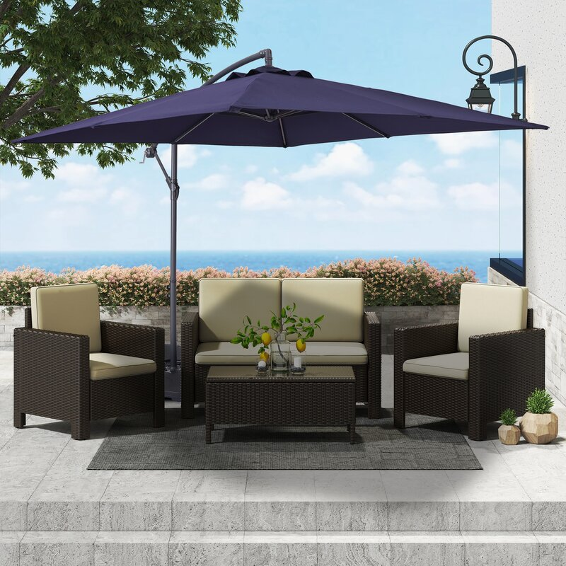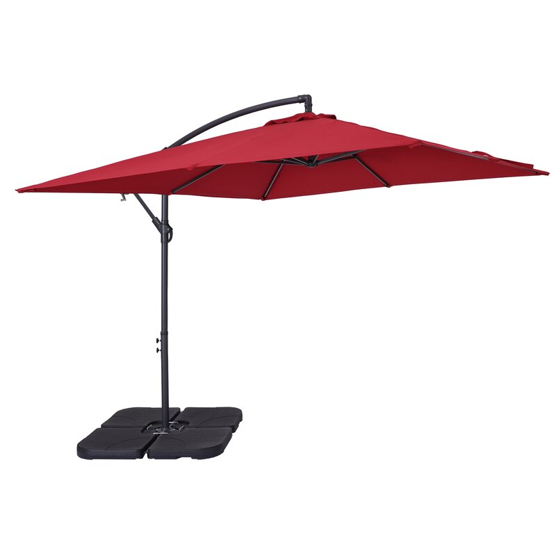 Our beautiful patio cantilever umbrella enables you to enjoy an outdoor relaxing time in the hot summer with great shade. Made of solid and durable iron and aluminum parts, this outdoor offset umbrella can adapt to the harsh outdoor climate. The canopy which is made of durable solution-dyed fabrics is waterproof and UV resistant. It's perfect for gardens, balconies, decks, swimming pools, or cafes.