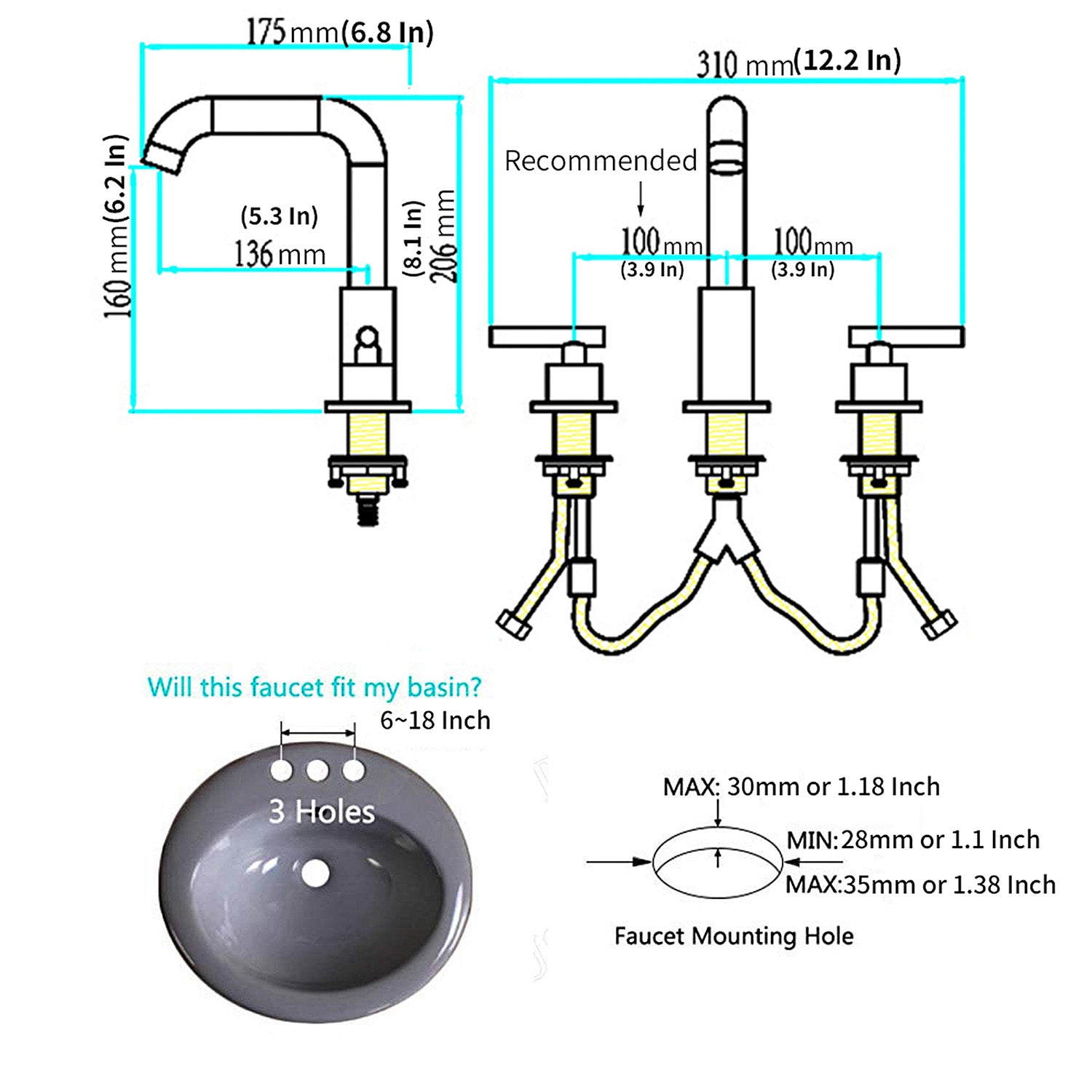 Faucet Hole Fit: 3