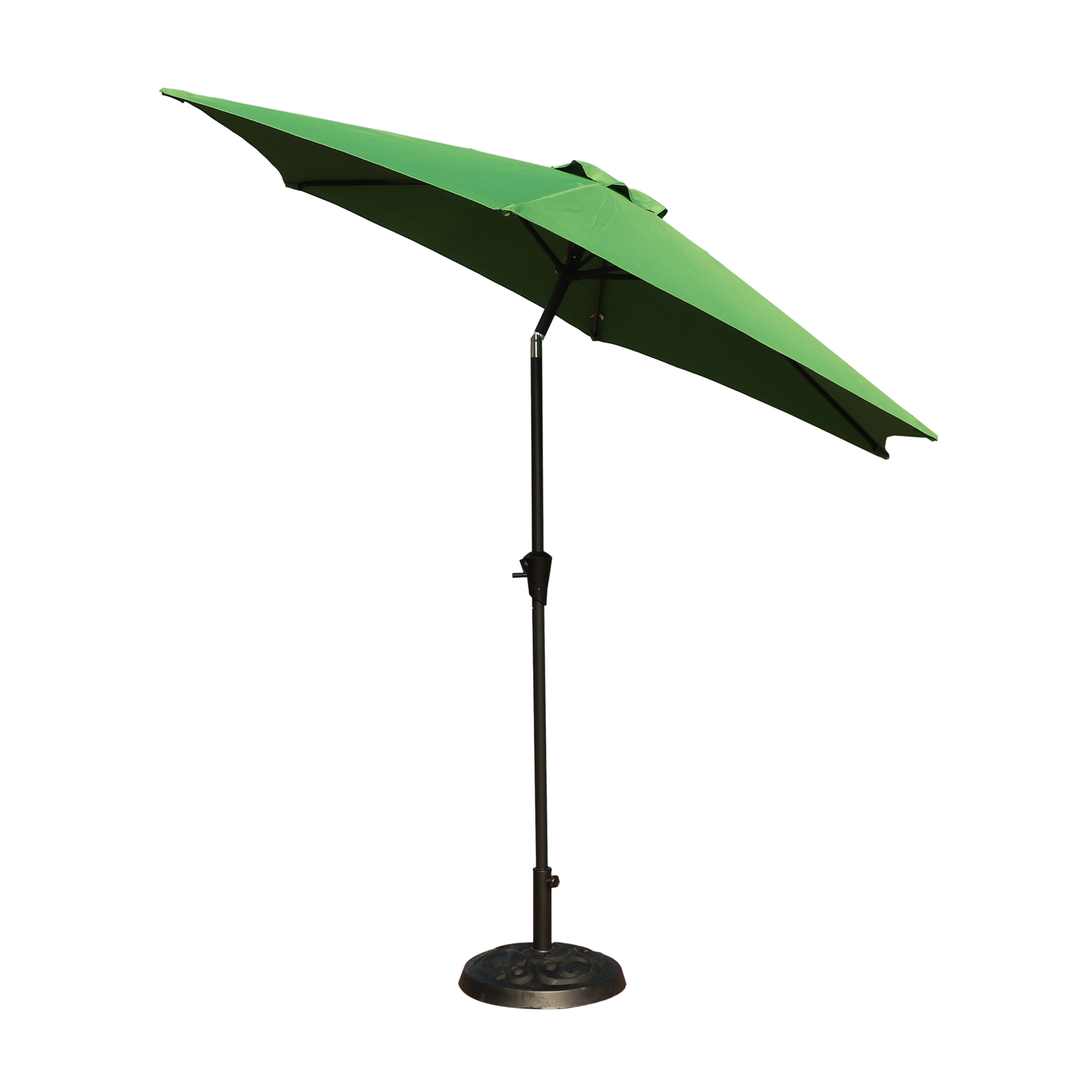 It's a great thing to spend time outdoors, but if you're looking to minimize sun exposure to keep yourself from sunburn, it can be a good idea to add an umbrella to your patio or deck. Crafted from a weather-resistant, solid-hued polyester canopy with a powder-coated aluminum pole, this one can easily blend in with a variety of outdoor aesthetics. This outdoor patio umbrella with a crank is the perfect addition to add shade to your patio, veranda, or deck space. With an hexagonal shape, this piece is weather-resistant and water-resistant. The base made from poly resin, this piece is rust-resistant and made to last for years. Set up your outdoor patio today with a beautiful umbrella and keep it secure with a very durable umbrella base. Includes a coupler to allow it to fit 1.5" to 1.89" diameter umbrella poles. Includes a hand-turn knob for securing umbrella to the base.