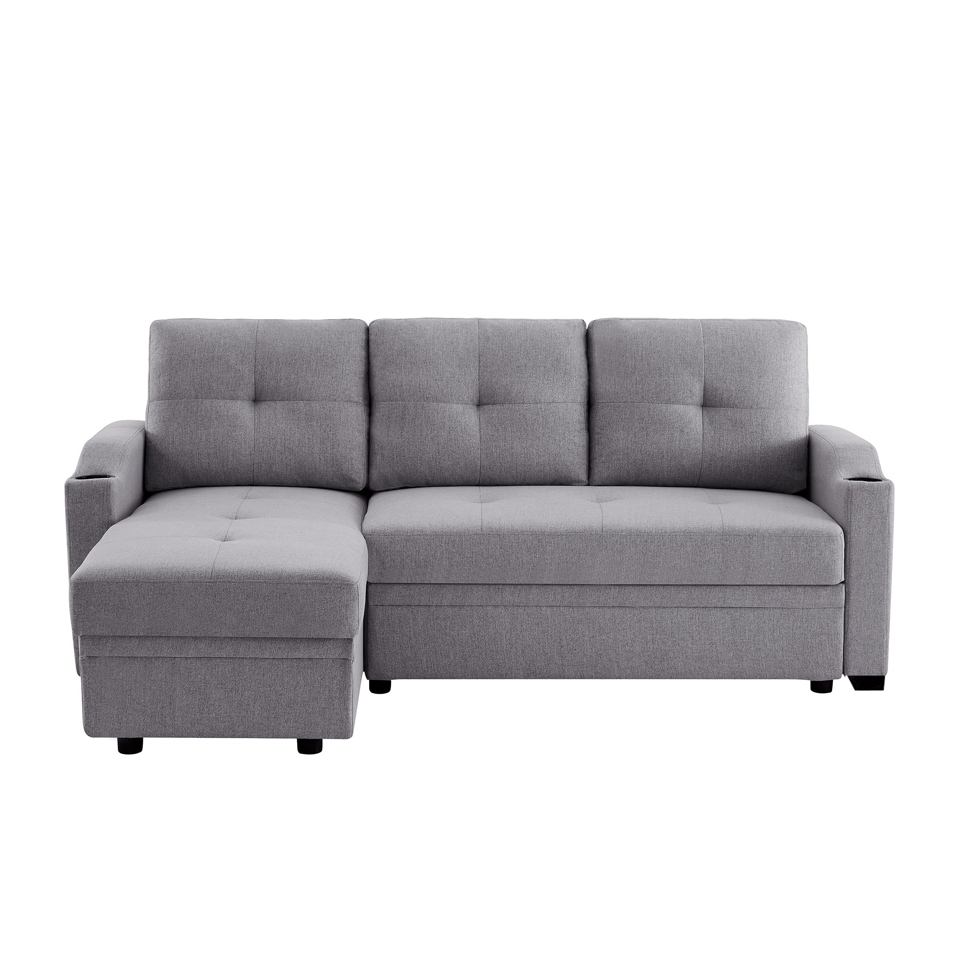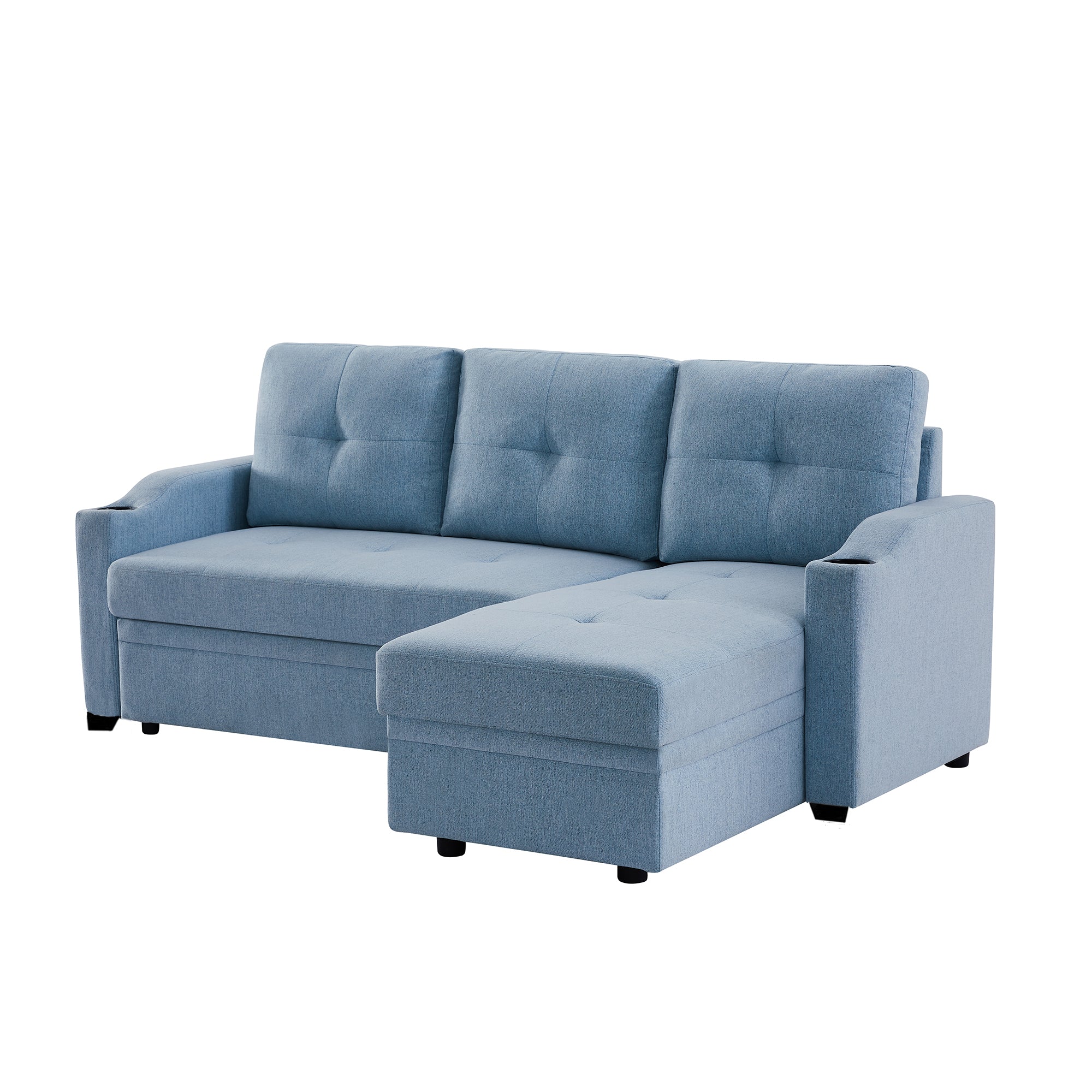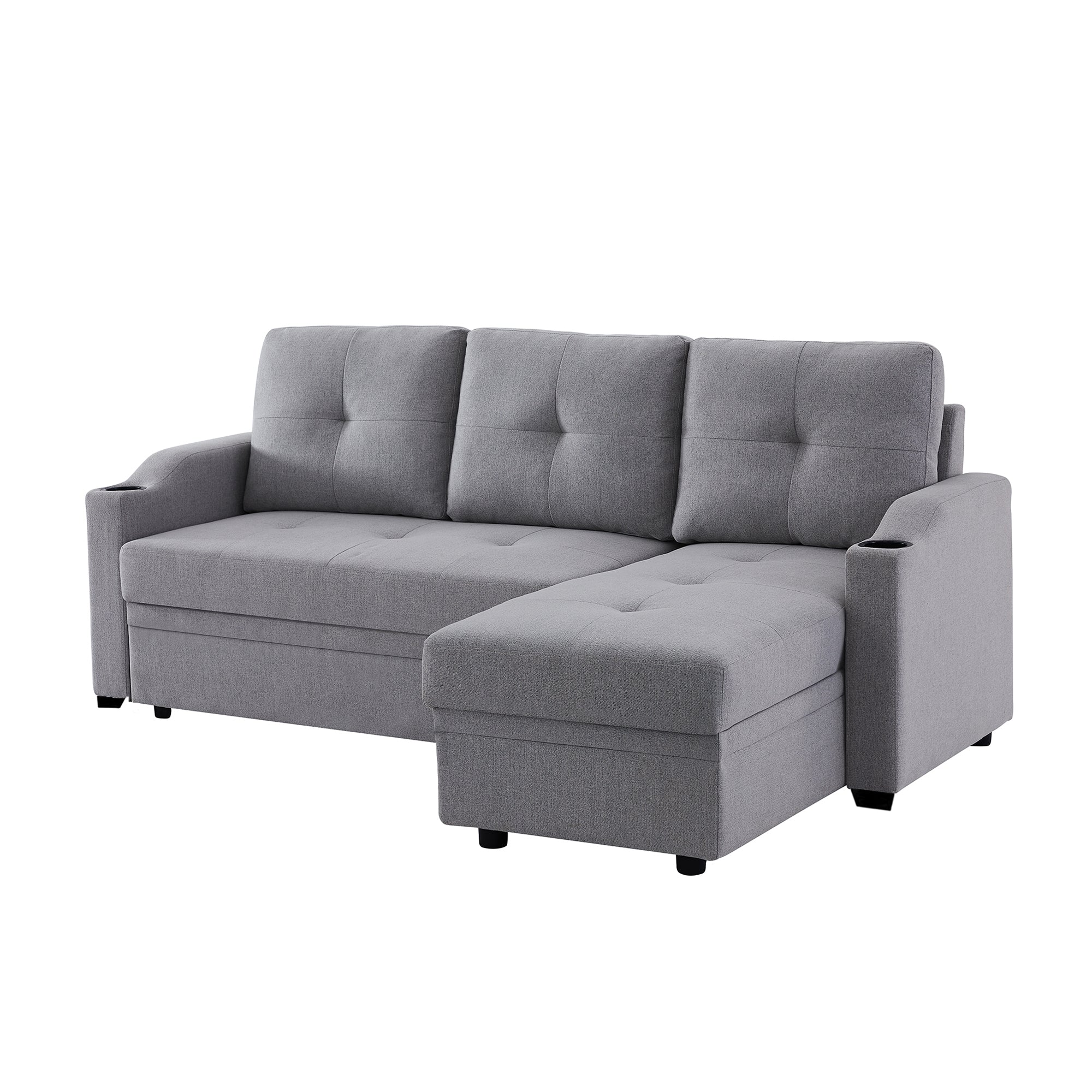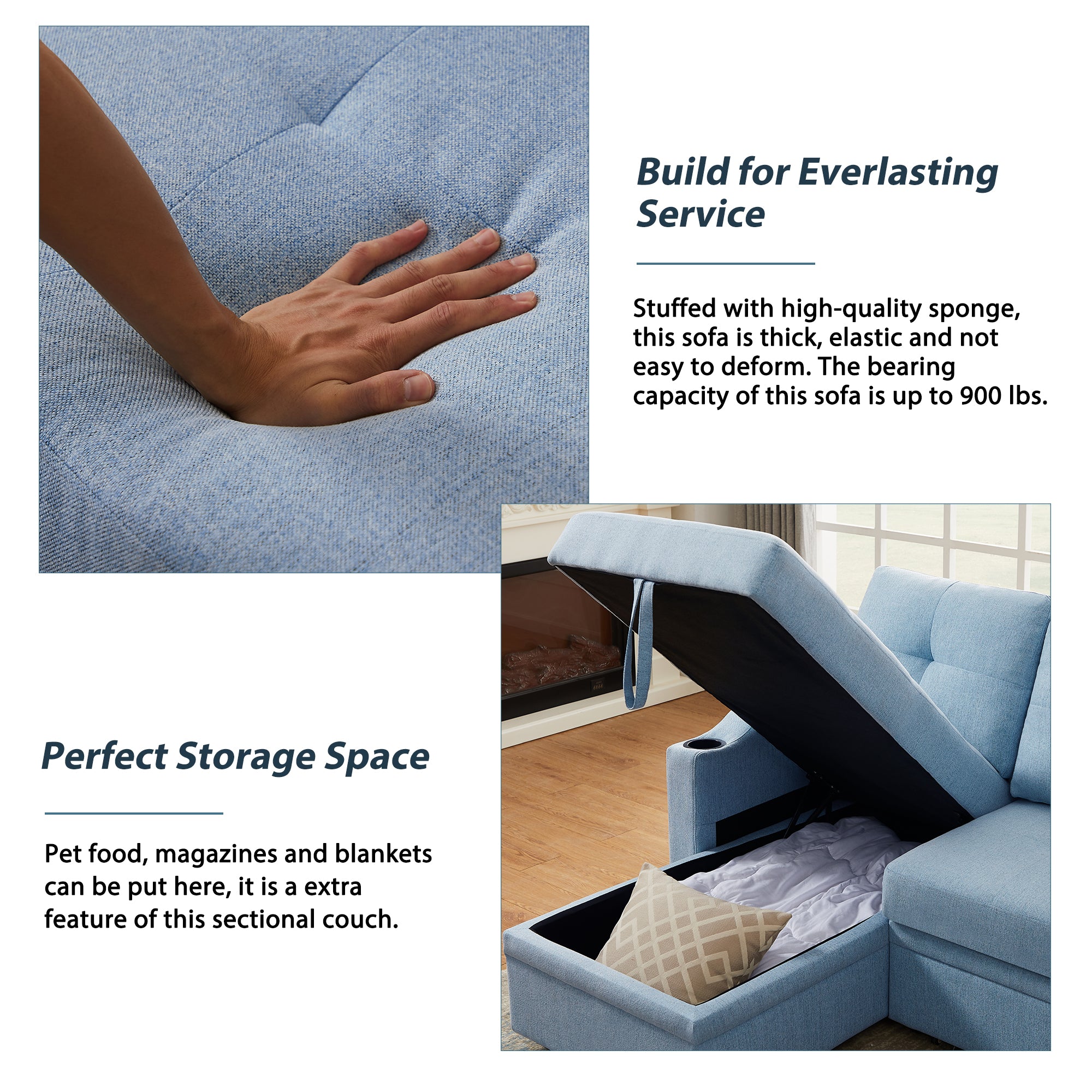 81" Reversible Sectional Couch with Storage Chaise and Two Cup Holders