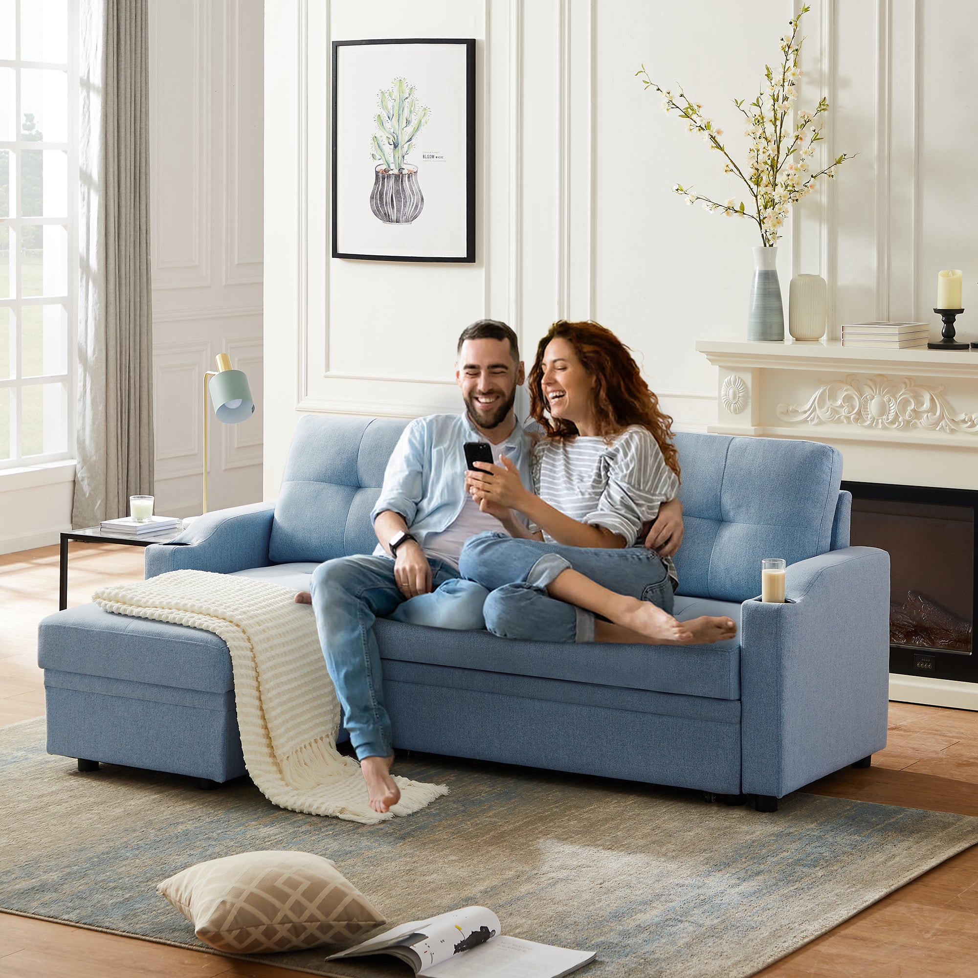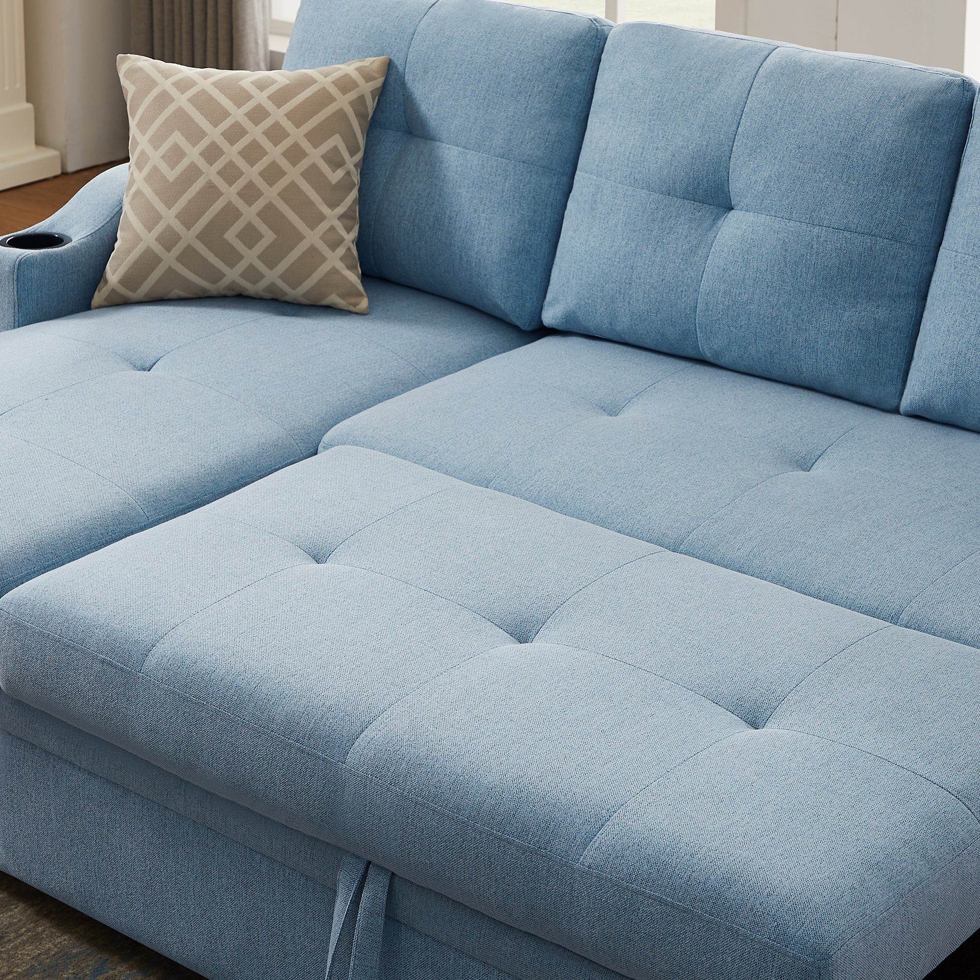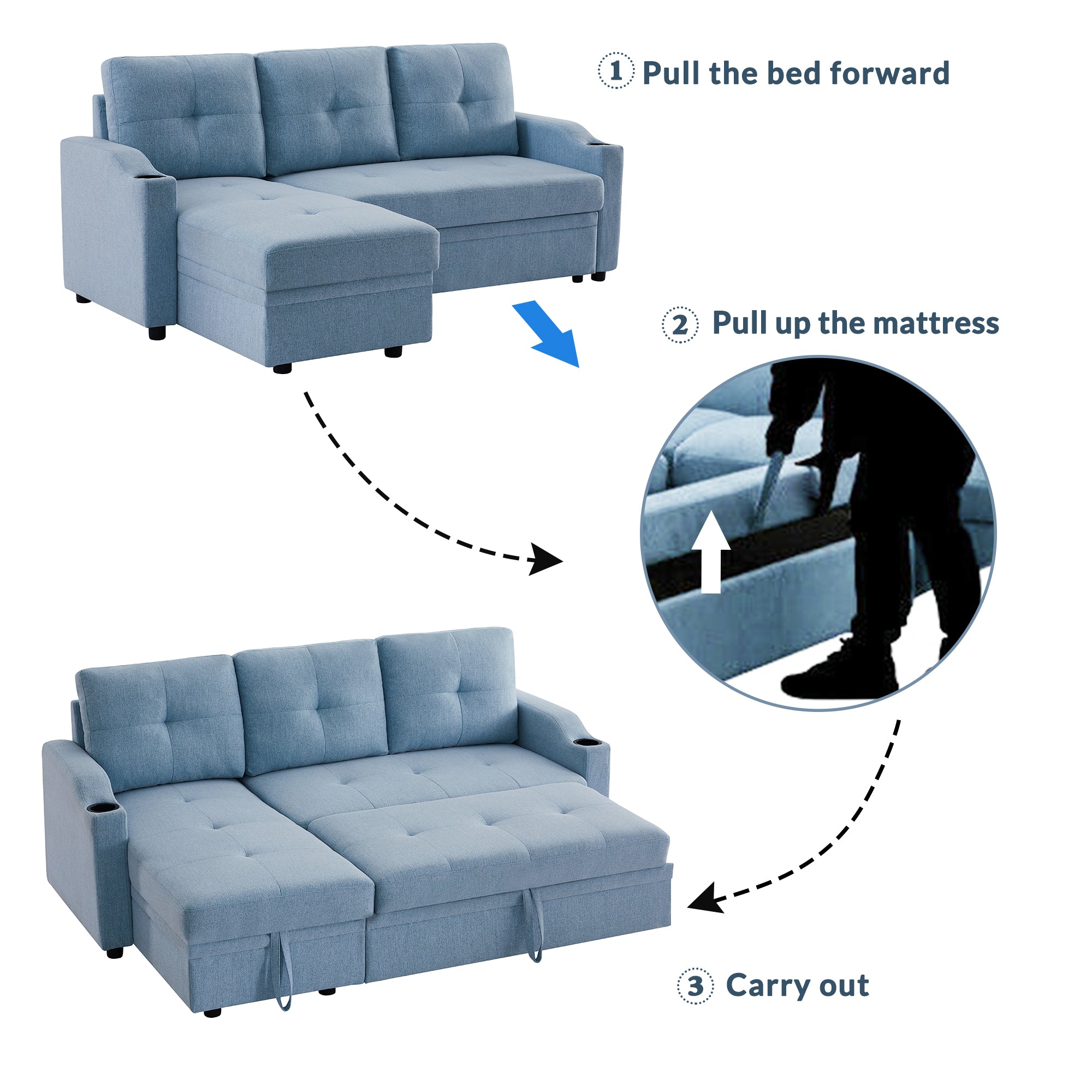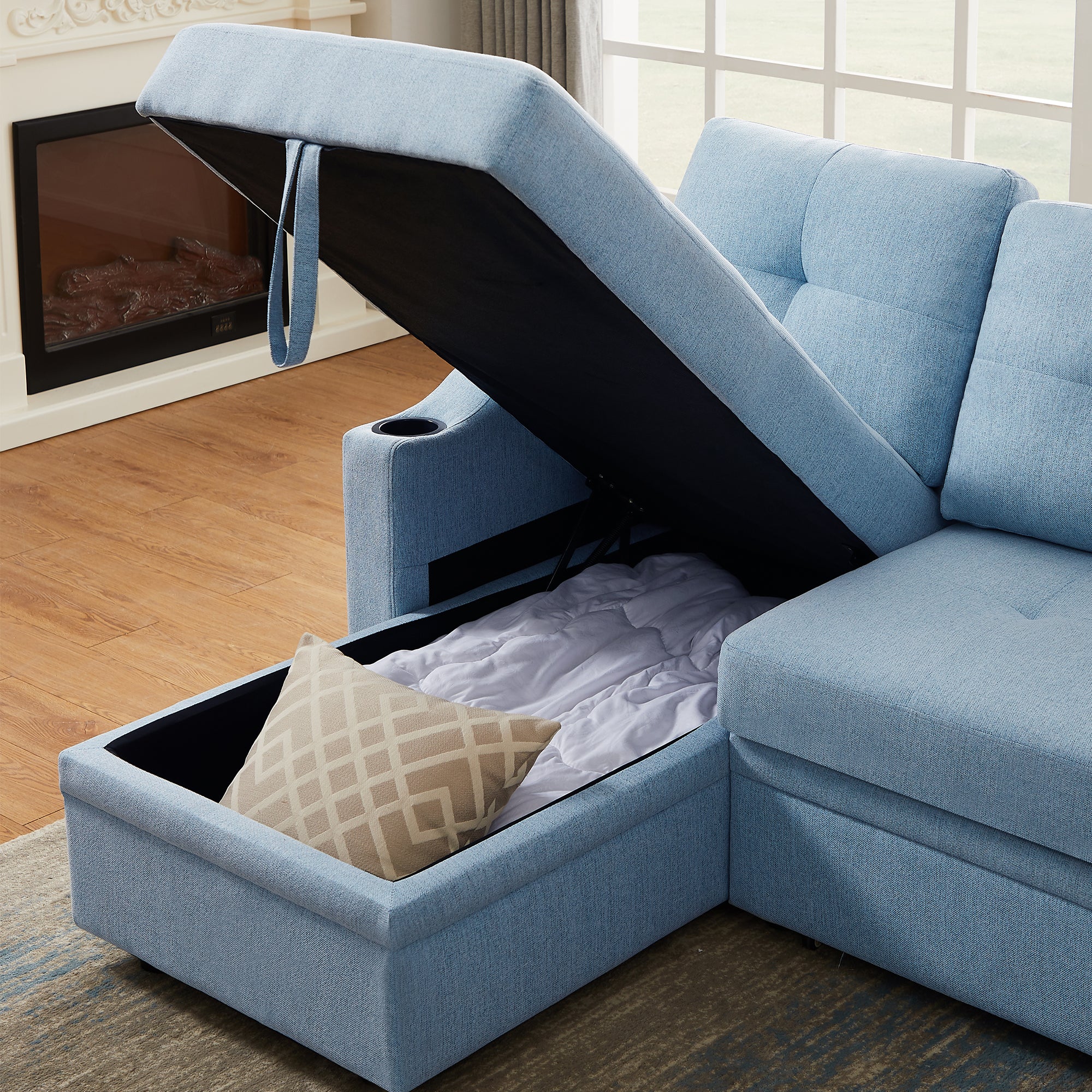 81" Reversible Sectional Couch with Storage Chaise and Two Cup Holders