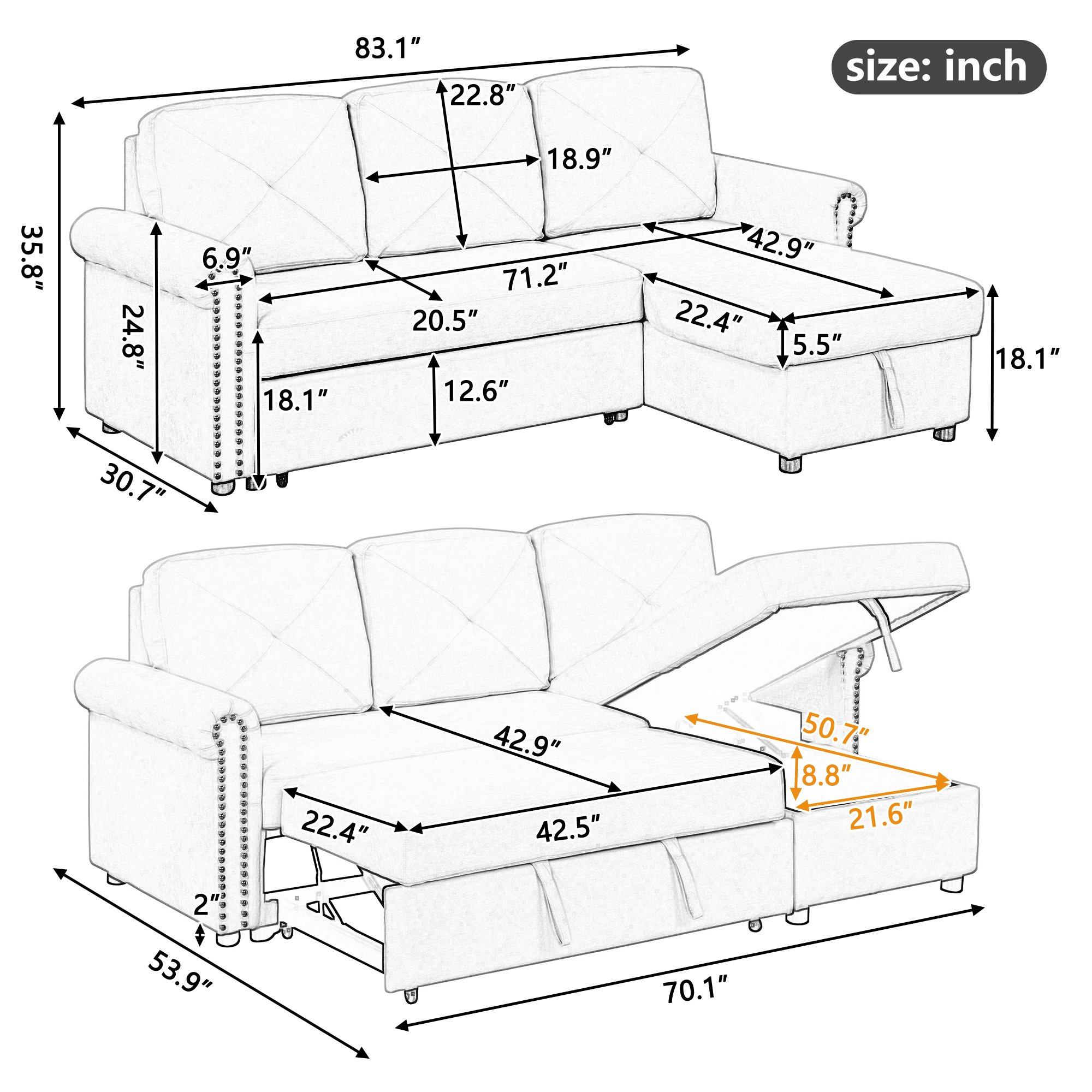 Sofa Bed Dimension | 83.1"D x 53.9"W x 35.8"H | |