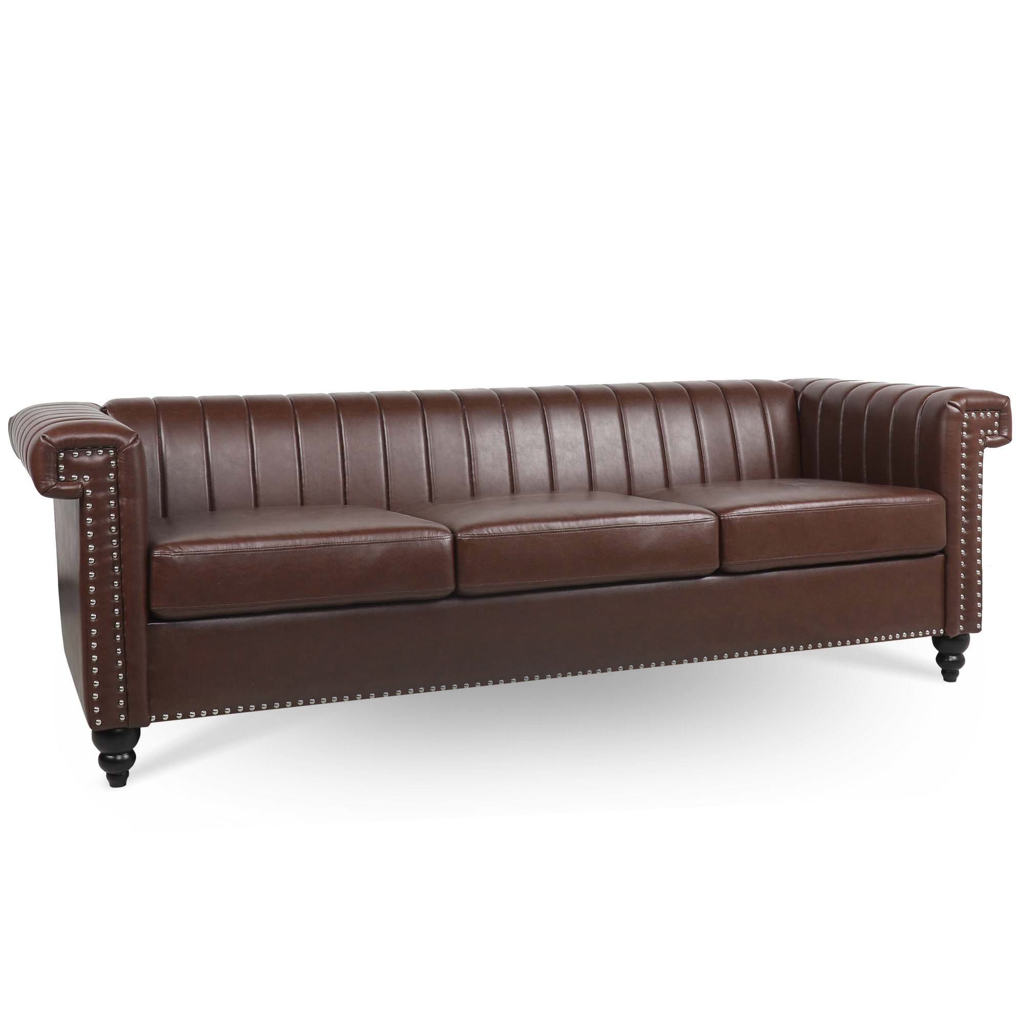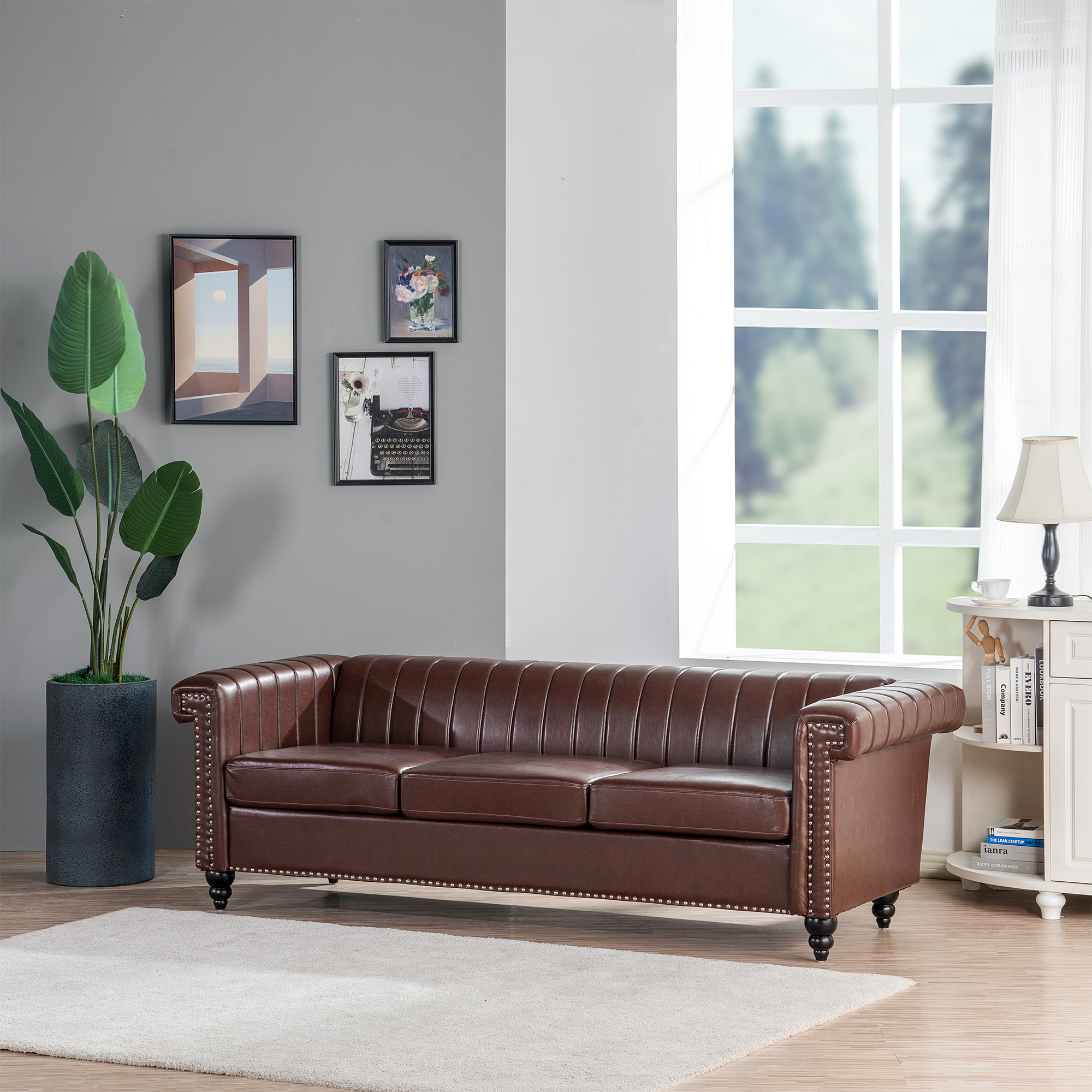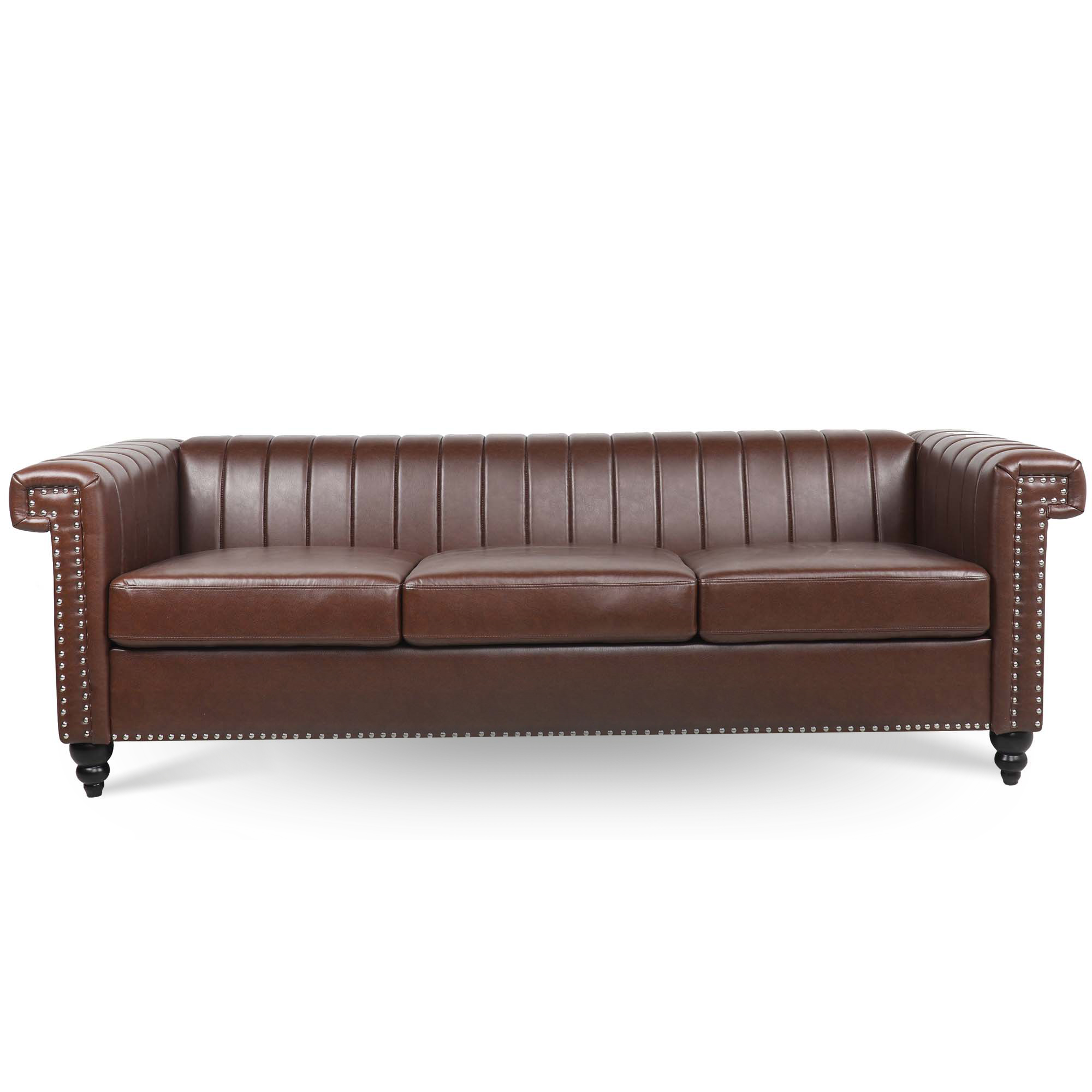 ★.The recessed arms and channel-PU back lend this sofa a contemporary feel.