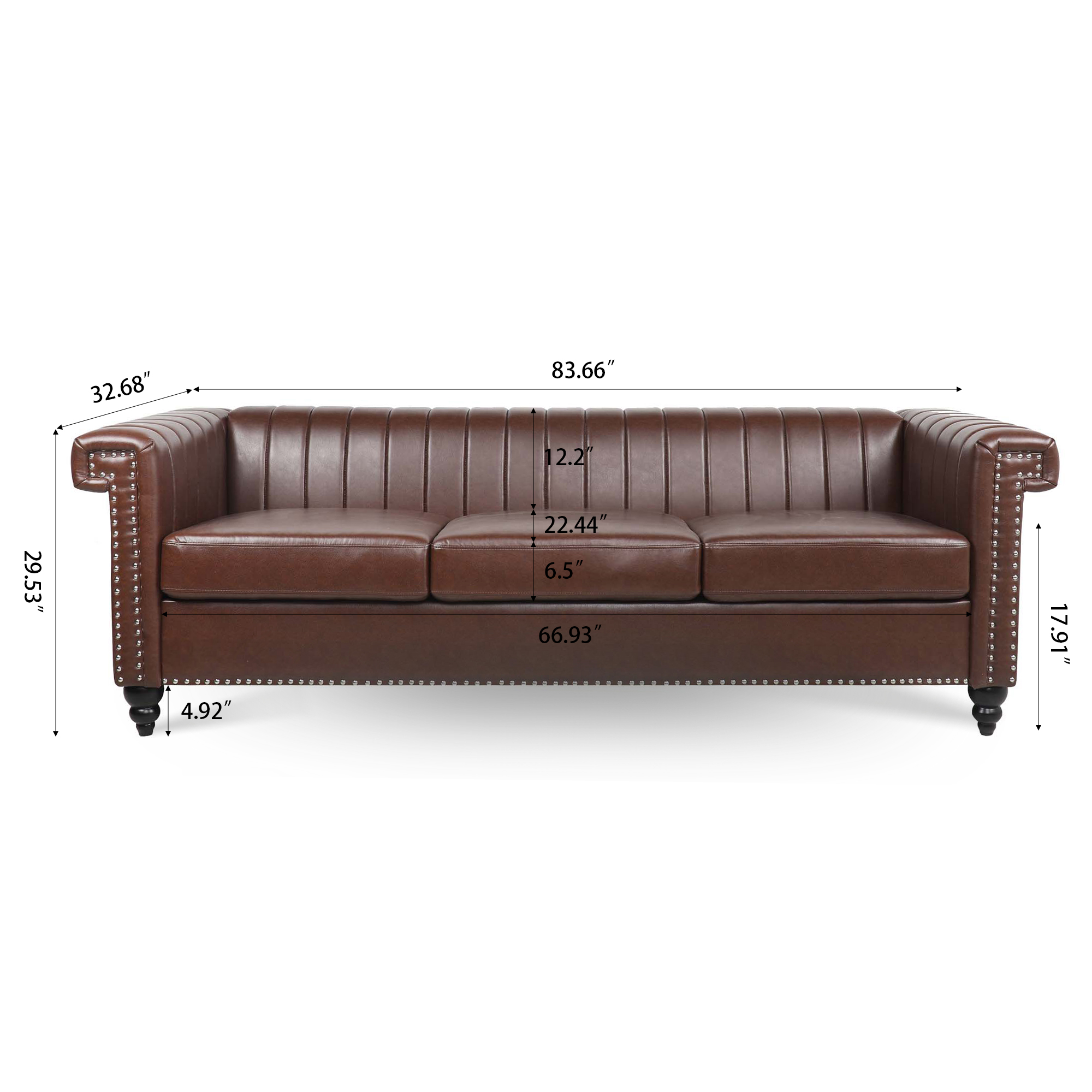 83.66" Width Traditional Square Arm removable cushion 3 seater Sofa